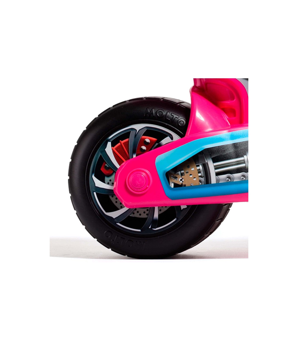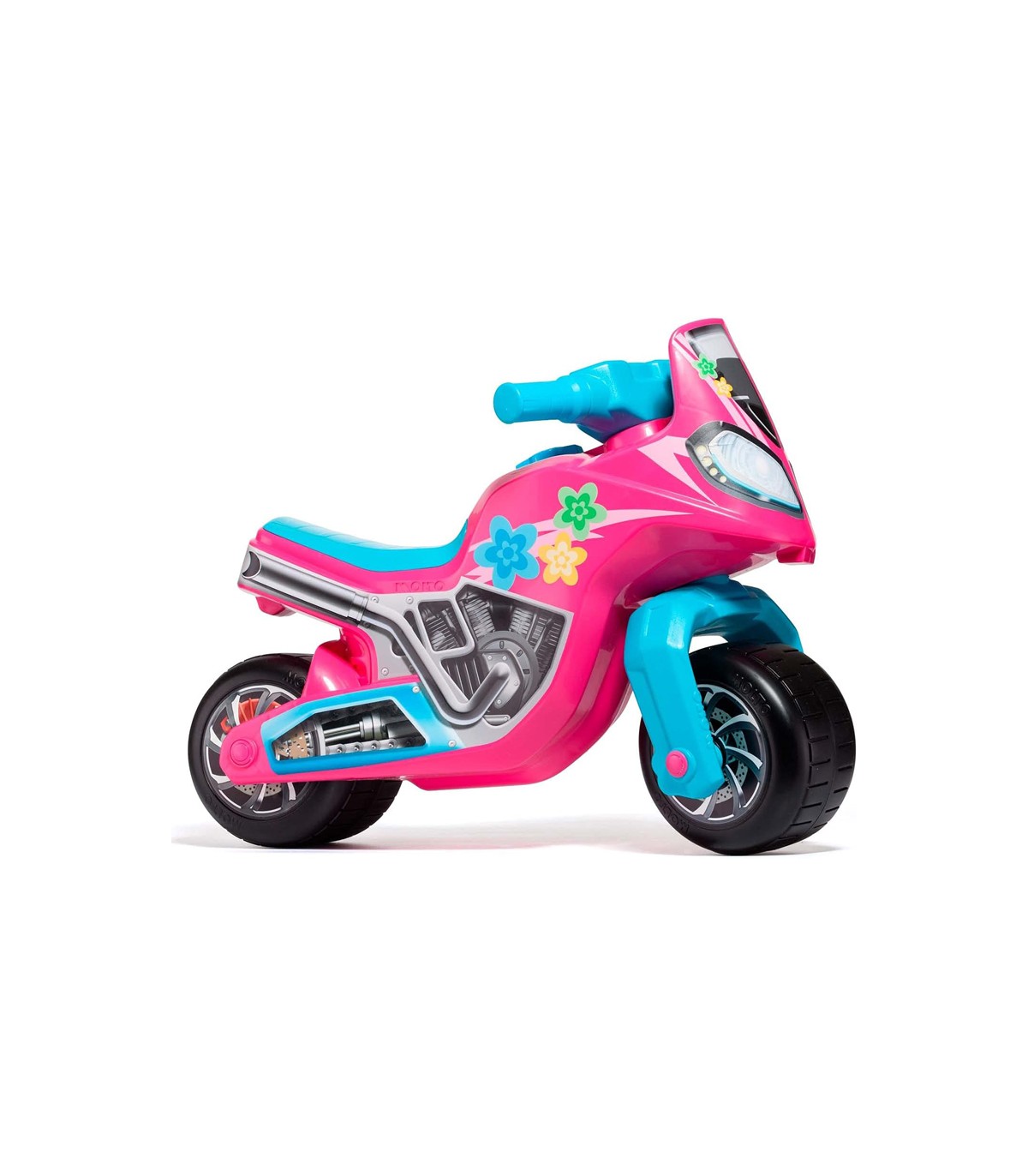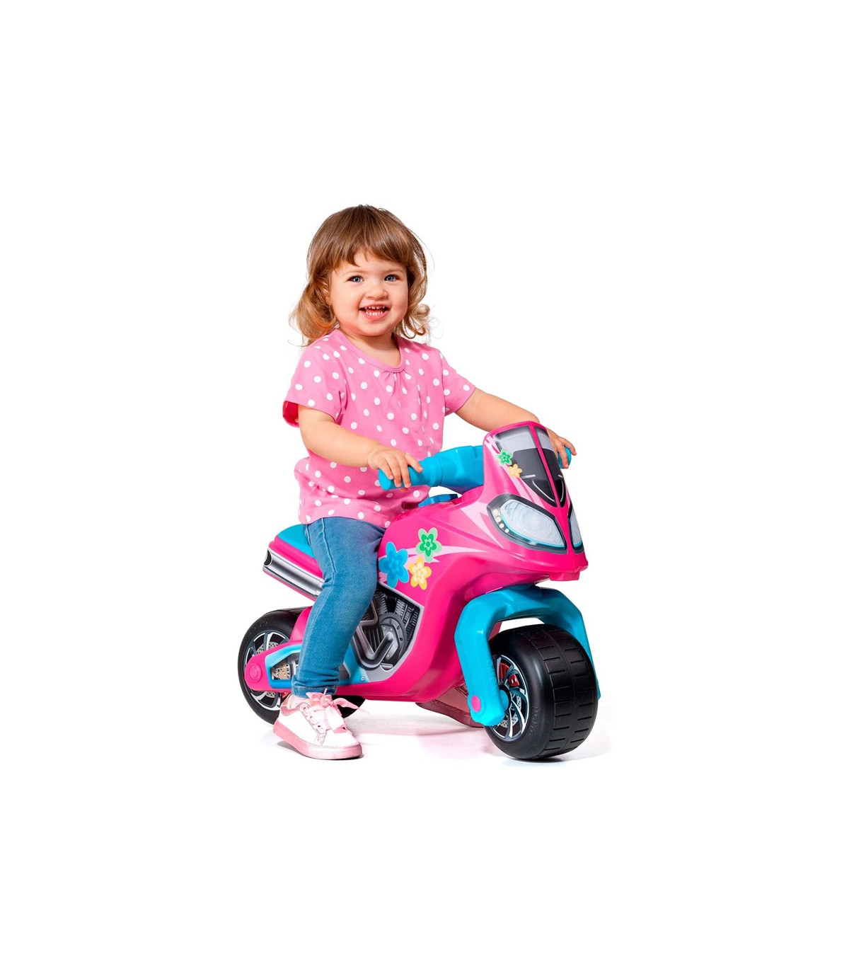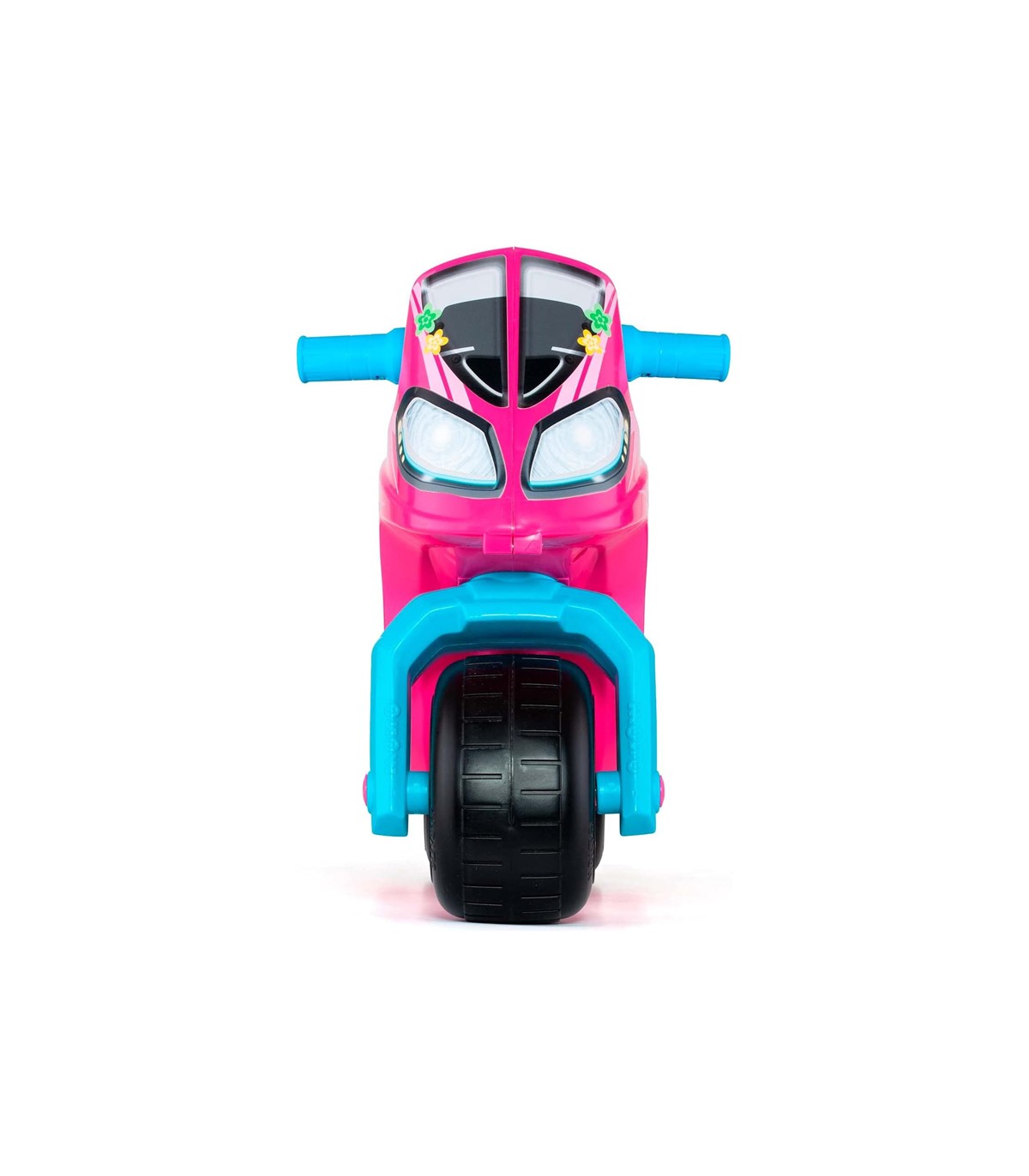 Moto correpasillos Moltó Cross Race Rosa con ruedas anchas todo terreno, ayuda a desarrollar la motricidad del niño. Adecuada a partir de 18 meses.