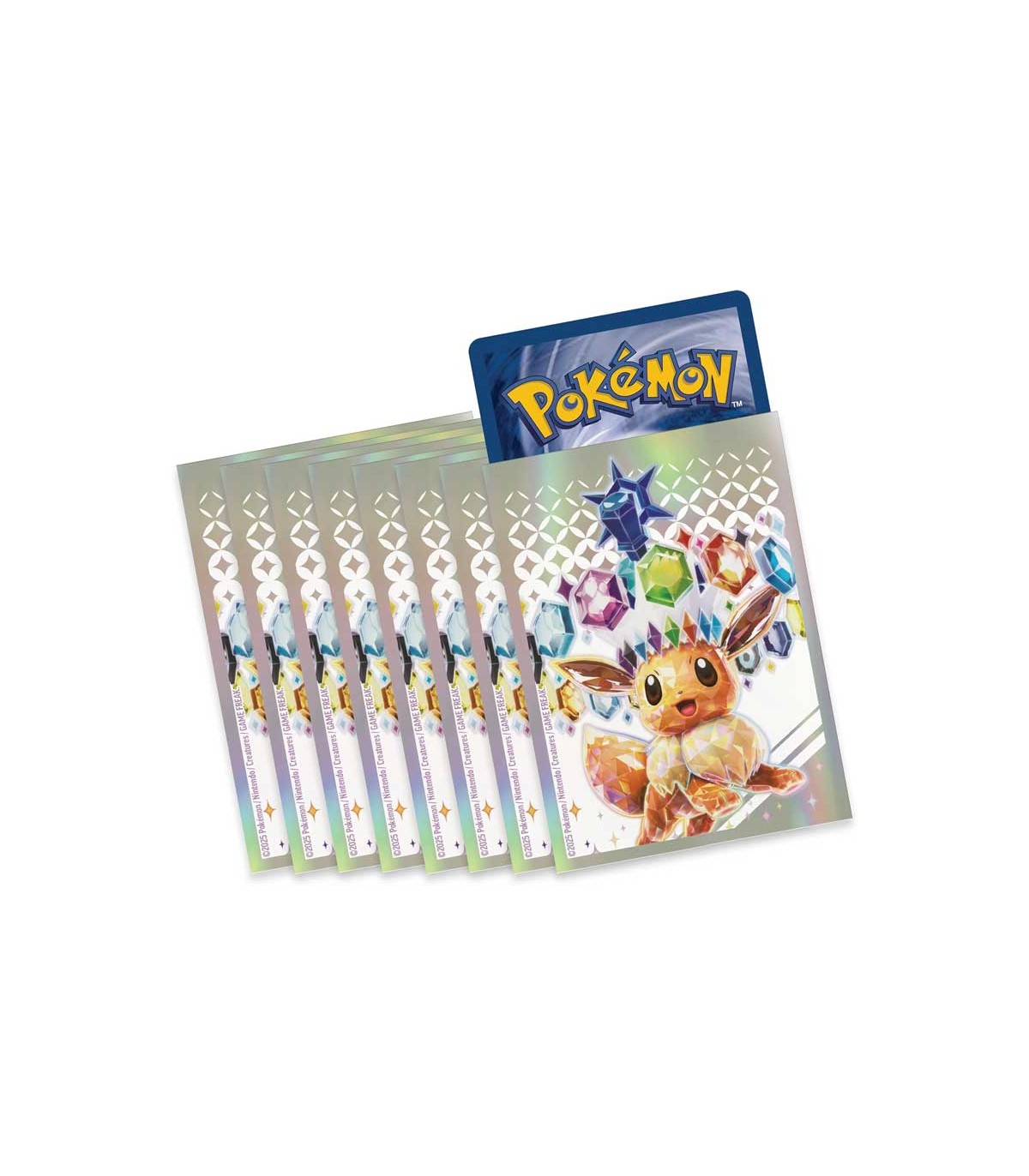- 65 Fundas para cartas de Eevee en forma de Pokémon Teracristal Astral.