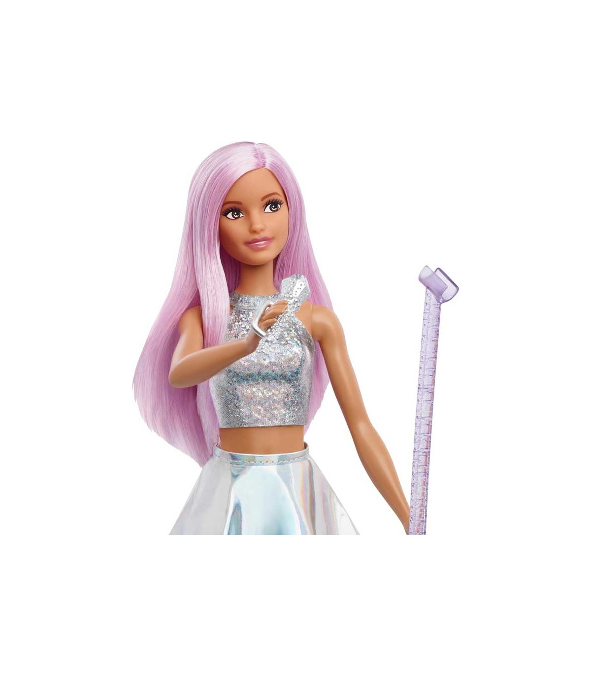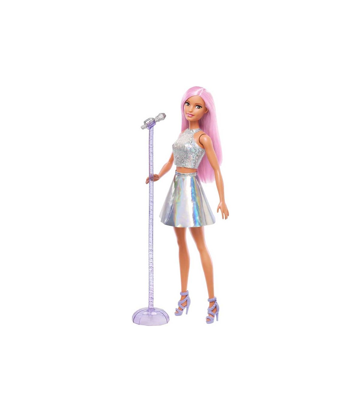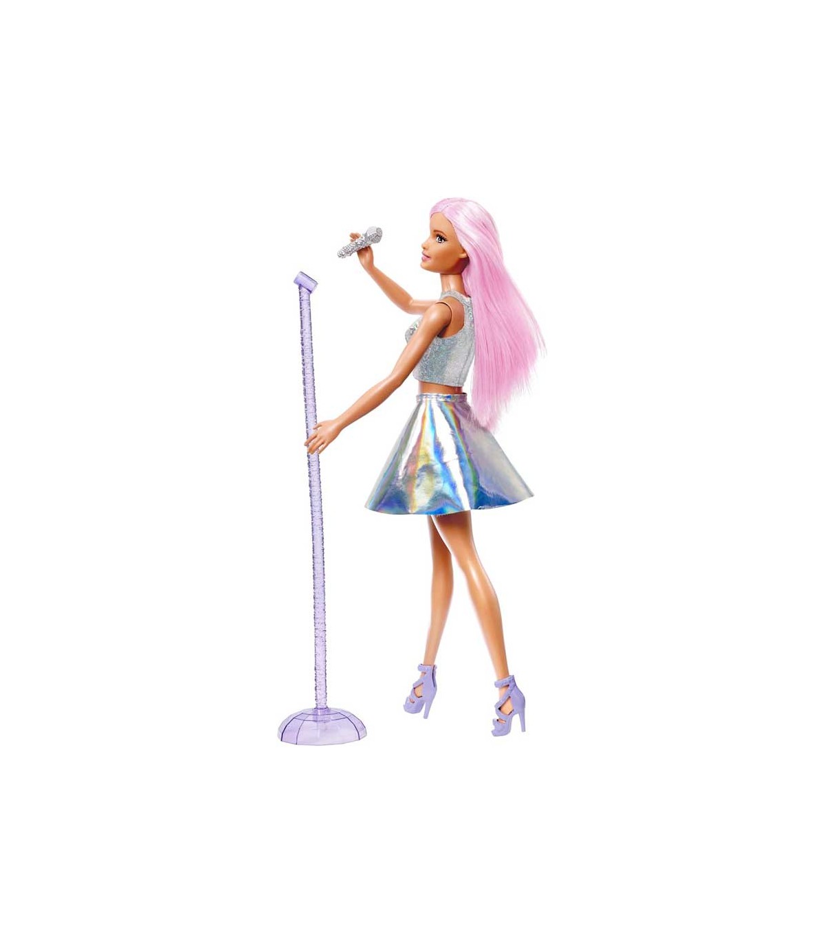 Muñeca Barbie tú puedes ser estrella pop, incluye vestido brillante, soporte para micrófono y micrófono extraíble.