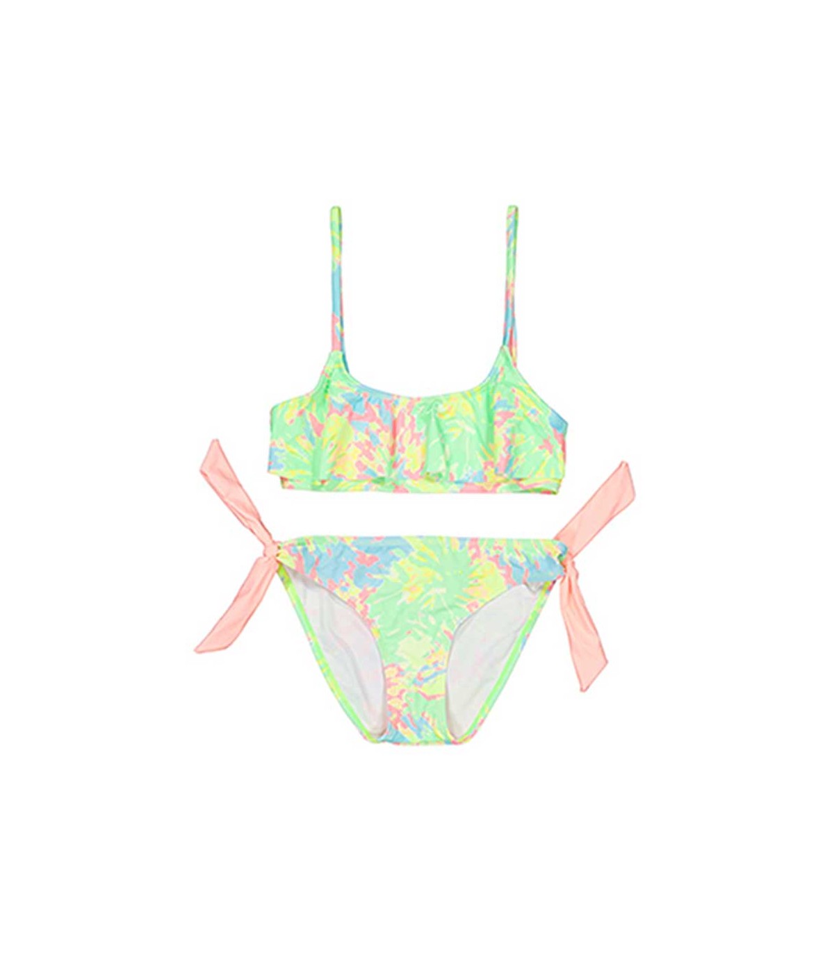 Go&Win bikini Lamana de dos piezas con estampado fluorescente, sujetador tipo top con volante a juego y con relleno extraíble a partir de la talla 12.