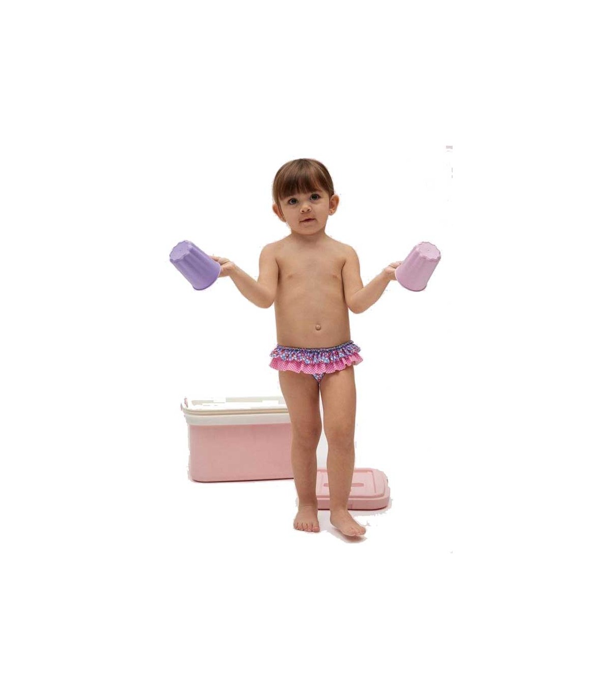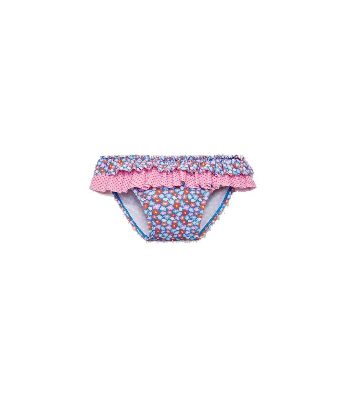 Culetín para bebé con volantes y pequeñas flores. Perfecto para la playa o la piscina.