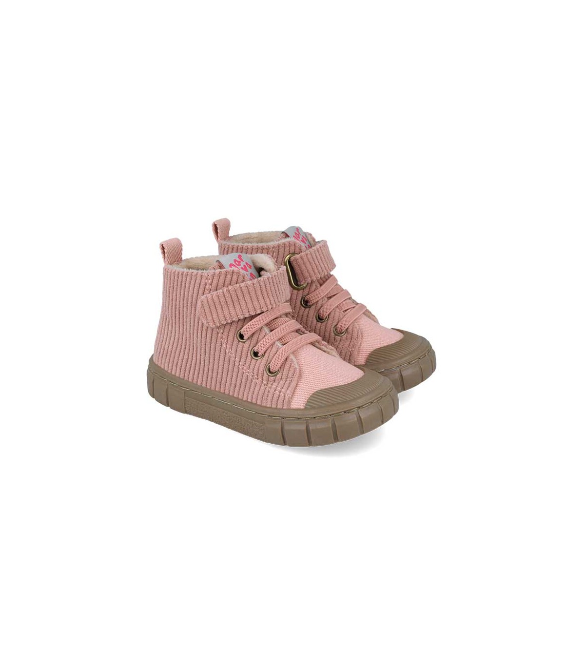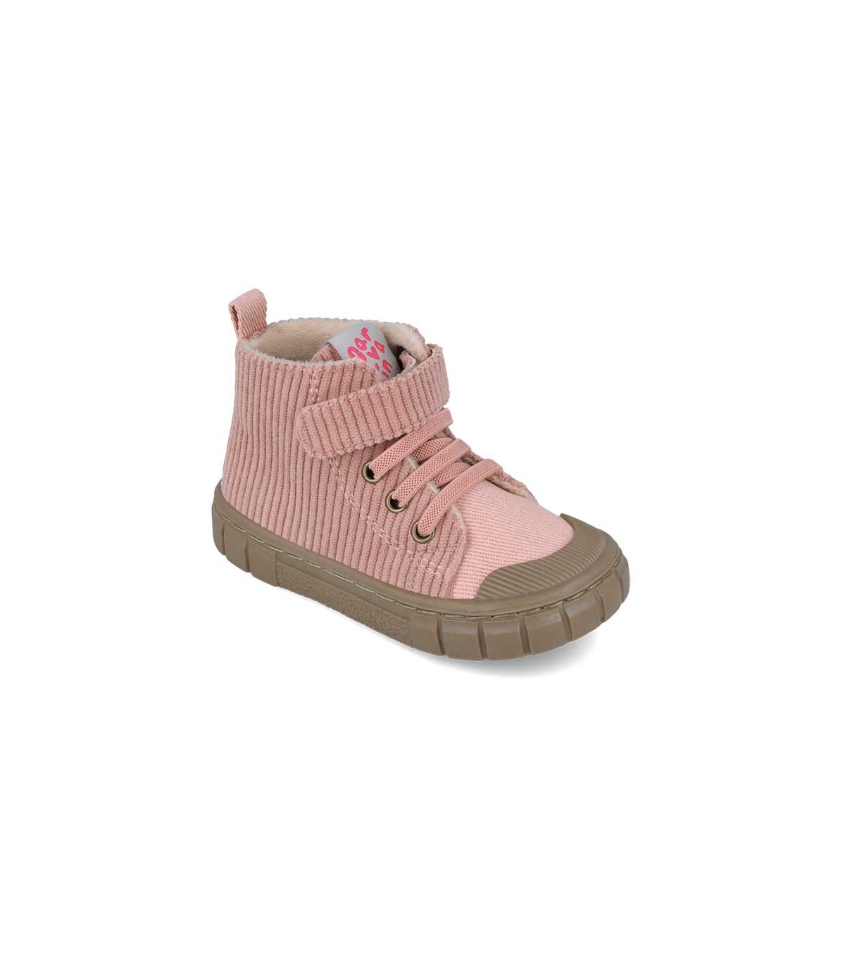 Botín de serraje concepto barefoot, flexible y blandito con drop cero. Plantilla extraíble acolchada y cierre con tira adhesiva para un buen ajuste. Color Topo.