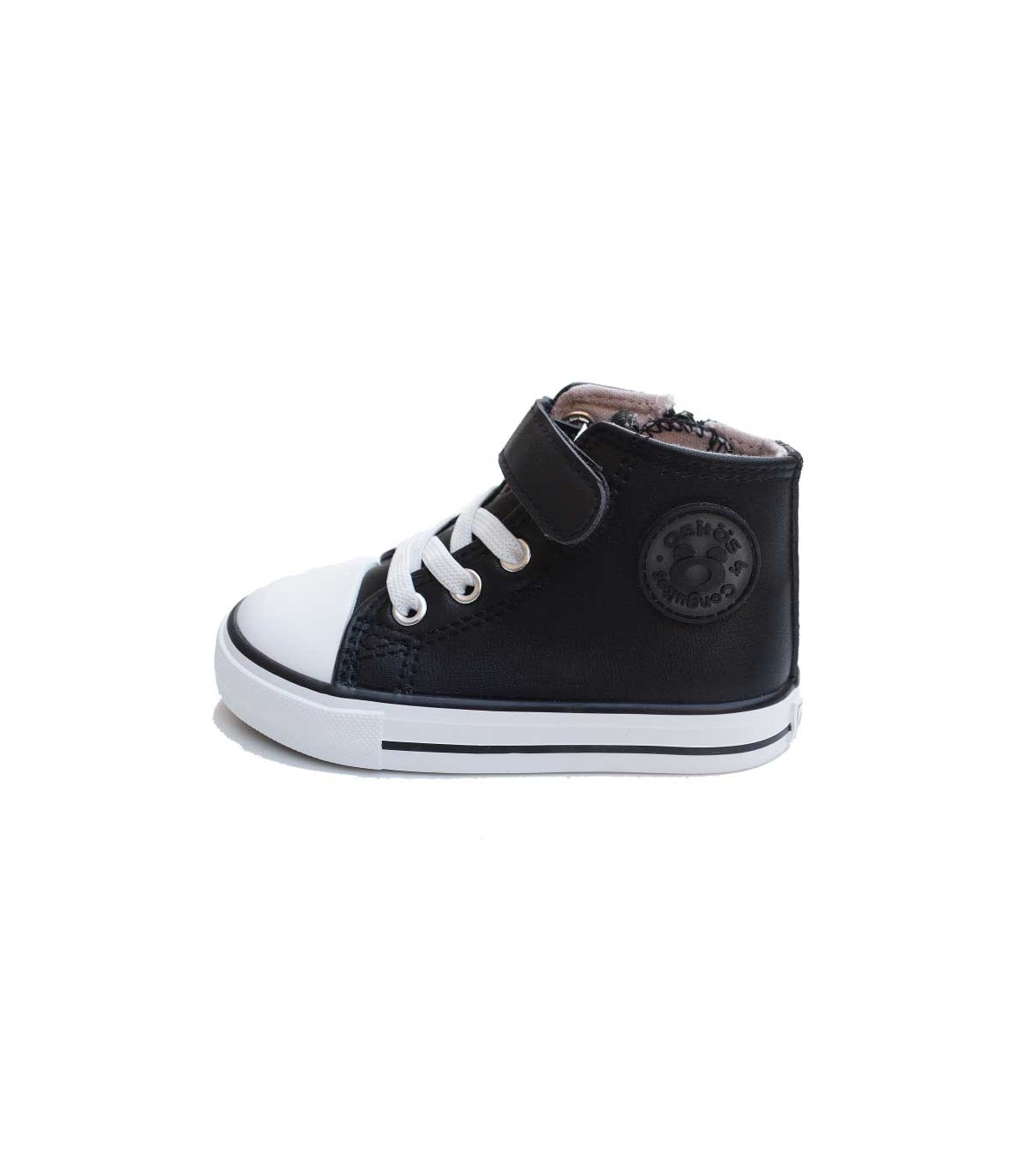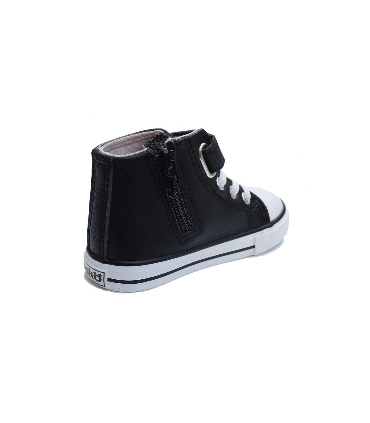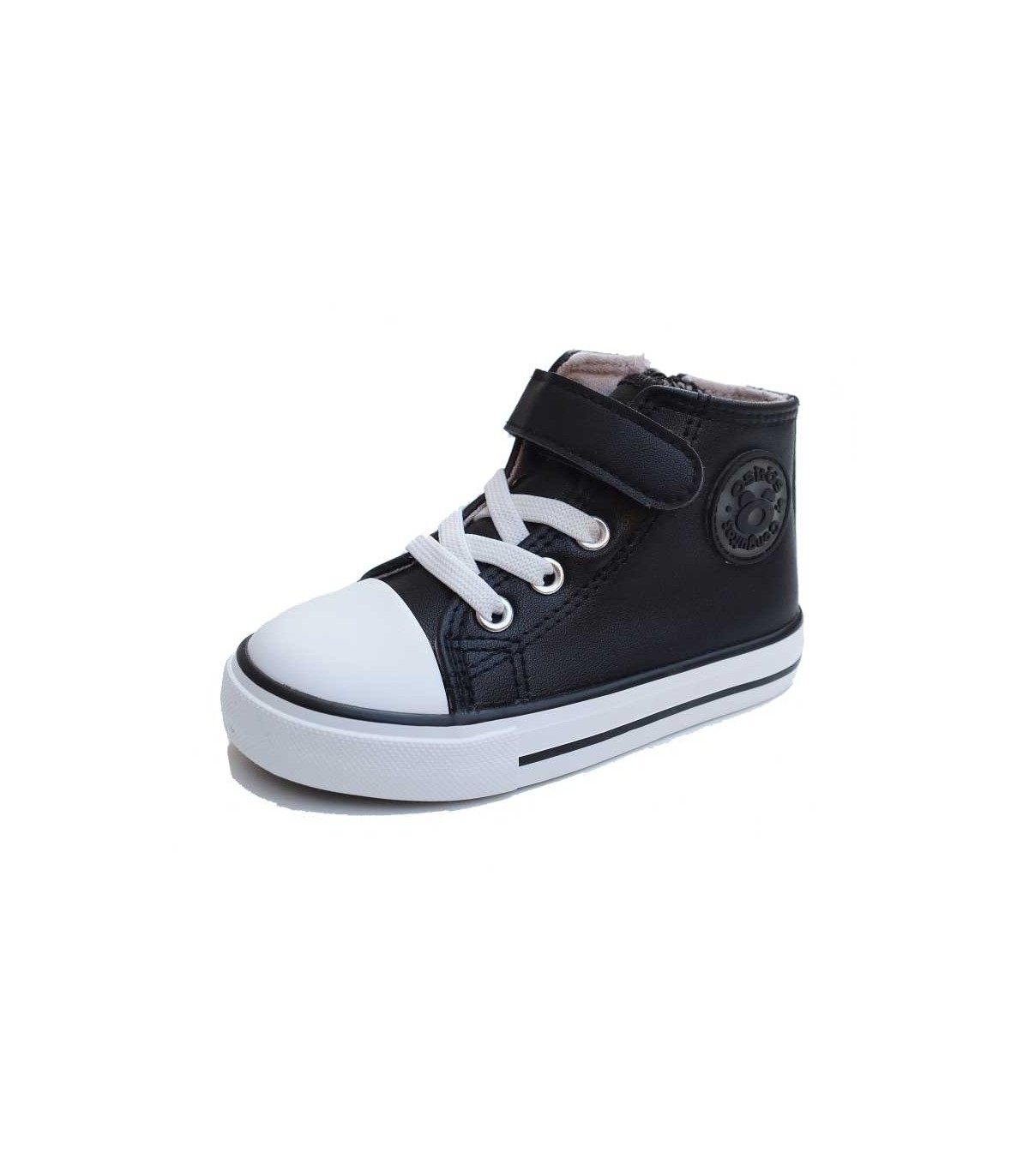 Botita Osito en negro, cierre con velcro, elástico y cremallera en el costado. Calzado respetuoso . Drop cero, flexibles y con la puntera ancha.