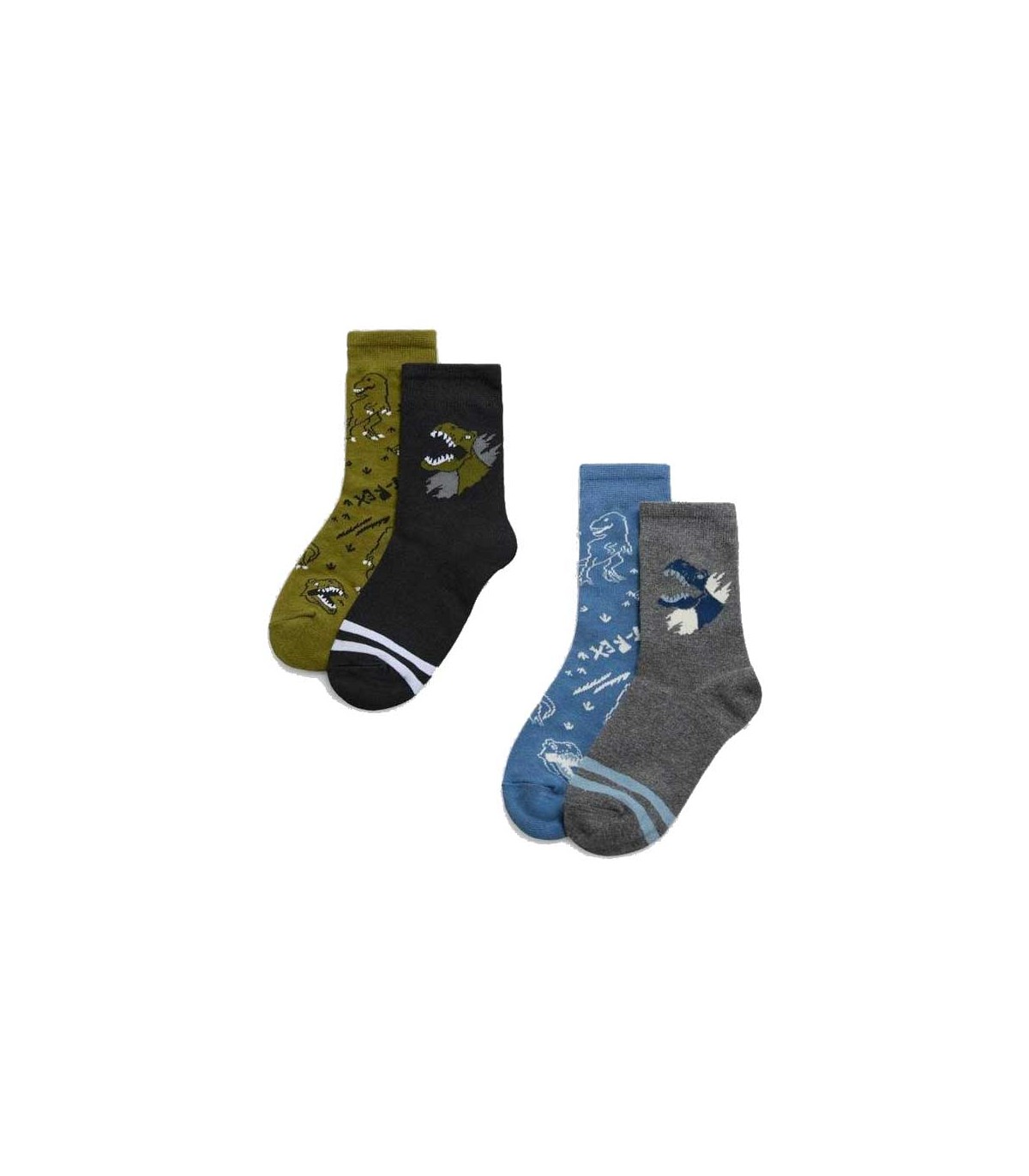 Calcetines de niño Ysabel Mora con estampado de dinosaurios, con puño anti-presión para mayor confort. Disponibles en packs de 2 unidades, se envían según disponibilidad.