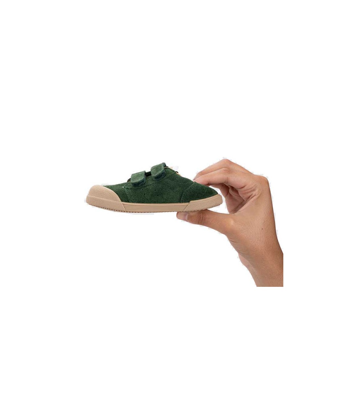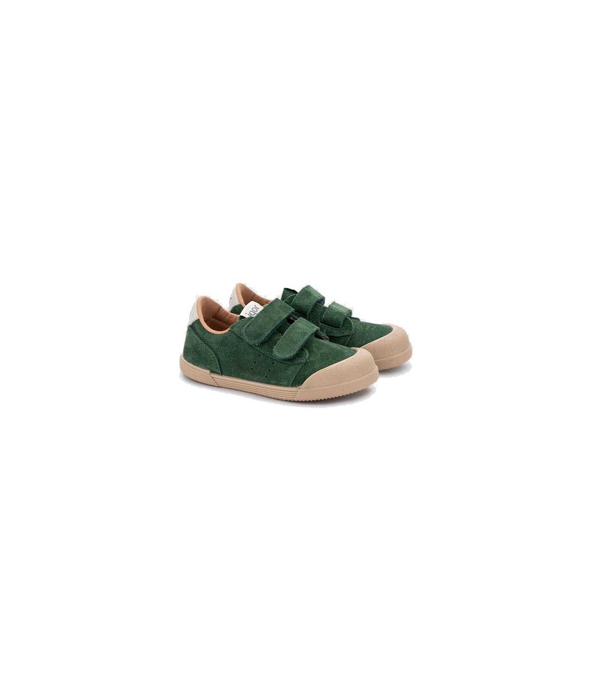 Zapatilla deportiva de piel estilo casual, barefoot, cero drop, flexible y blandito, con plantilla extraíble y cierre con tira adherente para un mejor ajuste. Color verde