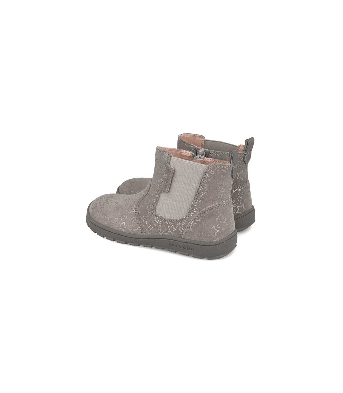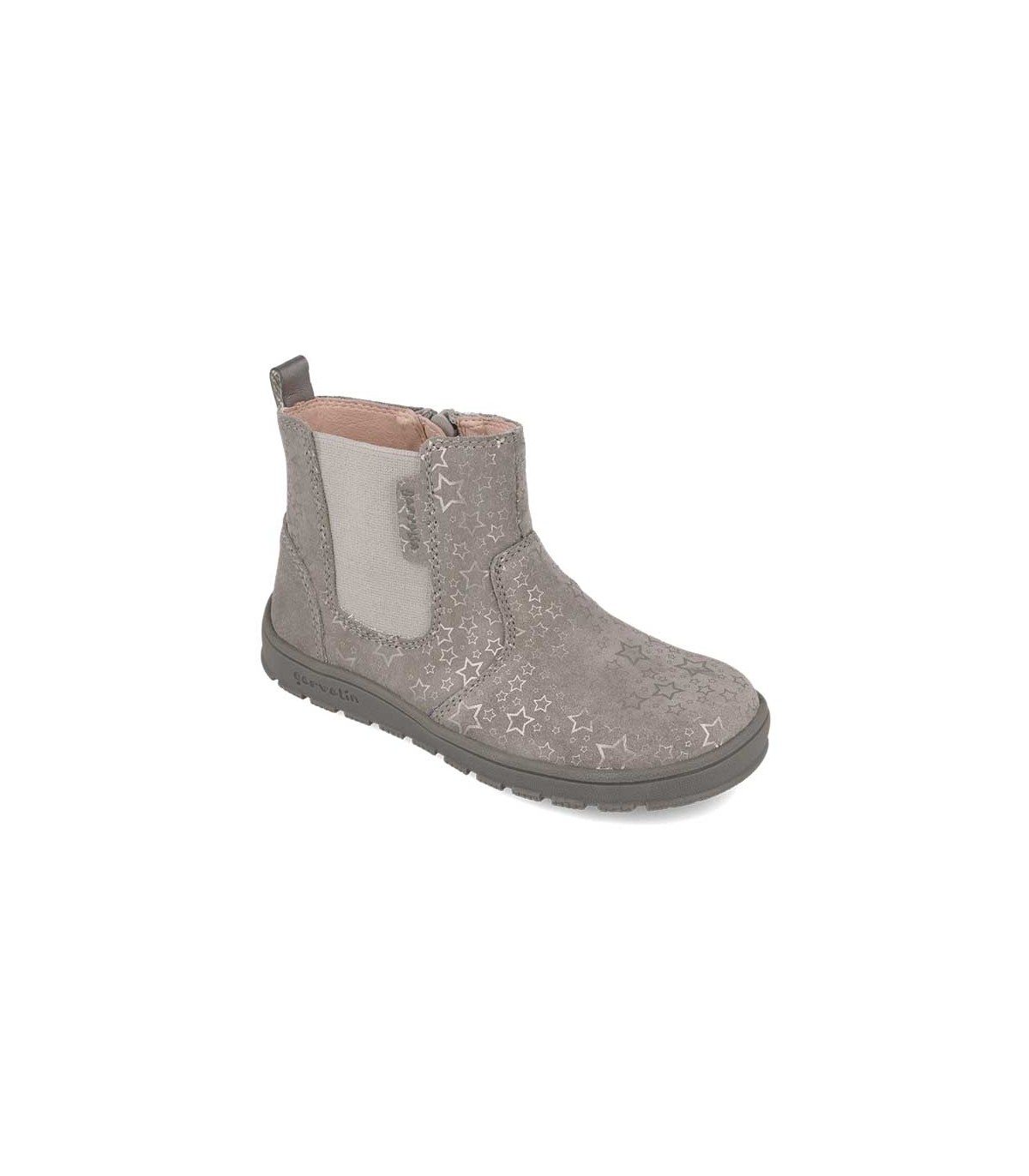 Botas respetuosas barefoot Garvalín, en color gris con estampado de estrellas. Soft&Fun, con la suela flexible, anchas en la puntera para que los dedos queden libres y drop cero. Plantilla extraíble con tratamiento anti-bacterias.