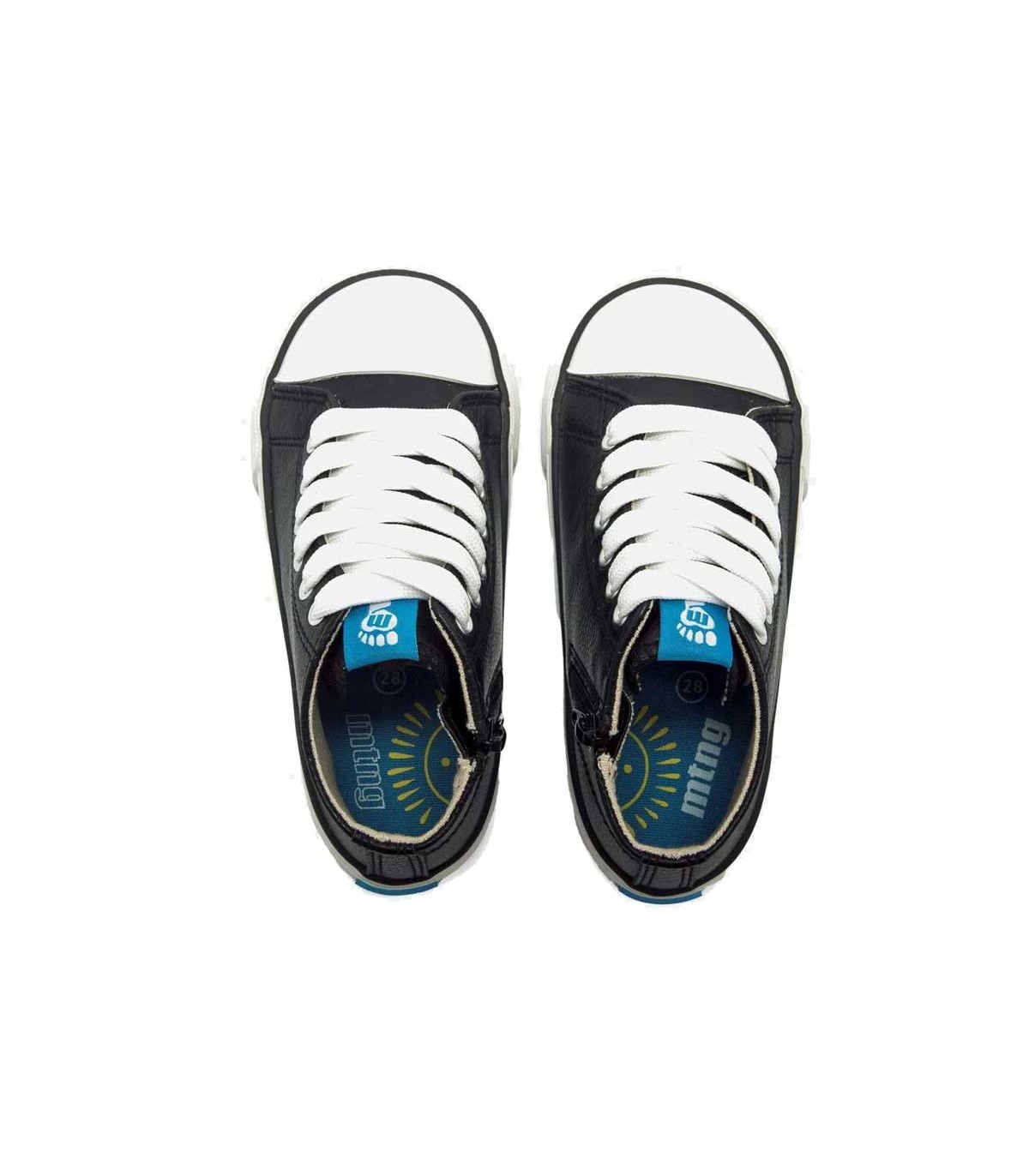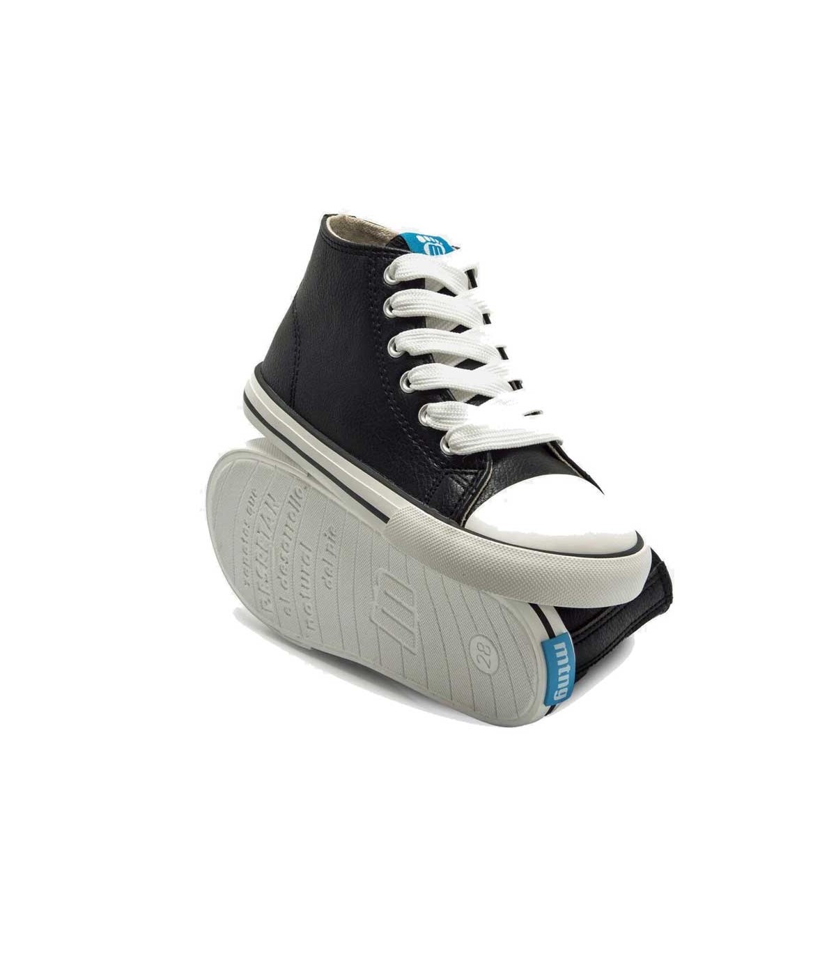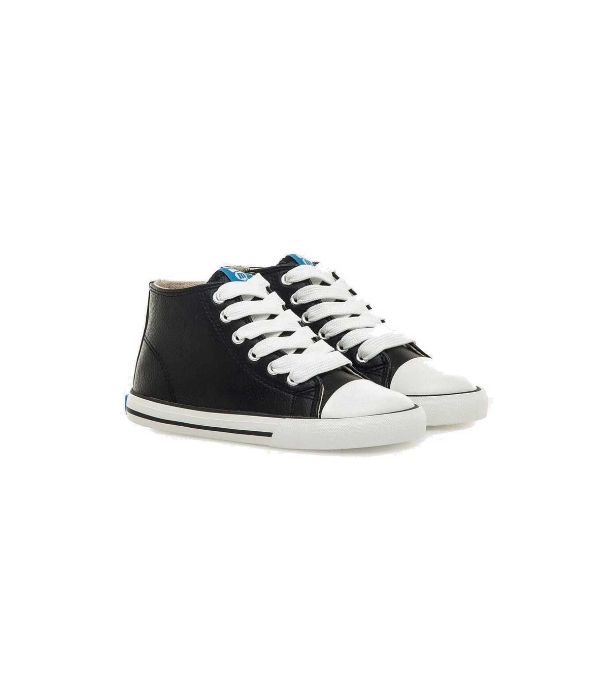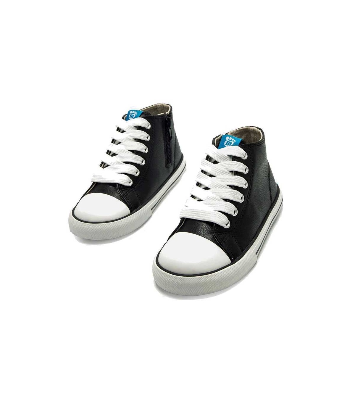 Bota niños Mustang Free color negro, diseño de media caña con cremallera lateral y ajuste con cordones que permite calzarlos con facilidad. Puntera ancha que permite el libre movimiento y desarrollo de los dedos. Plantilla extraíble.