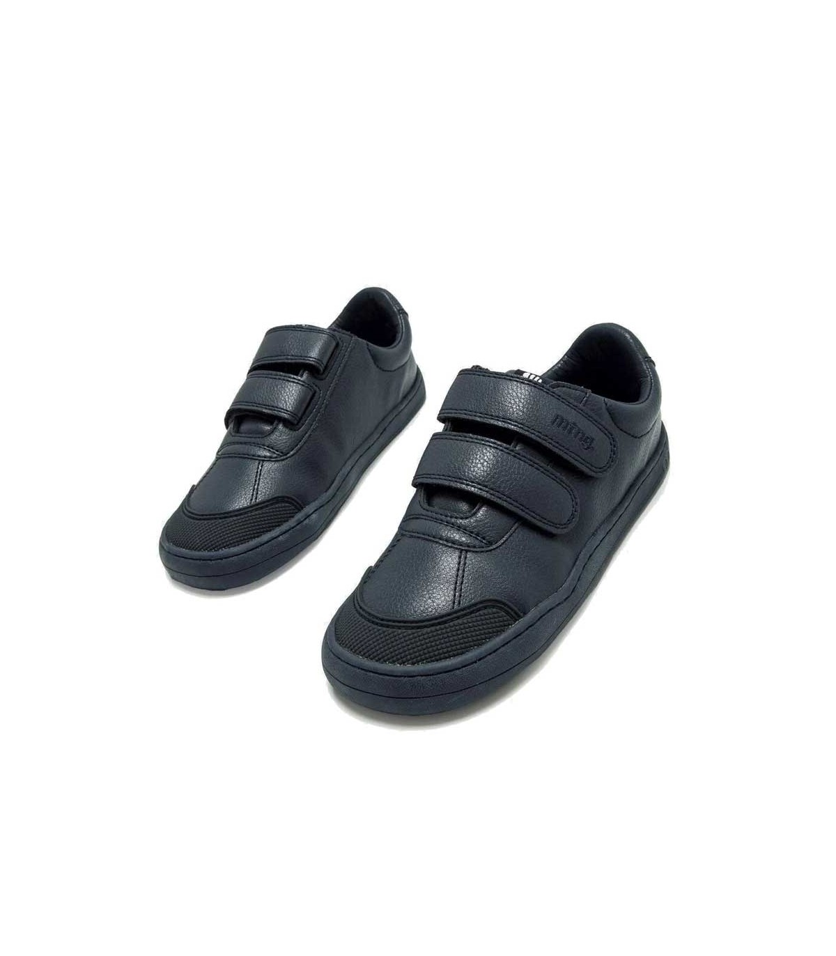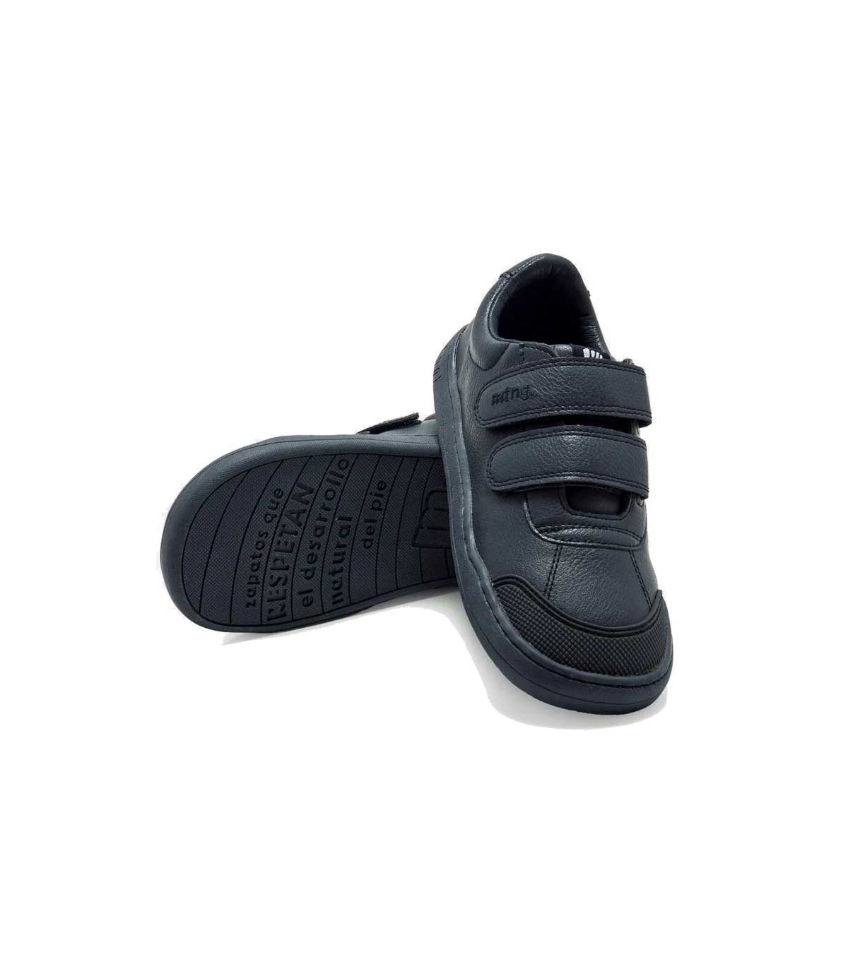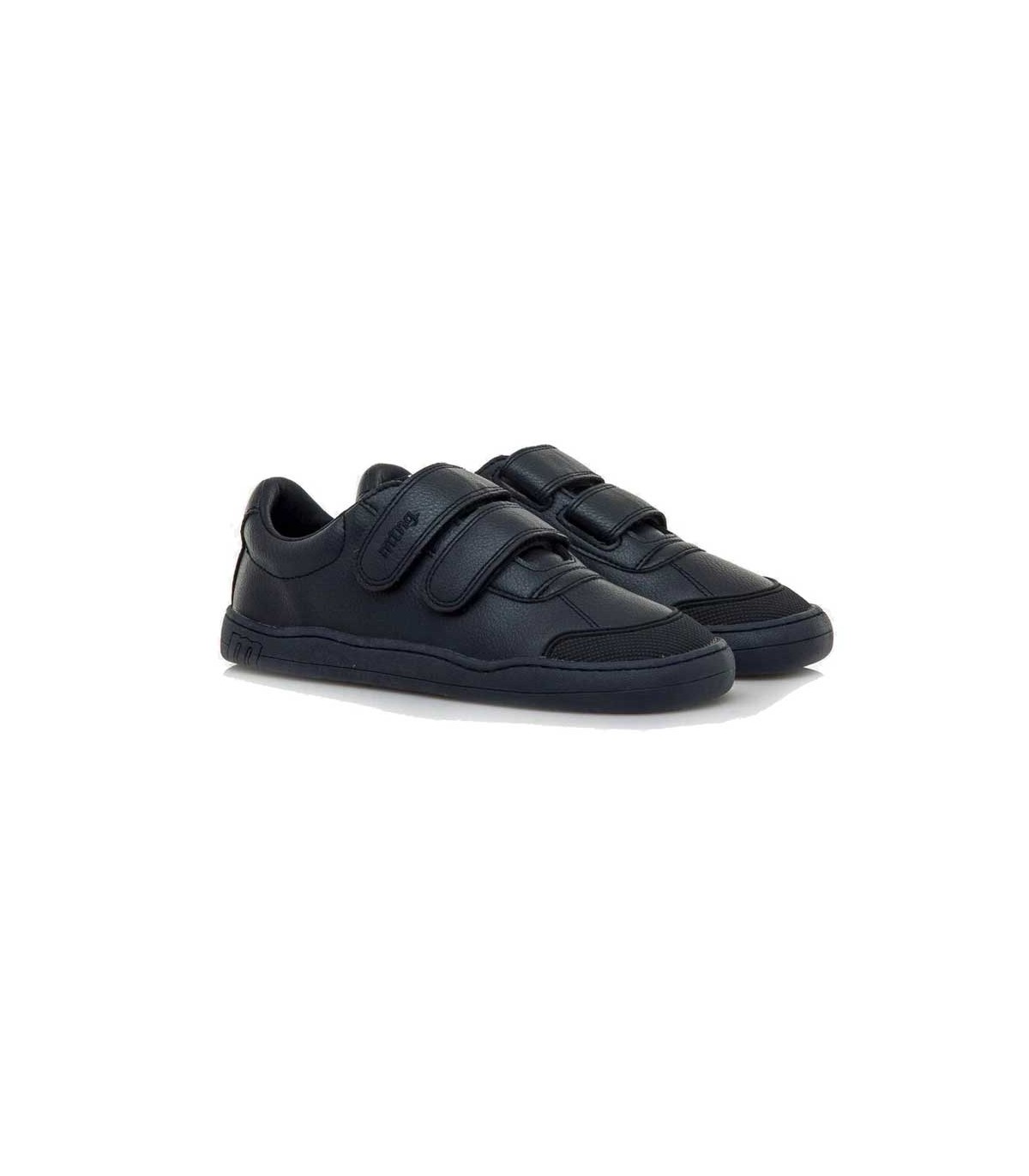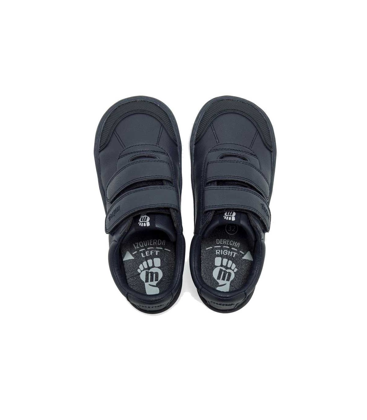 Zapato colegial respetoso azul marino Mustang Free, cierre con doble tira adhesiva para facilitar el poner y quitar. Refuerzos en la puntera y el talón para un uso intensivo.