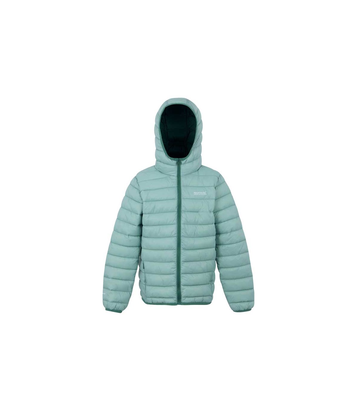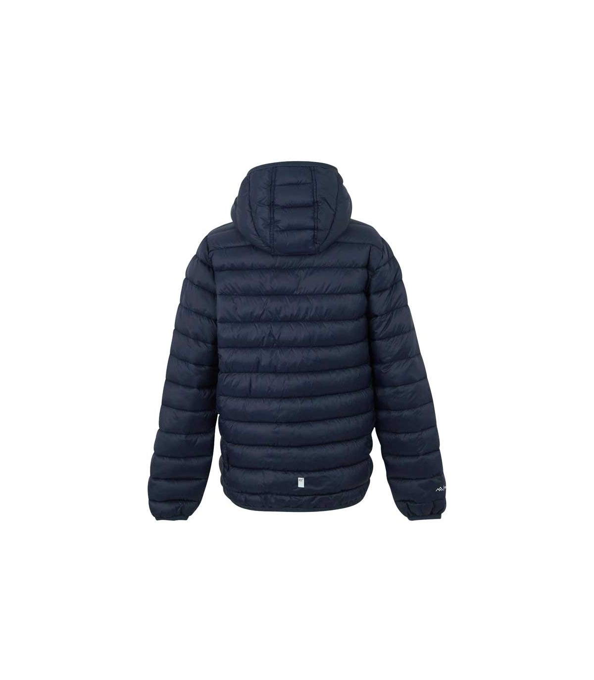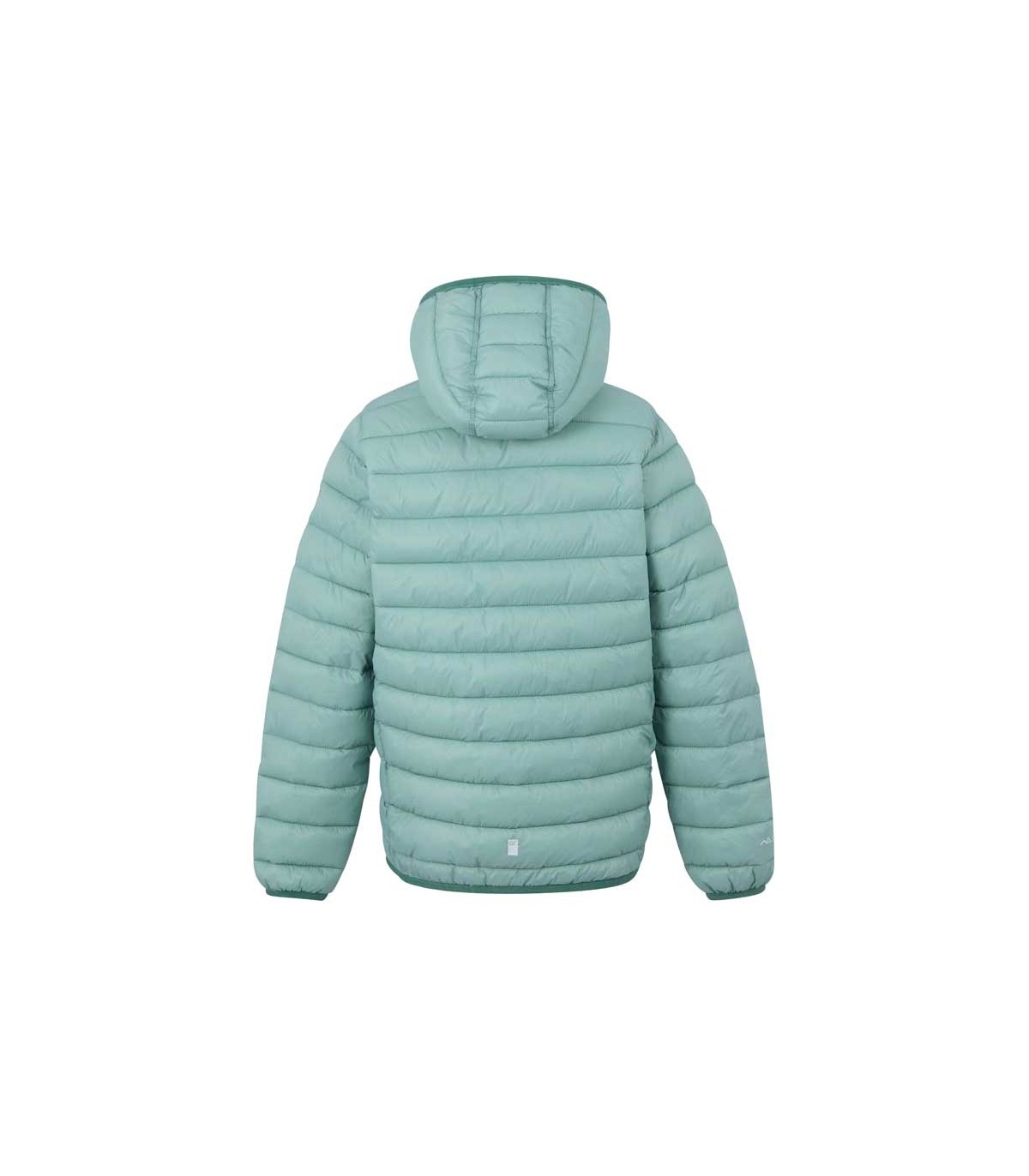 Chaqueta impermeable y acolchada, con capota acolchada y bolsillos. Resistente al agua. Fabricada con material reciclado. Sin plumas, de secado rápido. Libre de PFC.