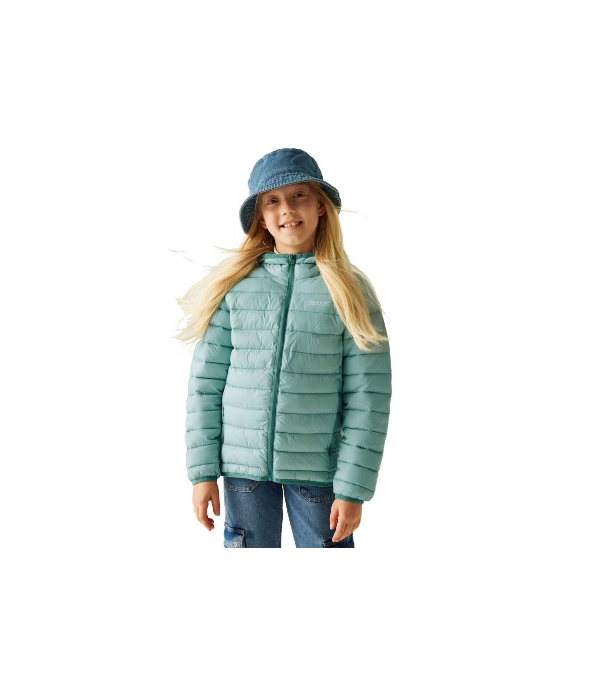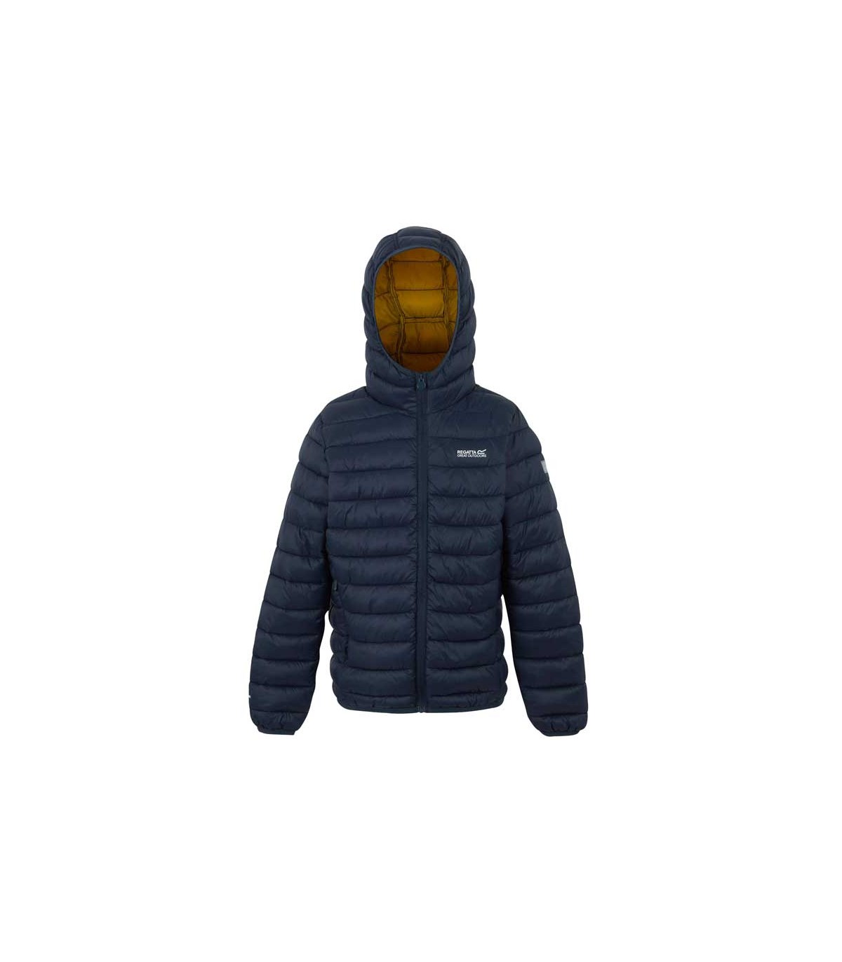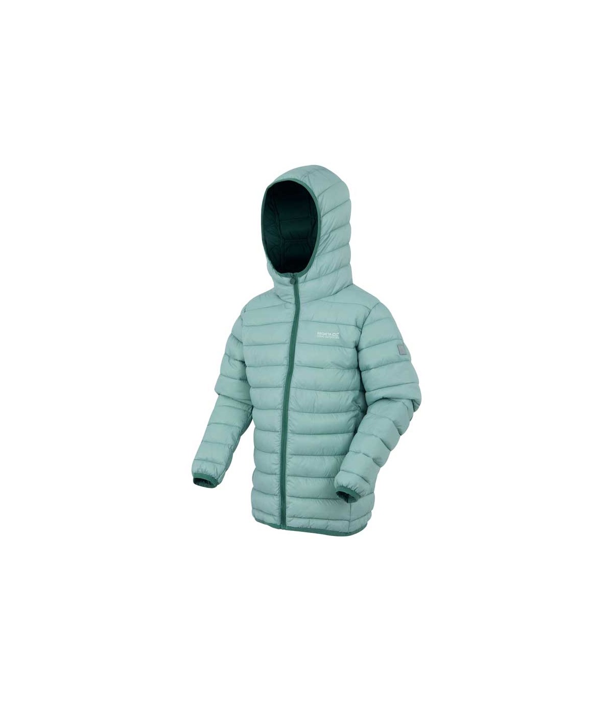 Chaqueta impermeable y acolchada, con capota acolchada y bolsillos. Resistente al agua. Fabricada con material reciclado. Sin plumas, de secado rápido. Libre de PFC.