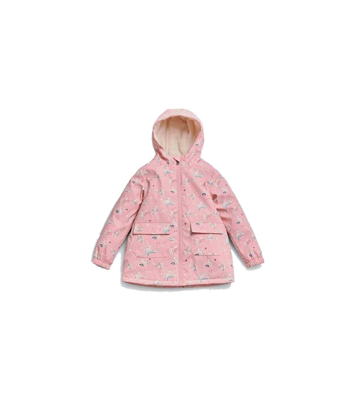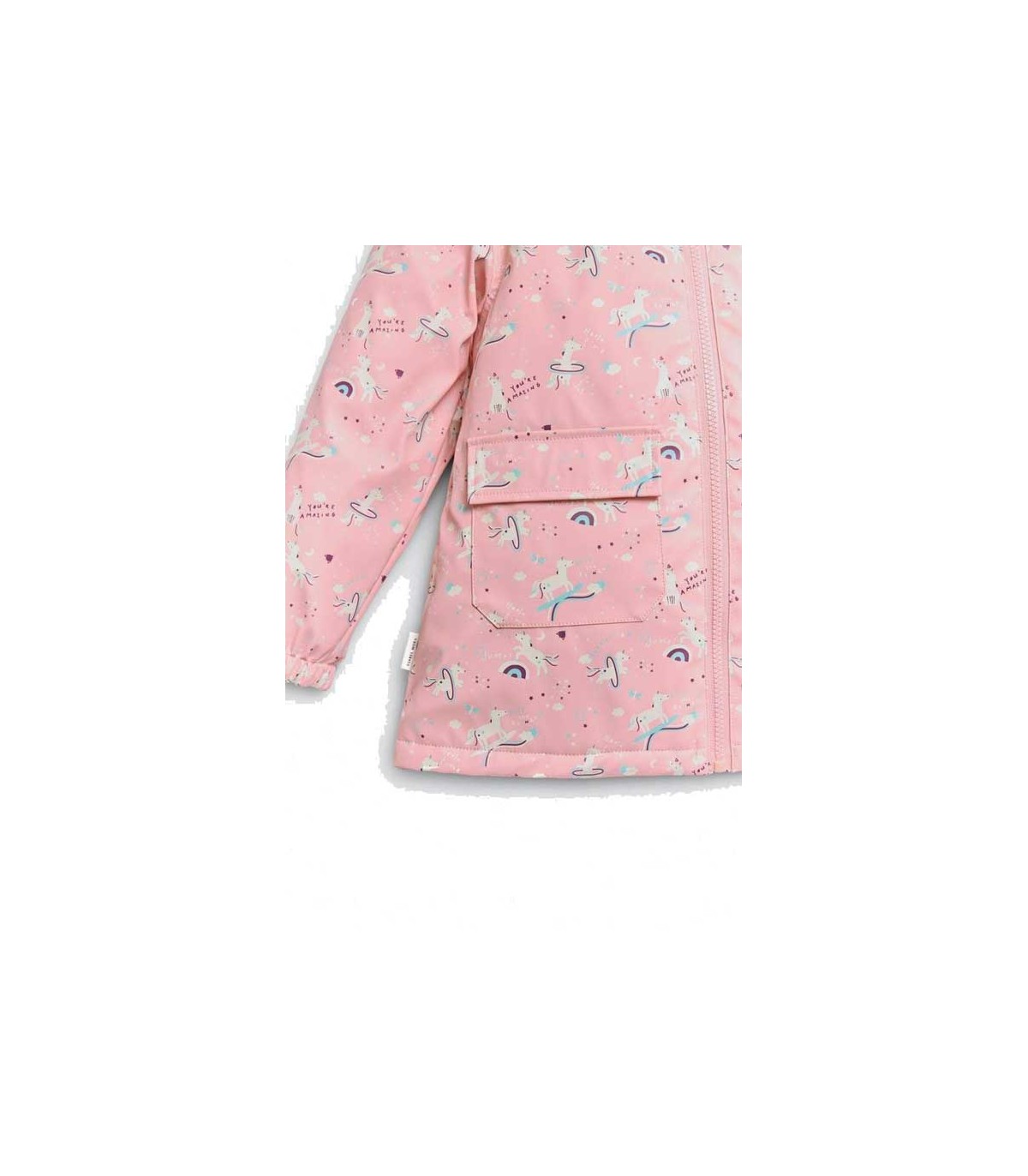 Paraguas infantil verde y rosa con decoración de unicornios, 54 cm. de diámetro. Varillas de fibra de vidrio par mejor resistencia al viento.