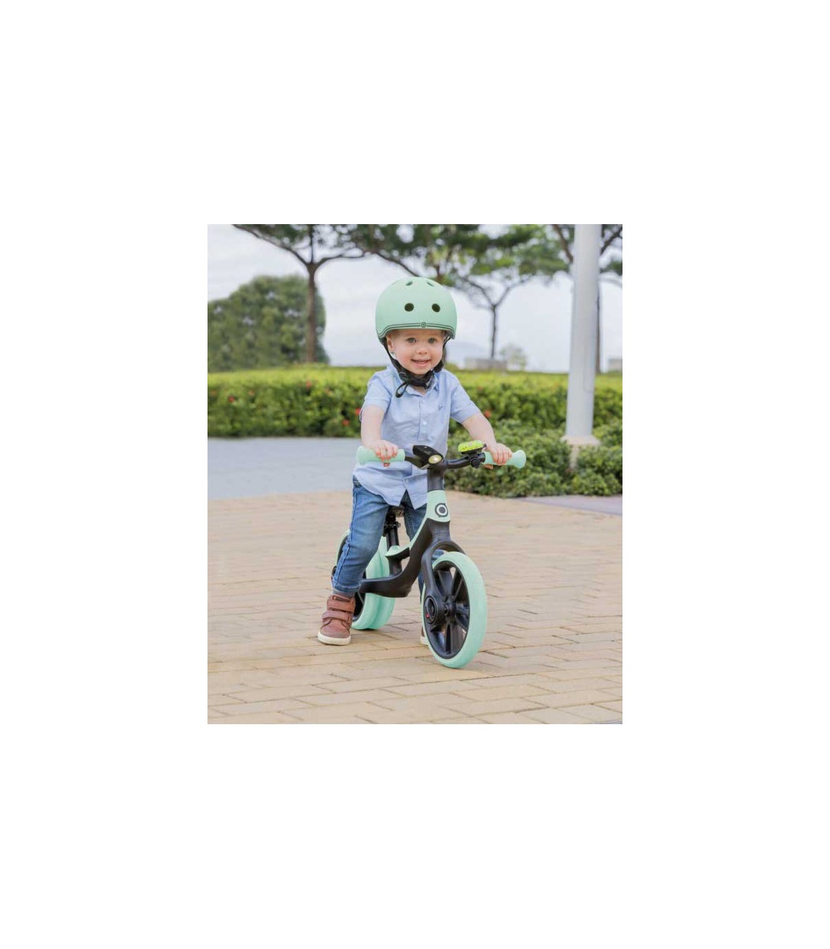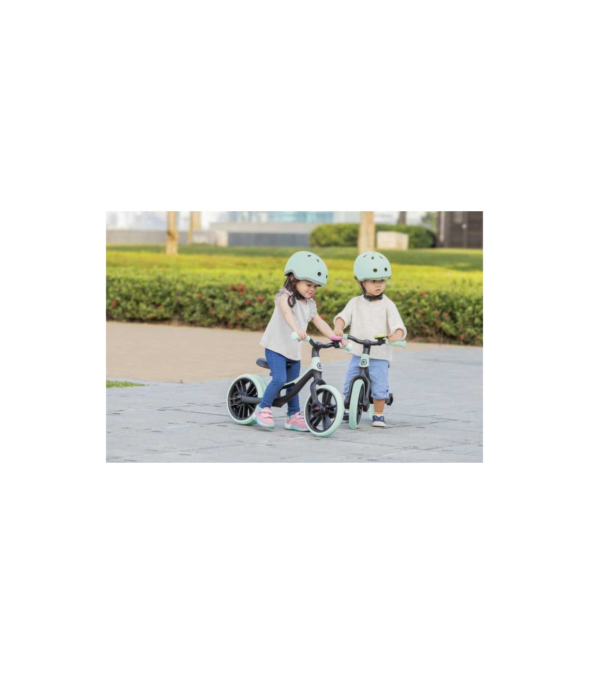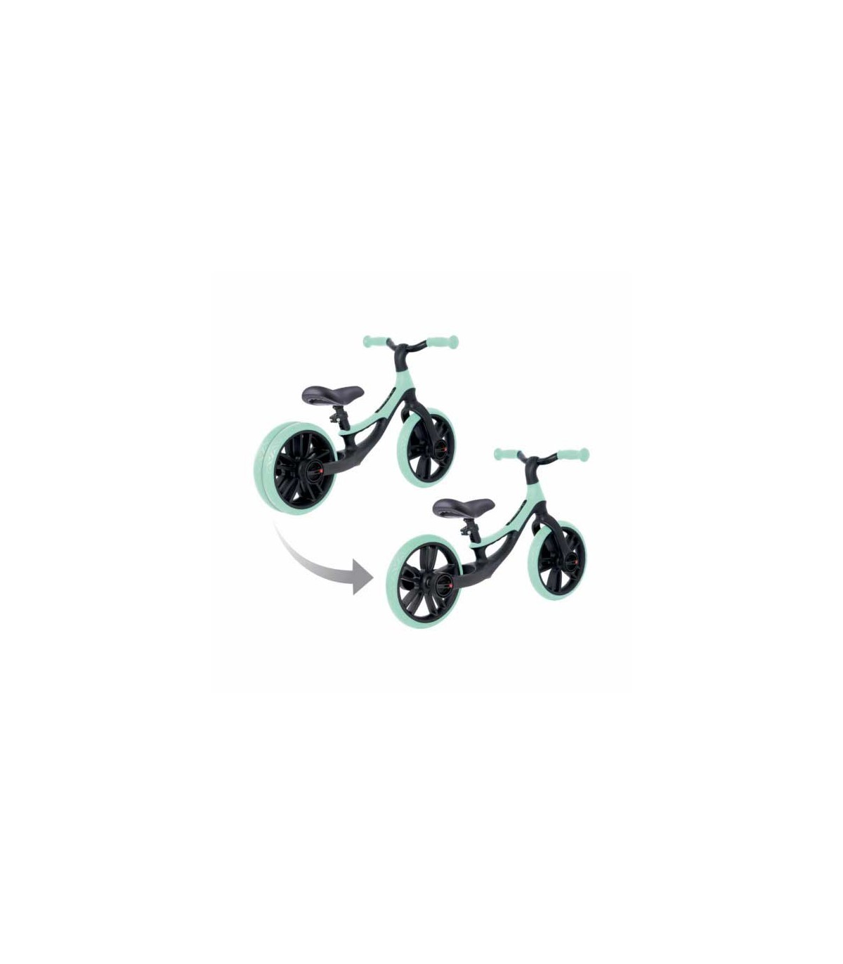 Bicicleta de equilibrio Globber Go Bike Elite Duo Verde ajustable para niños de 2 a 5 años. Rueda trasera doble para un mejor equilibrio del niño durante el aprendizaje.
