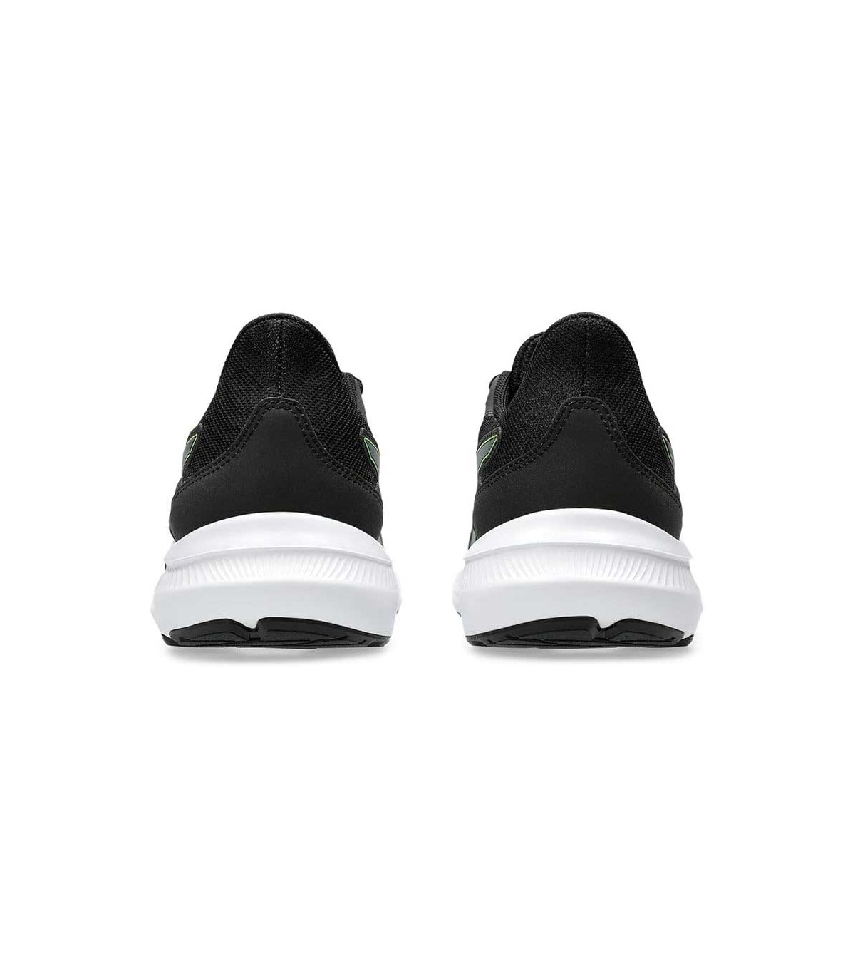 Zapatilla deportiva Asics Jolt 4 hombre color negro/gris/verde, parte superior de malla textil transpirable con refuerzo en la puntera y los ojales, ajuste con cordones. Mediasuela con ligera amortiguación para absorber los impactos y suela de caucho resistente.