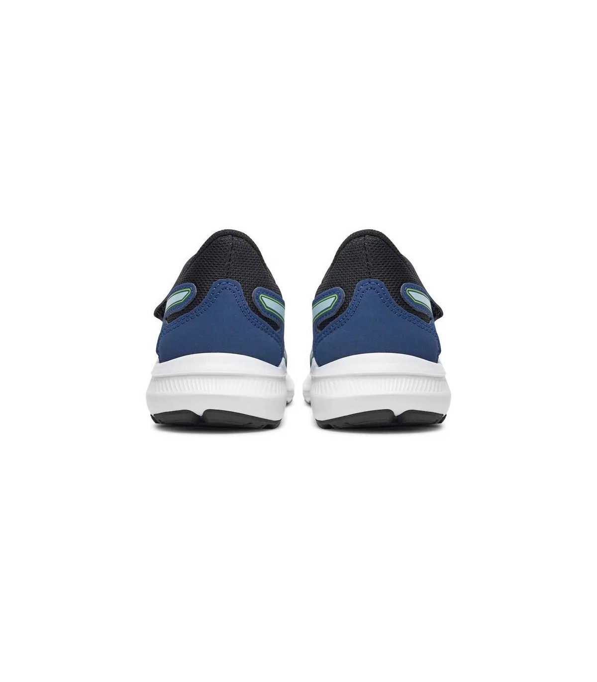 Zapatilla deportiva Asics Jolt 4 niño color azul/verde, parte superior de malla textil transpirable con refuerzo en la puntera y los ojales, ajuste con 1 velcro y cordones elásticos. Mediasuela con ligera amortiguación para absorber los impactos y suela de caucho resistente.