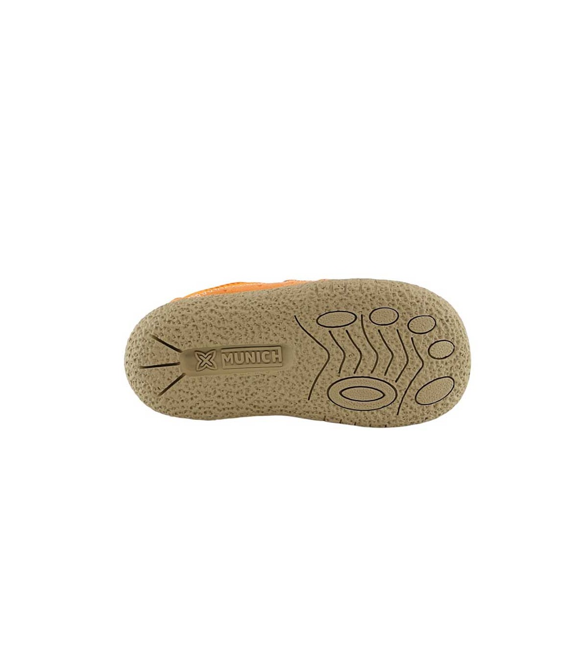 Zapatilla deportiva Munich Baby Paulo en blanco y celeste, calzado respetuoso con el desarrollo natural del pie. Drop cero, muy ligeros, suela fina, puntera ancha y forma natural del pie. en piel sintética color...