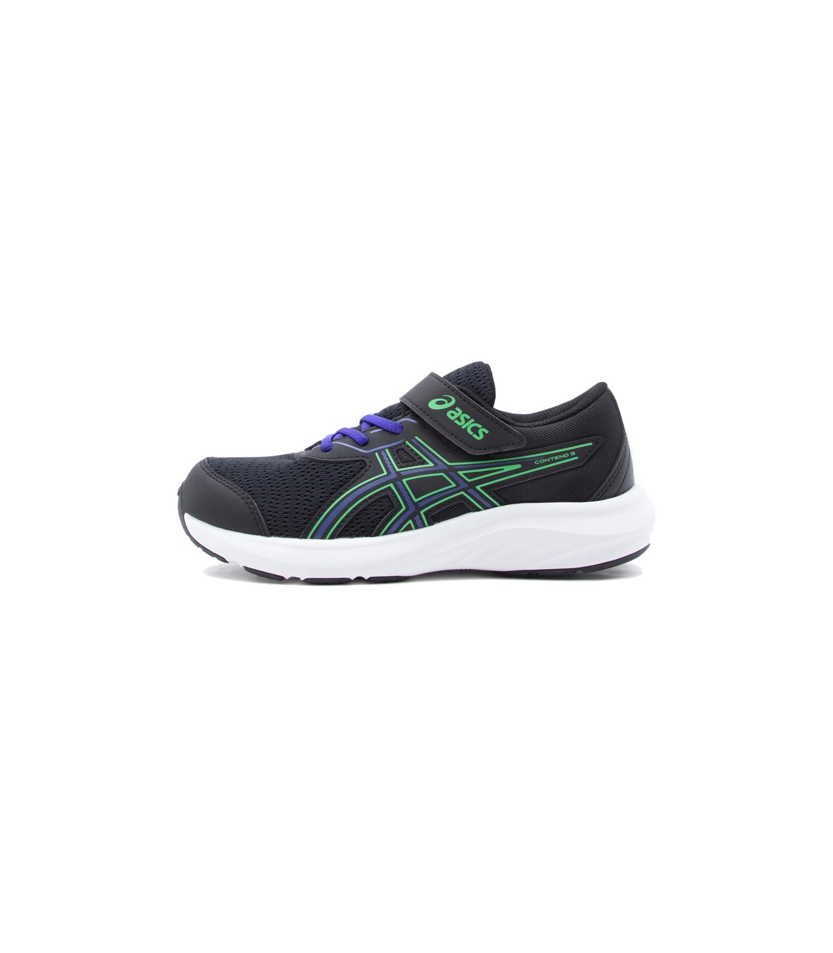 Zapatilla deportiva running niño color negro y verde.