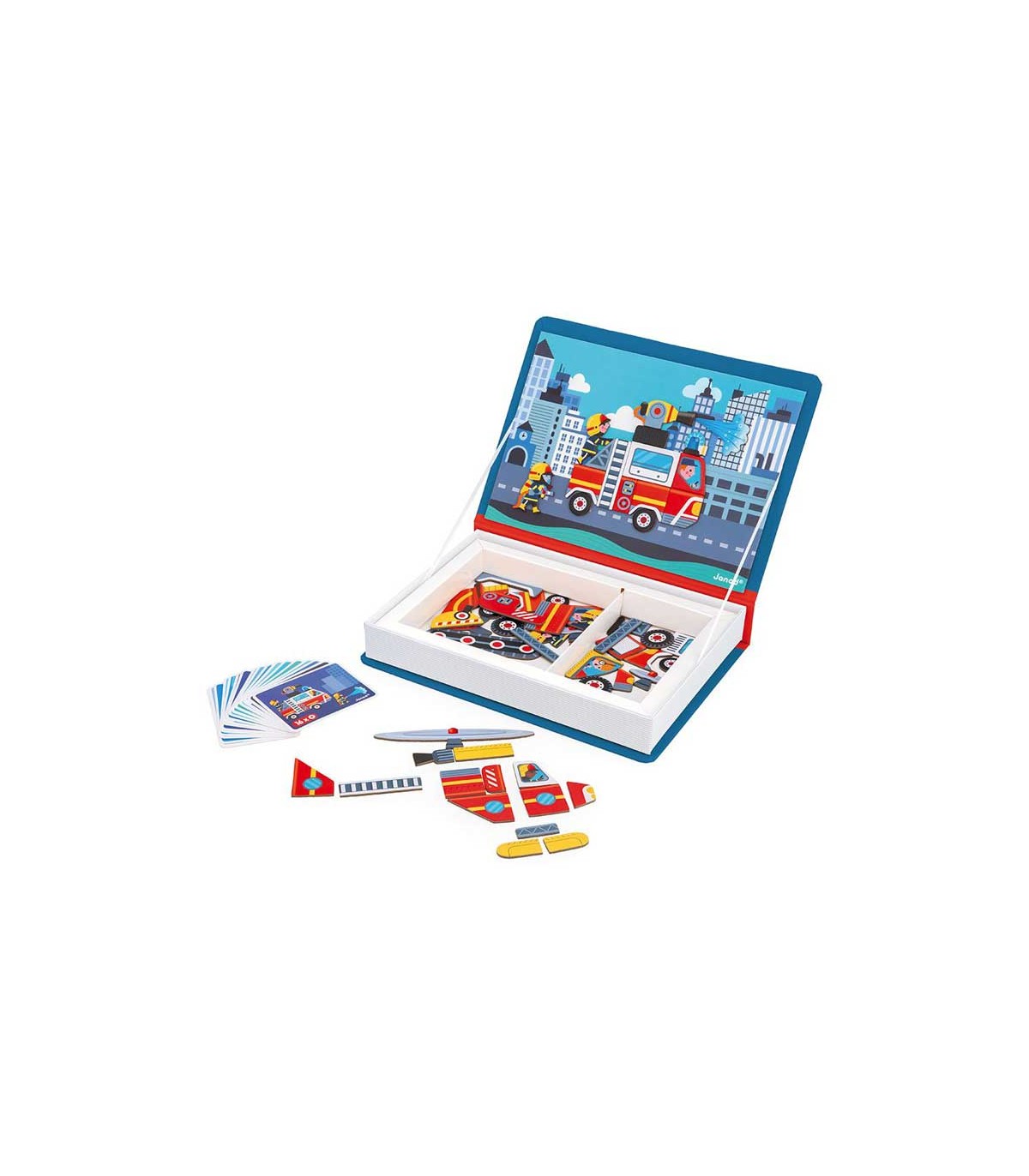 Libro magnético para formar imágenes de temática de bomberos, con 60 imanes y 18 cartas de ejemplo. Estimula la imaginación y la creatividad de los niños a partir de 3 años. Formato en forma de libro para fácil transporte.