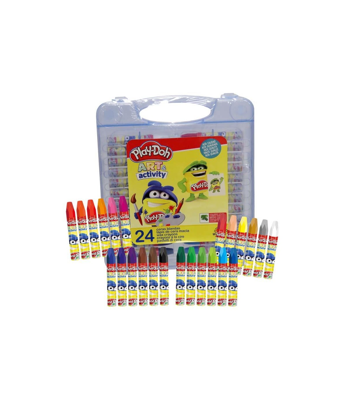 Set de 24 ceras blandas de colores intensos que permiten que los colores se mezclen con facilidad. Se adaptan a las manos de los niños y son ideales para aprender a dibujar, ya que no manchan ni se rompen. Articulo con licencia Hasbro.