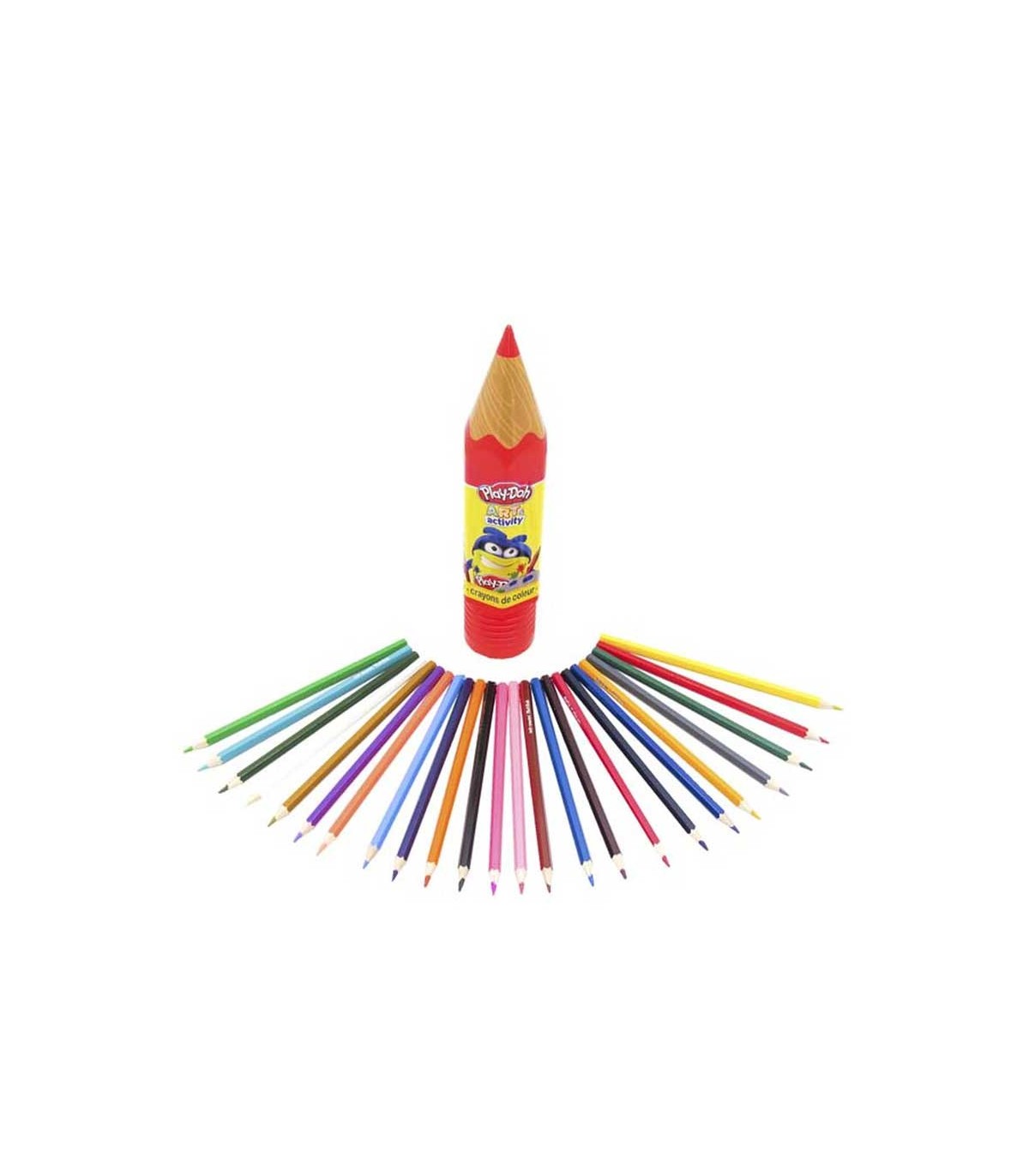 Tubo en forma de lápiz, con 24 lápices de colores vivos para dibujar y pintar.