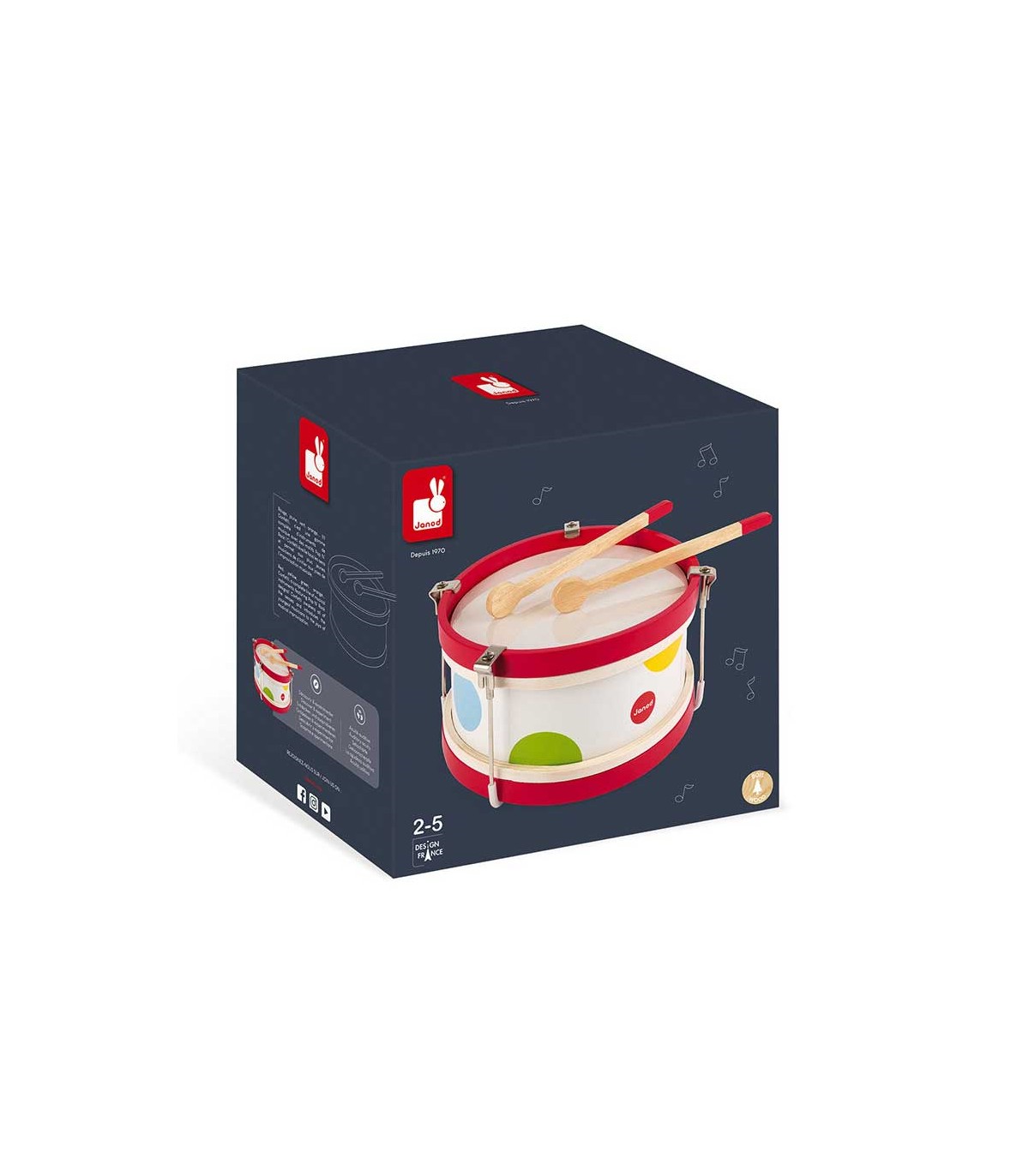 Tambor de madera de 23 cm. de diámetro para los mas pequeños, incluye 2 baquetas.