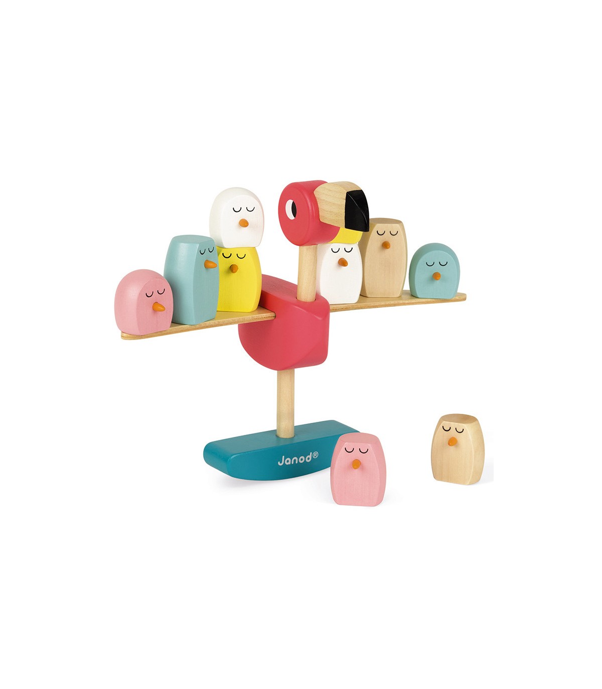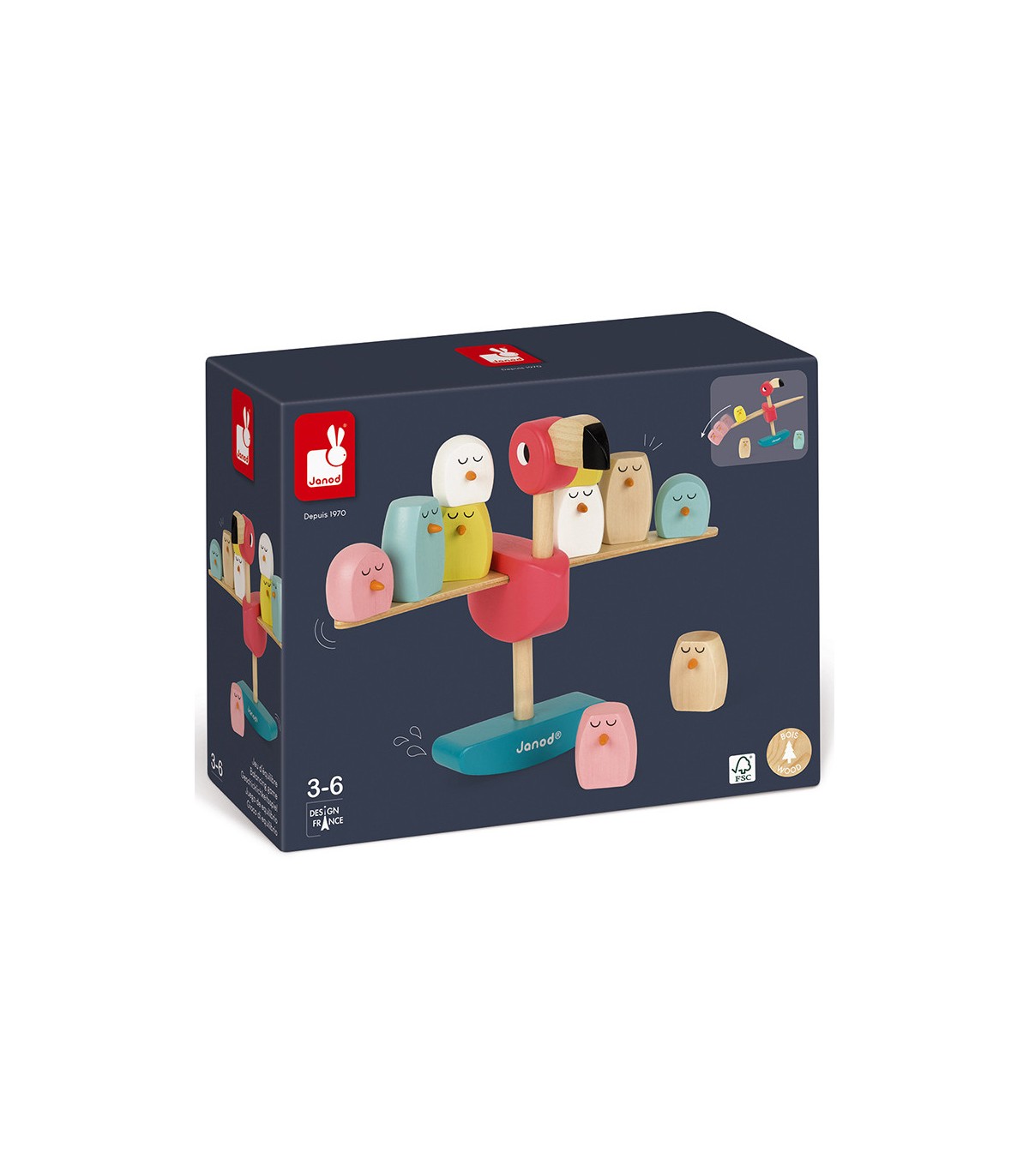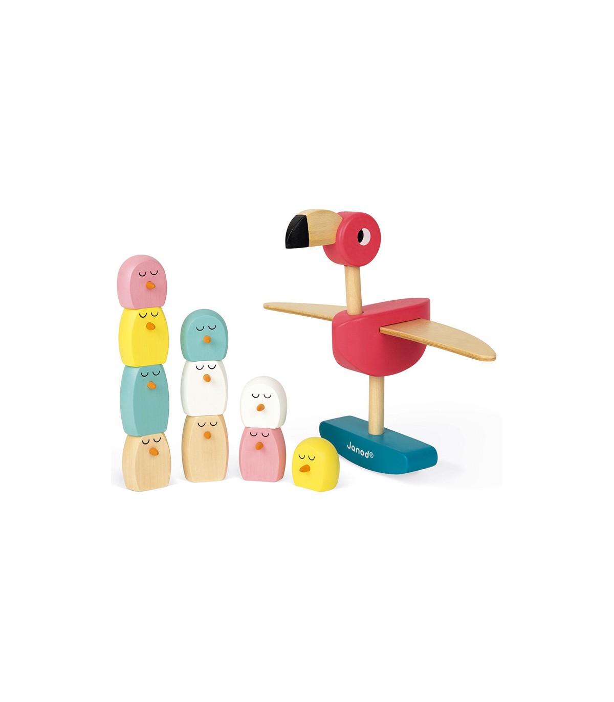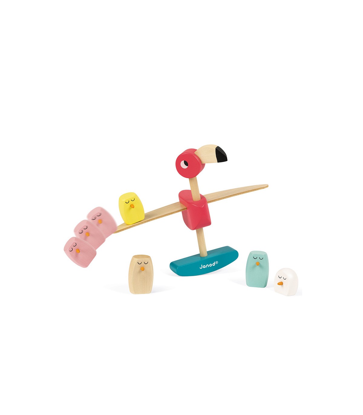 Juego de equilibrio de madera maciza, adecuado para niños a partir de 3 años. Los niños deben colocar los bebés de flamenco sobre las alas sin que se caigan, el primero que desequilibra el flamenco rosa pierde.
