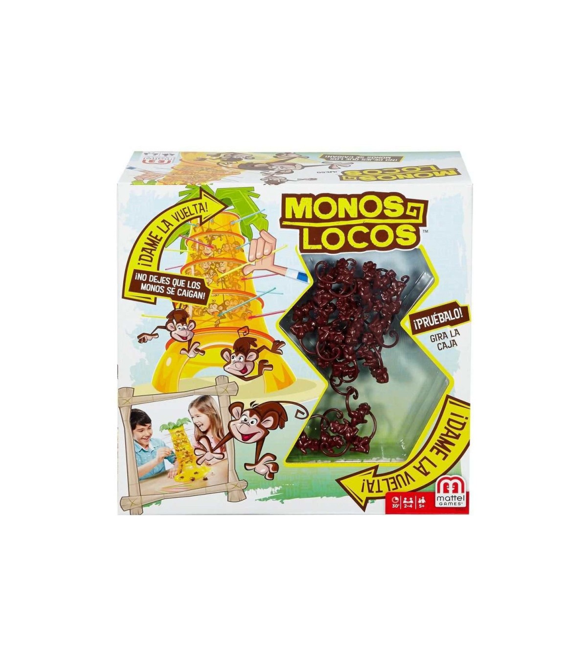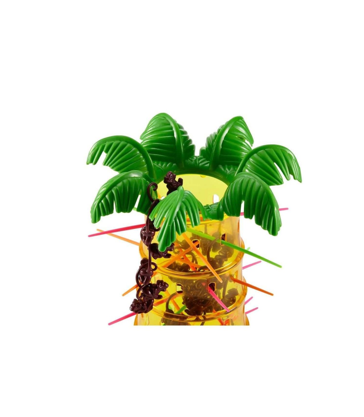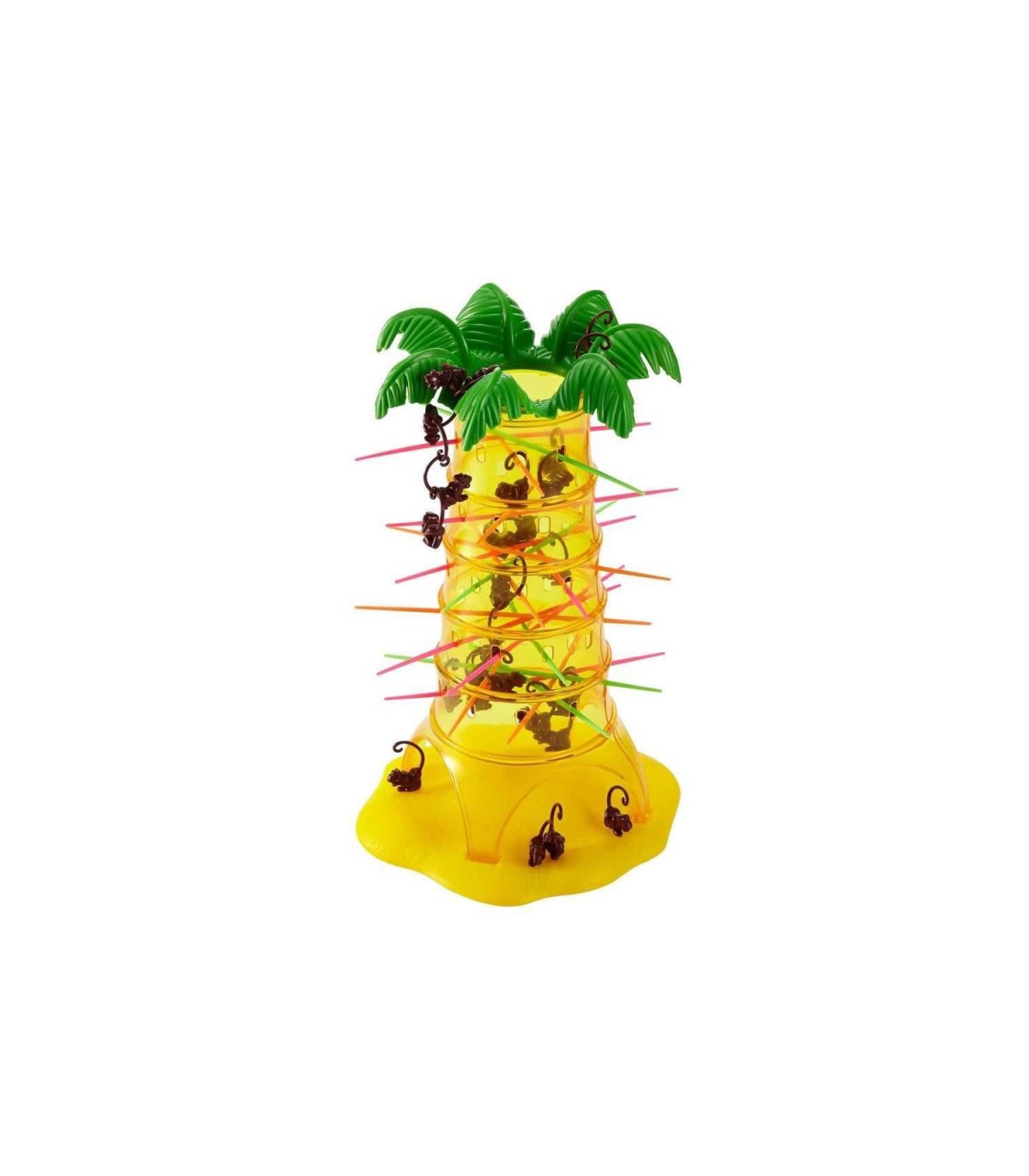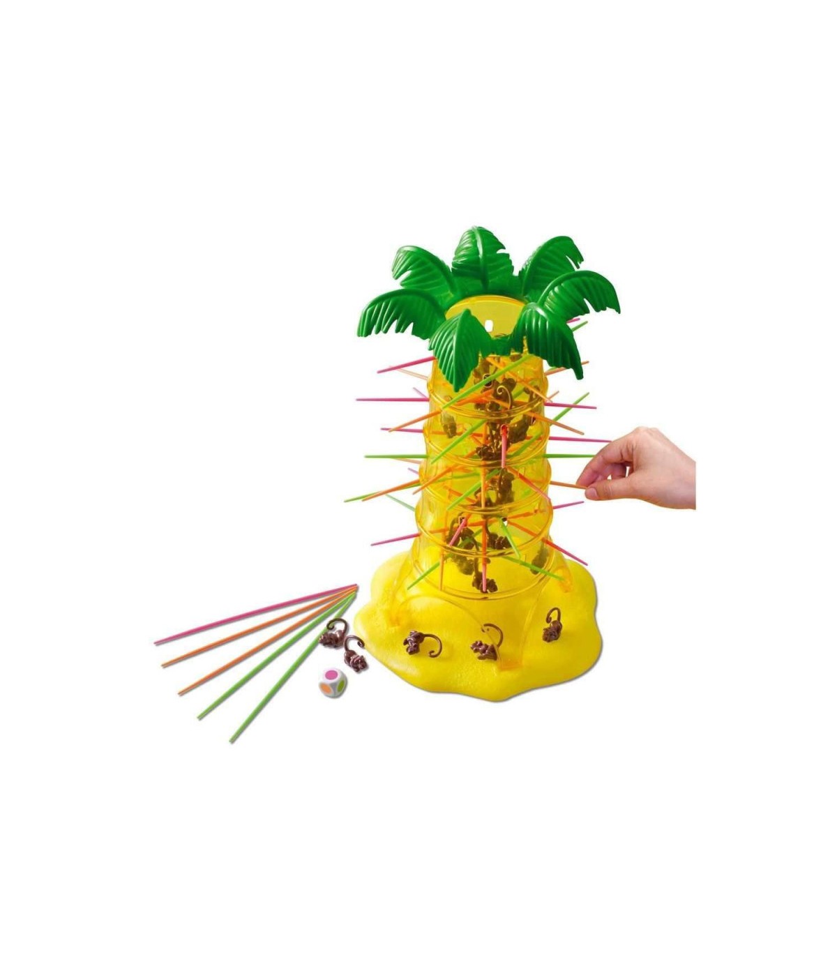 Divertido juego de 2 a 4 jugadores, lanza los monos desde lo alto de la palmera y luego lanza el dado de color y tira de una de las varitas del color indicado, pero cuidado que los monos no se caigan. Recomendado a partir de 5 años.