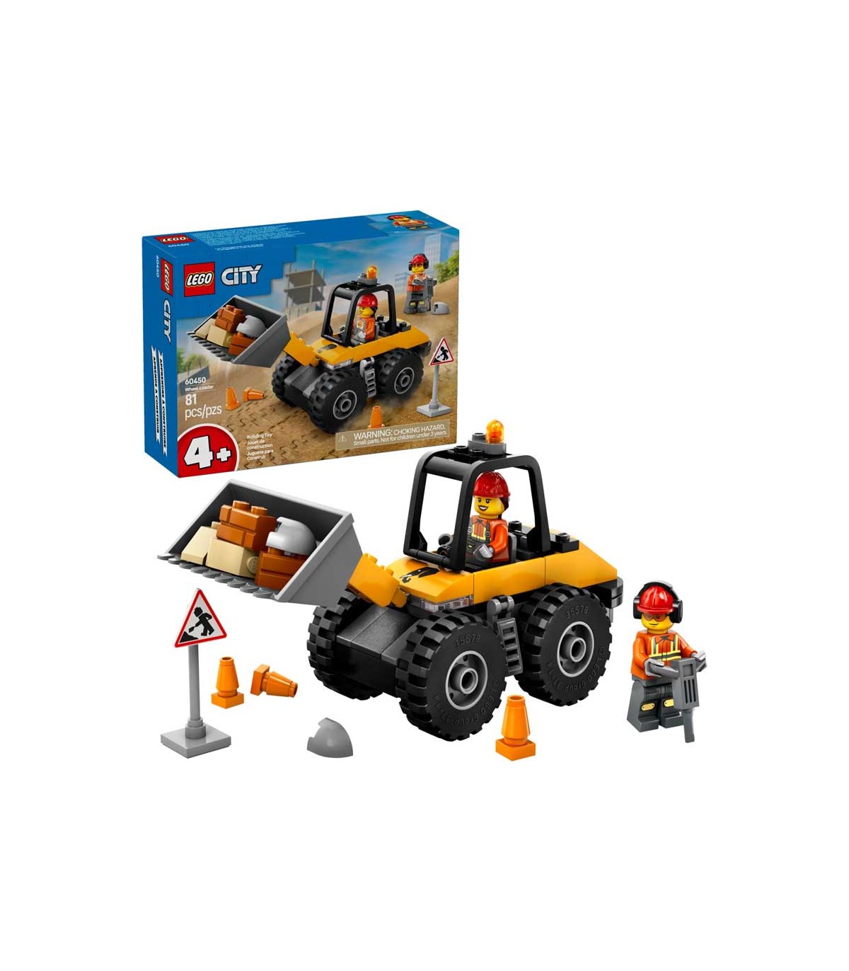Set de construcción Lego City, Cargador con ruedas amarilla, Contiene 81 piezas, incluye 2 Minifiguras exclusivas.