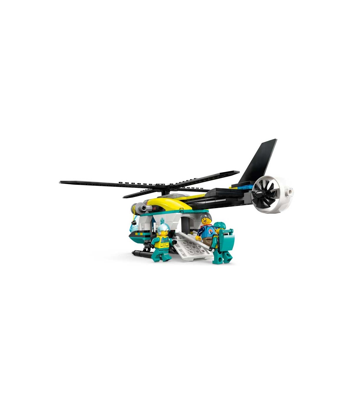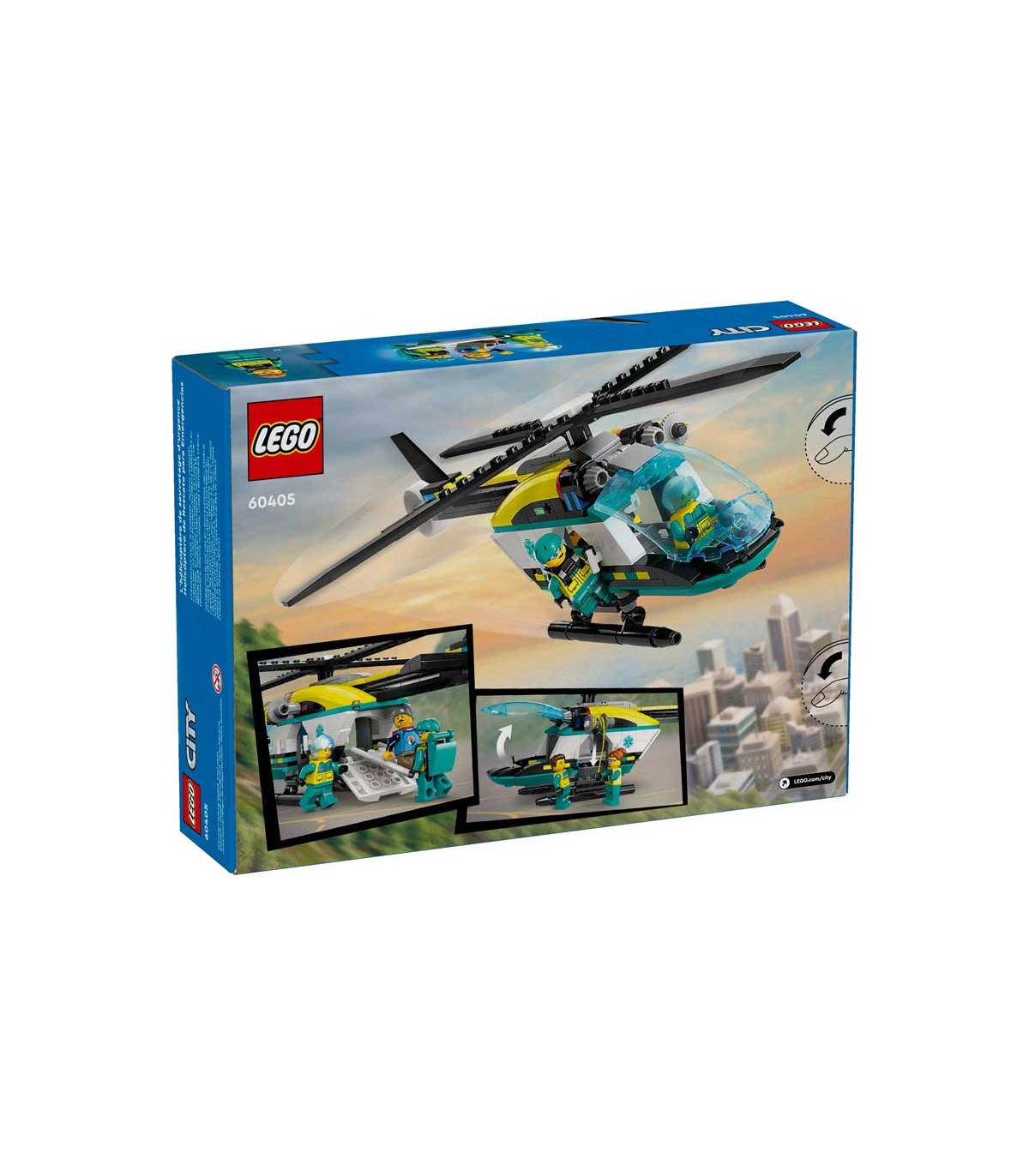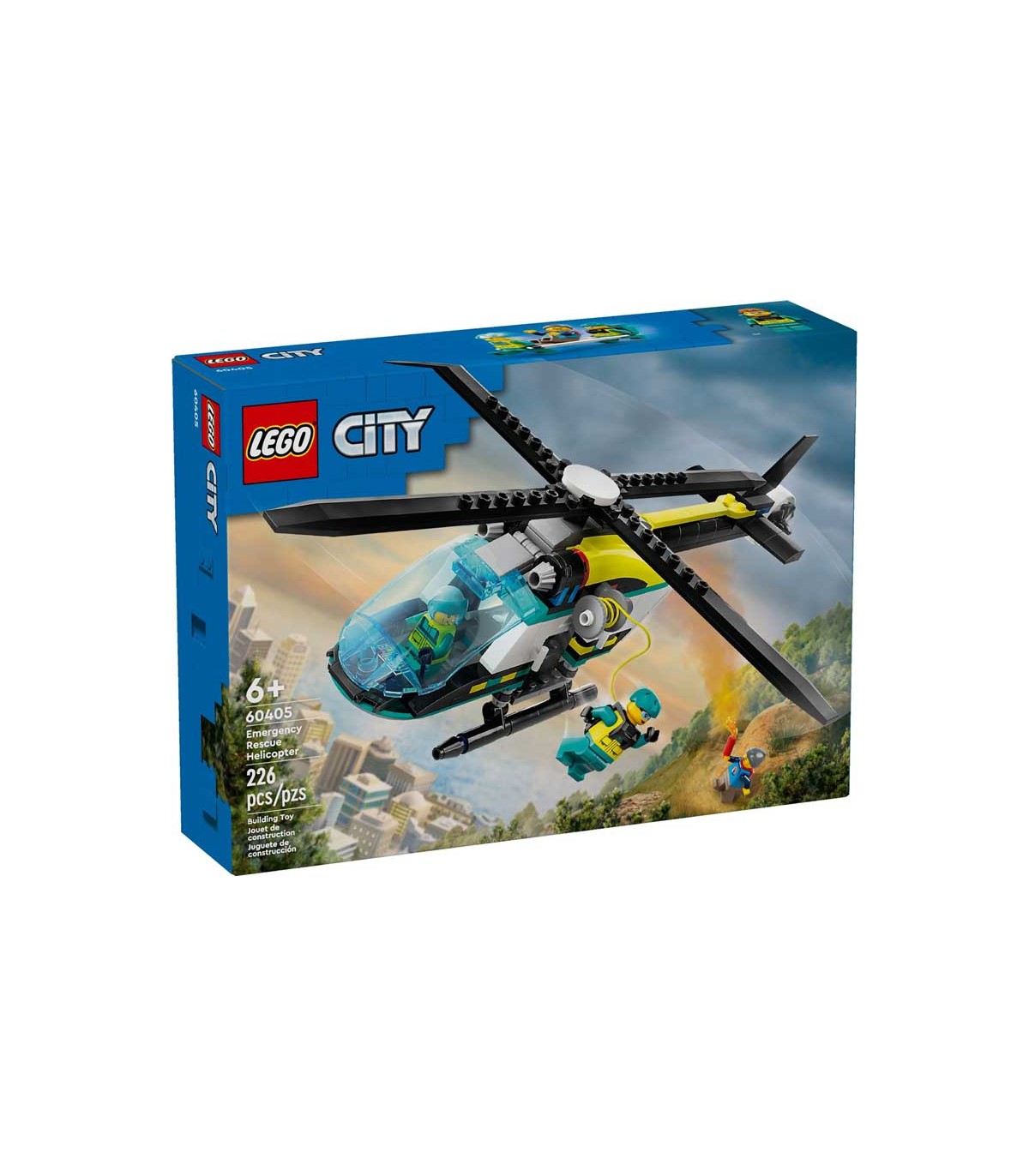 Set de construcción Lego City, helicóptero de rescate para emergencias. Contiene 226 piezas, incluye 3 Minifiguras exclusivas.