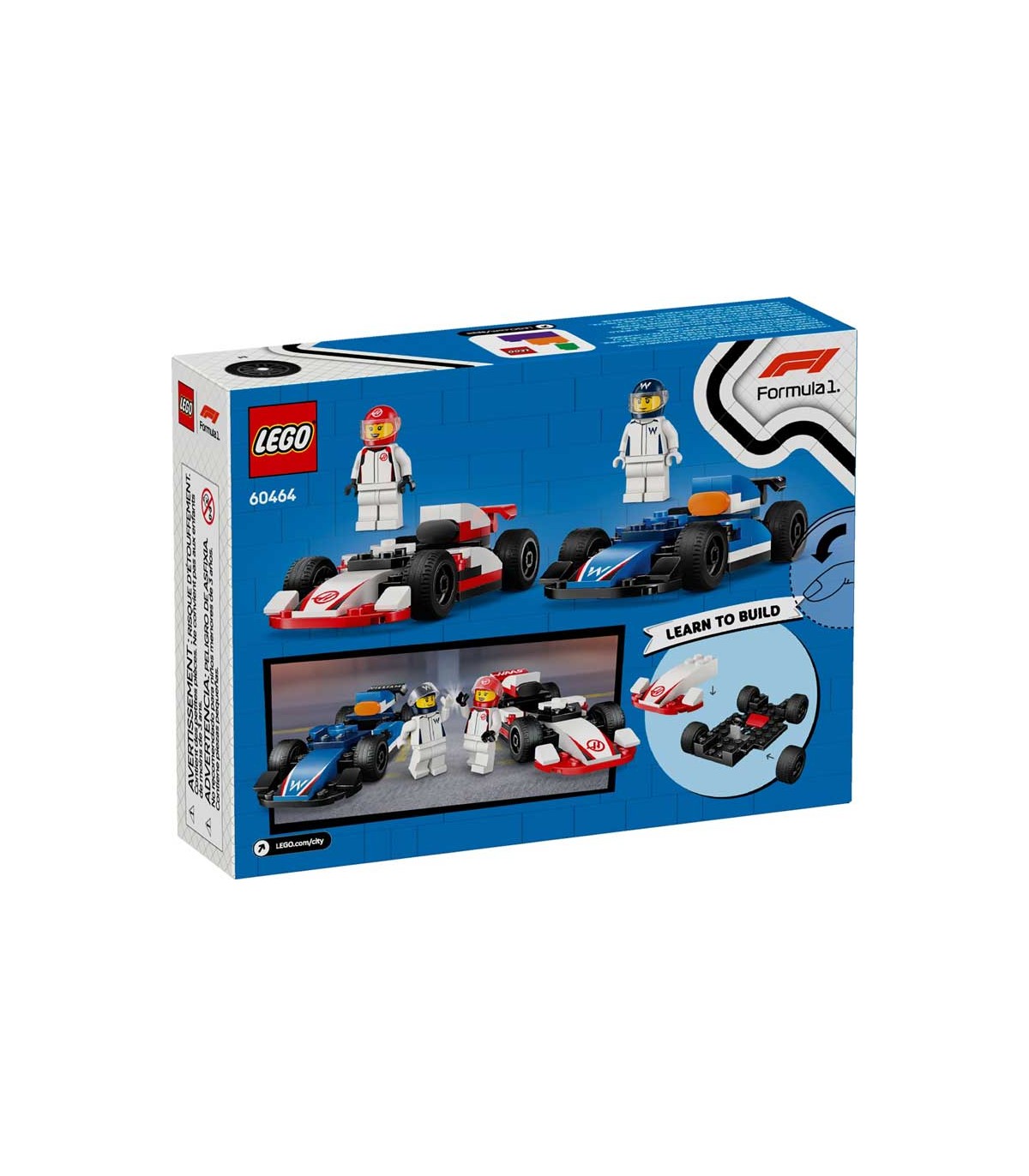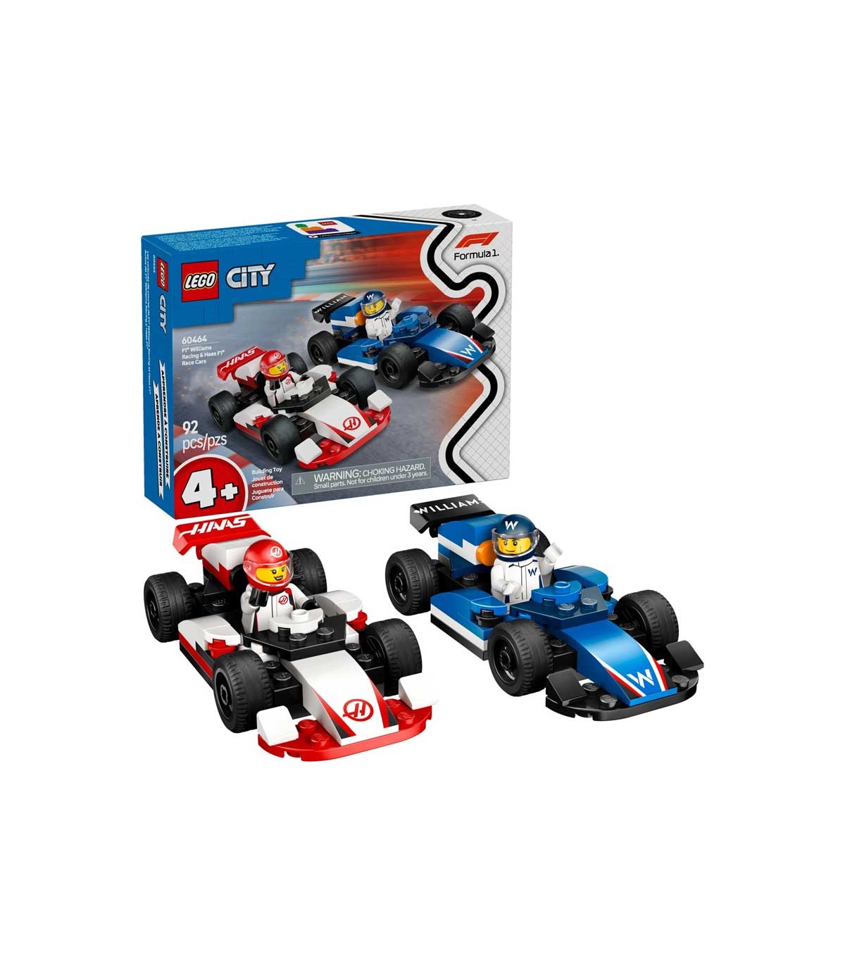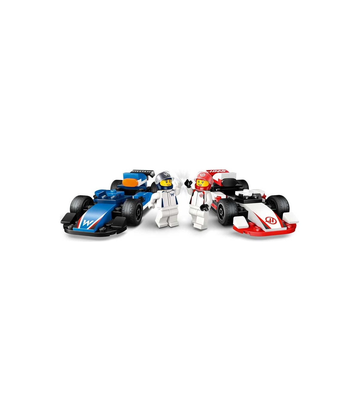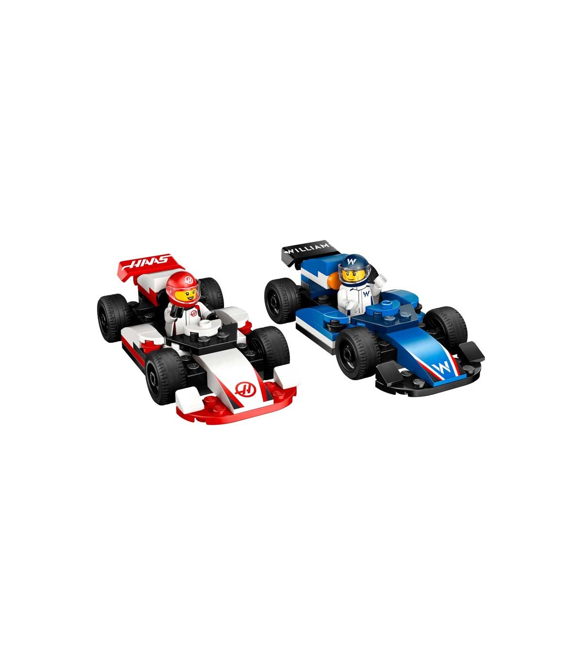 Set de construcción Lego City, coches de Fórmula 1 Williams Racing y Haas F1. Contiene 92 piezas, incluye 2 Minifiguras exclusivas.