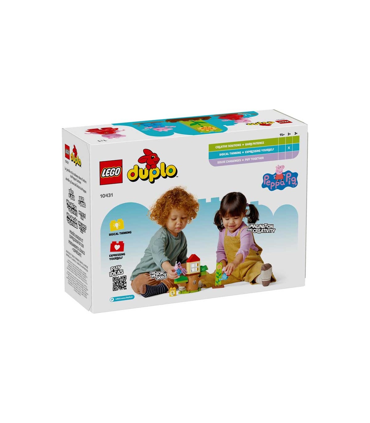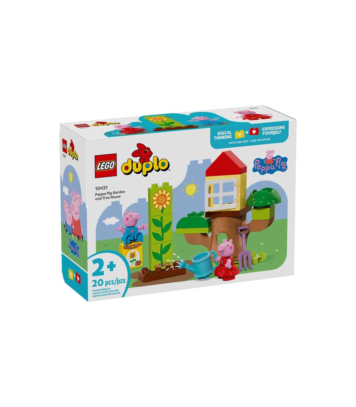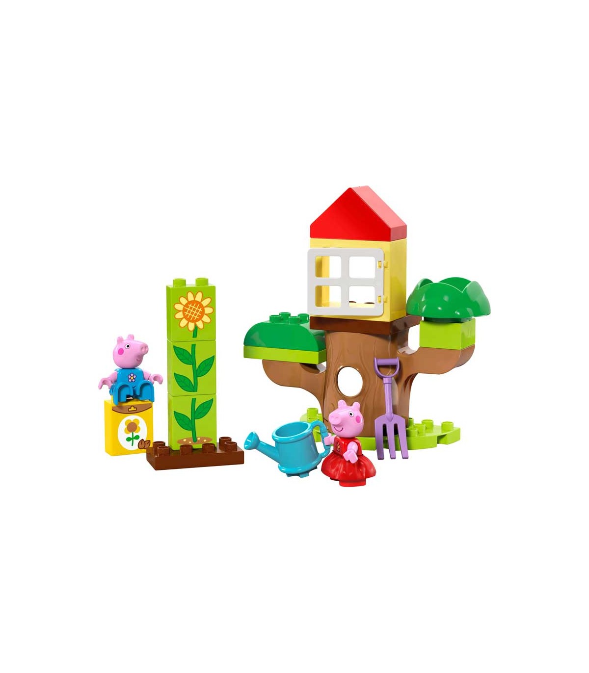 Set de construcción Lego Duplo, jardín y casa del árbol de Peppa Pig. Contiene 20 piezas, incluye dos figuras exclusivas.