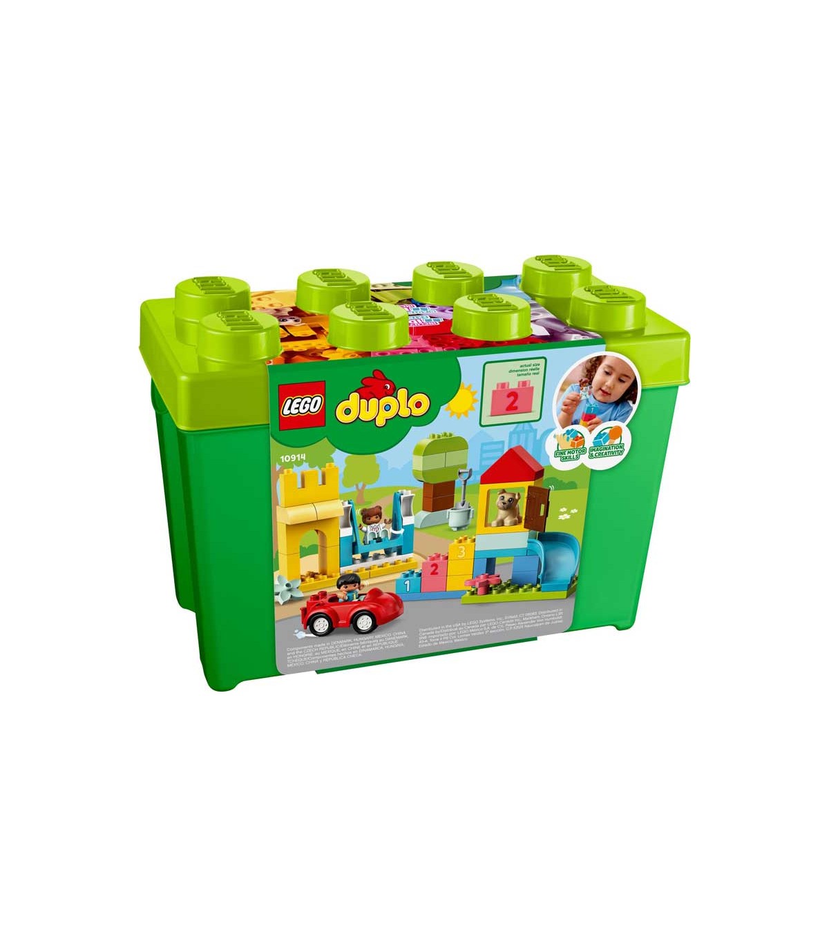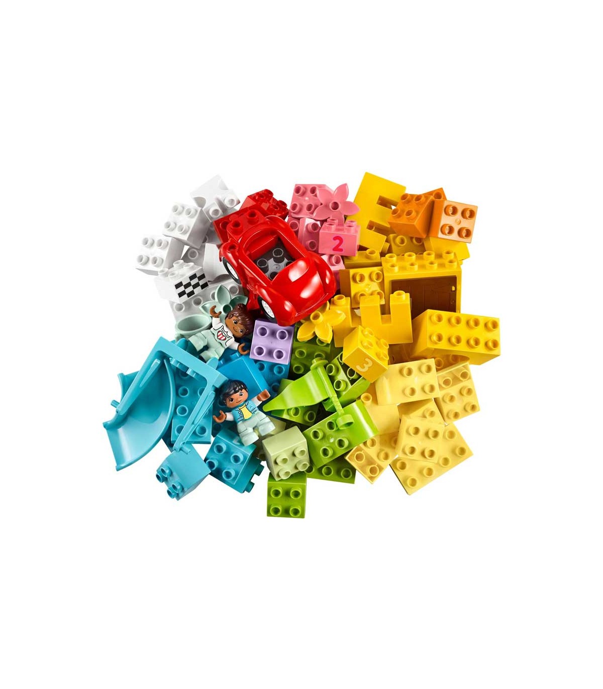 Set de construcción Lego Duplo, caja de ladrillos Deluxe. Contiene 85 piezas y dos figuras en caja de plástico duro para guardar las piezas con facilidad.