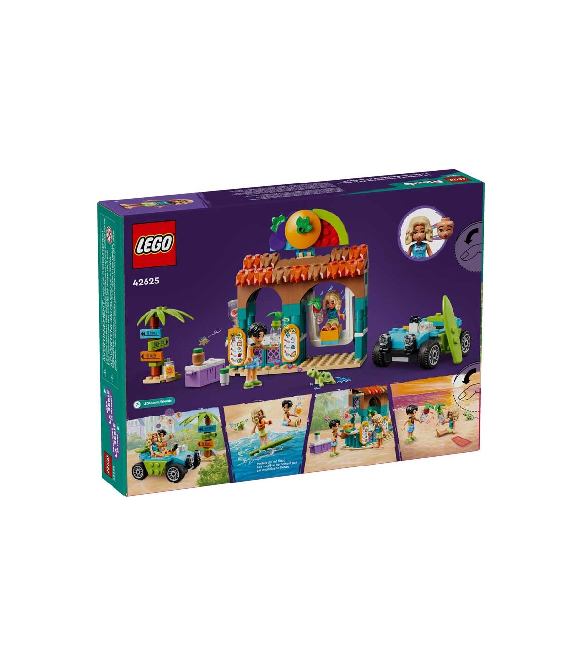 Set de construcción Lego Friends, puesto de batidos de la playa. Contiene 213 piezas, incluye 2 Minifiguras, 1 exclusiva.