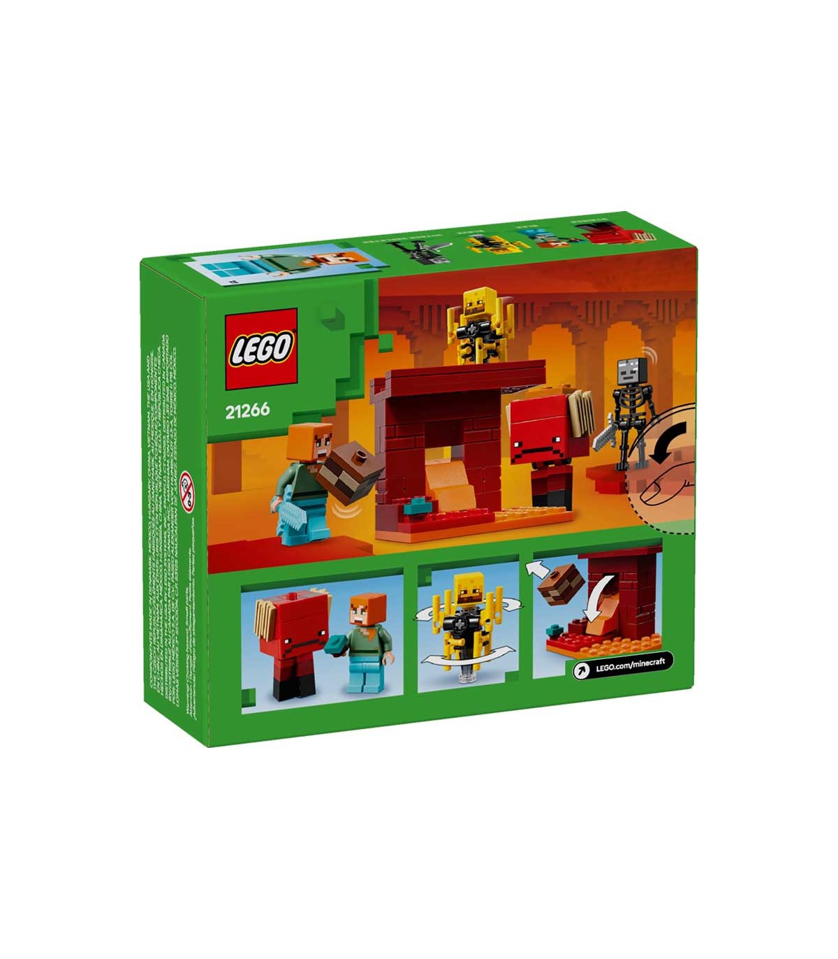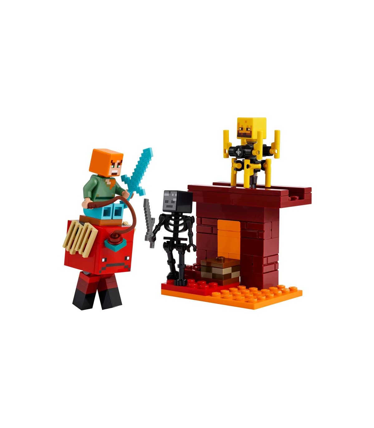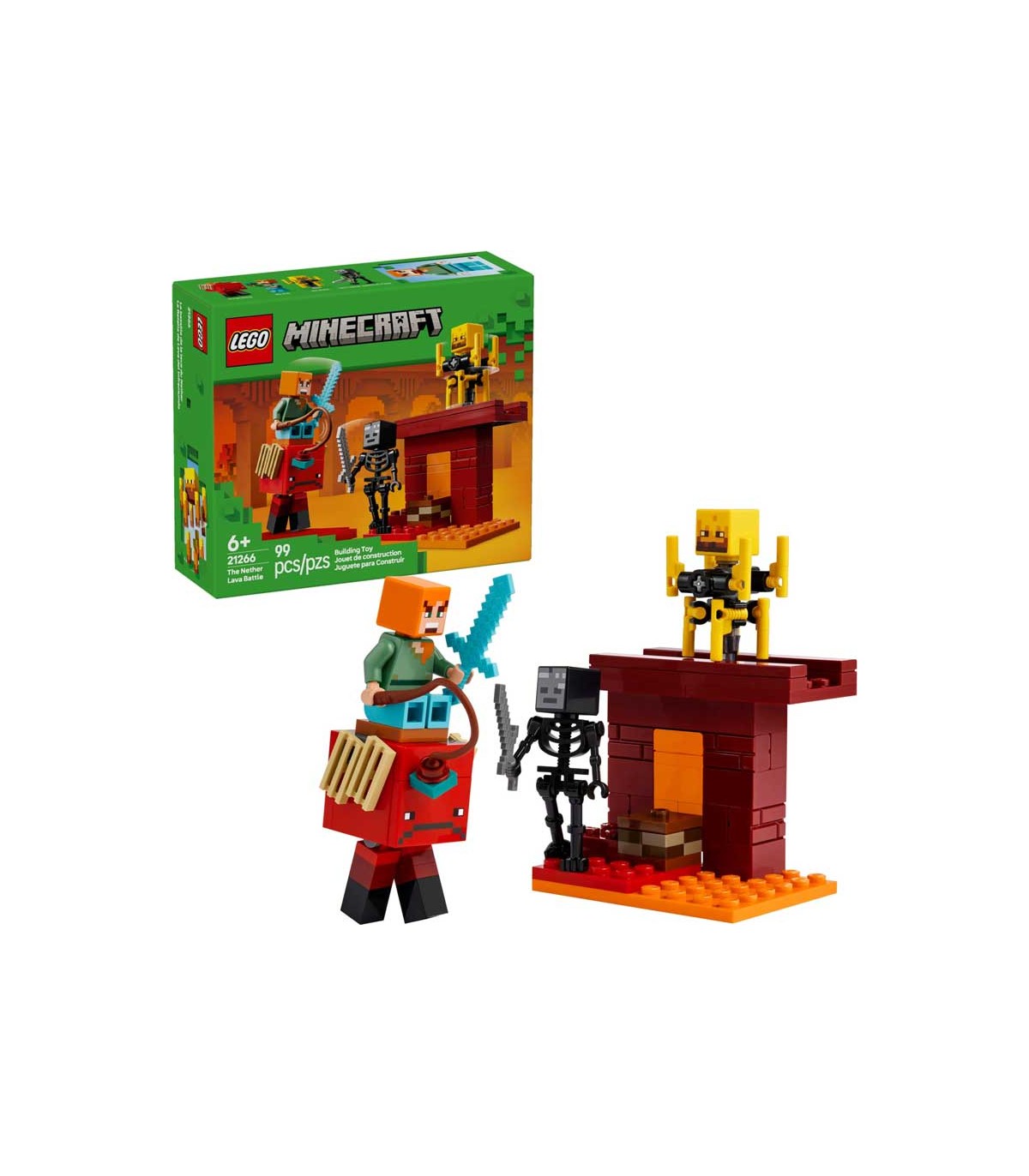 Set de construcción Lego Minecraft, la batalla de lava del inframundo. Contiene 99 piezas, incluye 3 Minifiguras, 2 exclusivas.
