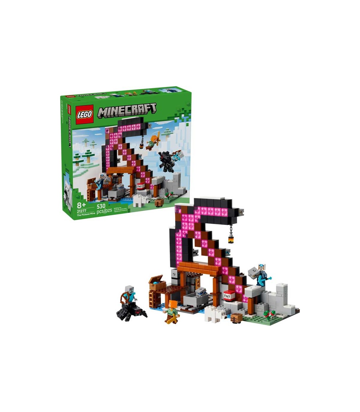 Set de construcción Lego Minecraft, La Mina del Pico. Contiene 530 piezas, incluye 3 Minifiguras, 2 exclusivas de este set.