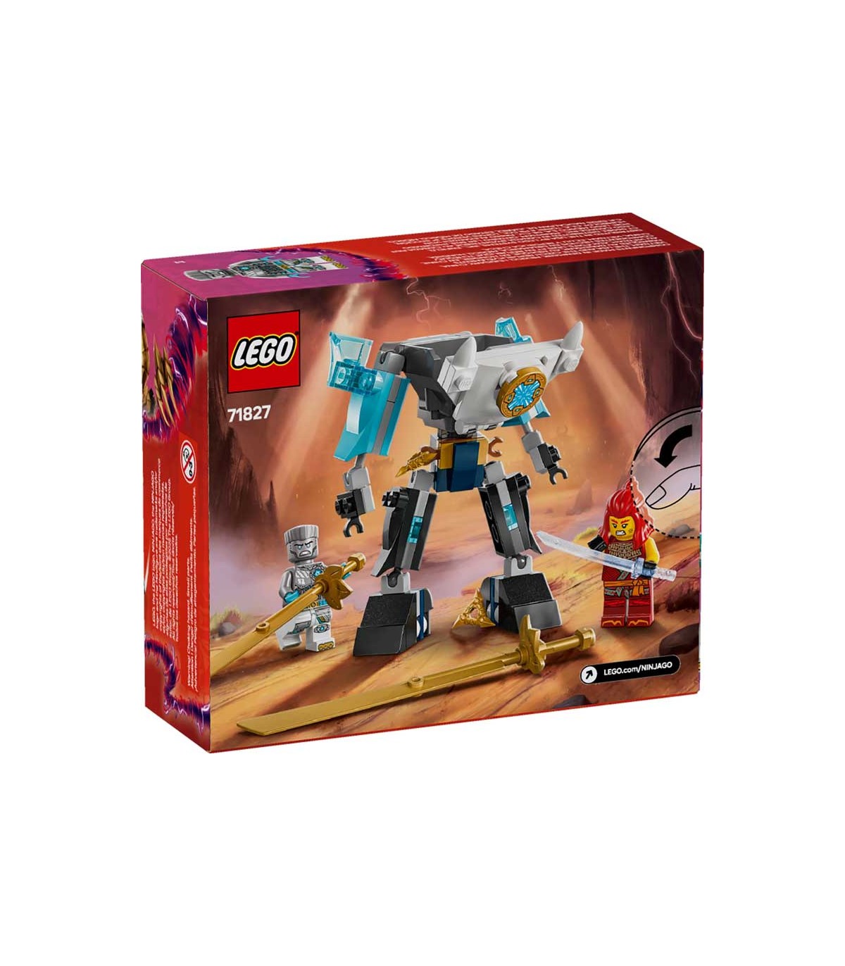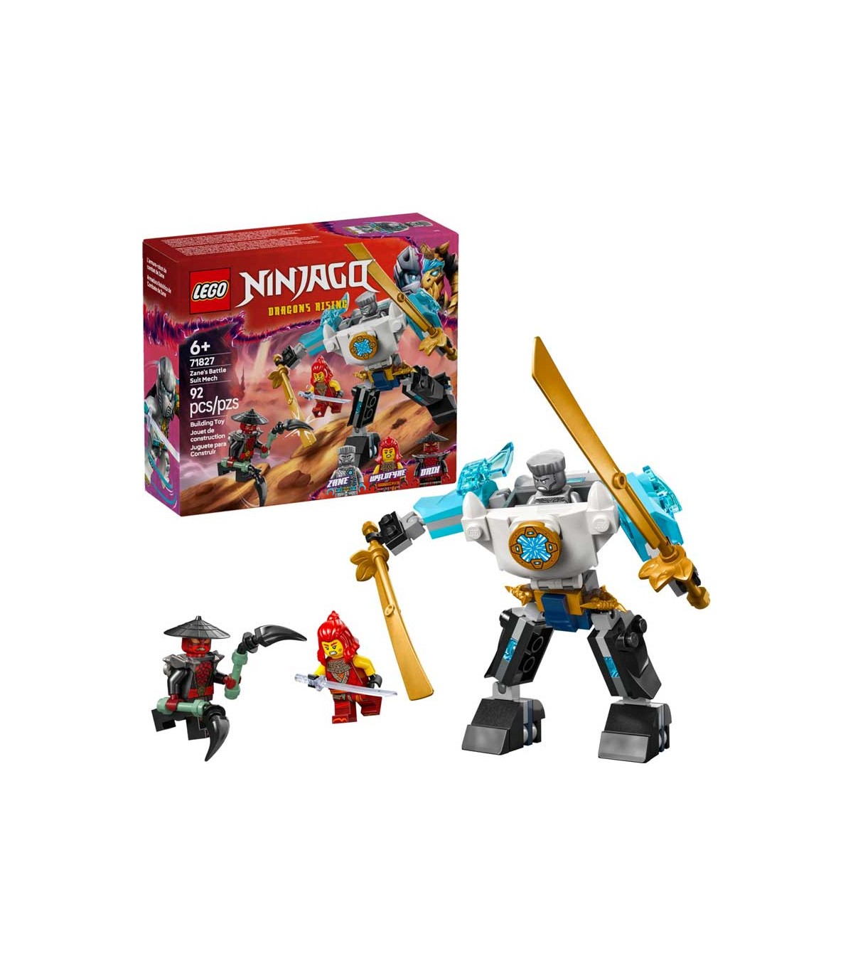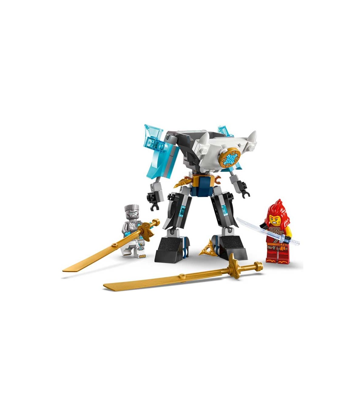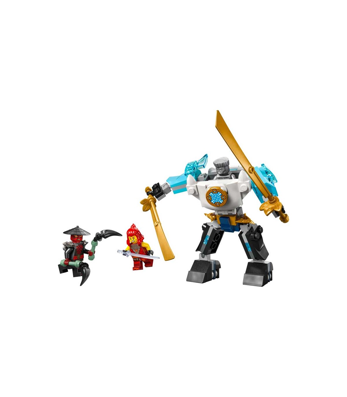 Set de construcción Lego Ninjago, armadura robótica de combate de Zane. Contiene 92 piezas, incluye 3 Minifiguras, 2 exclusivas de este set.