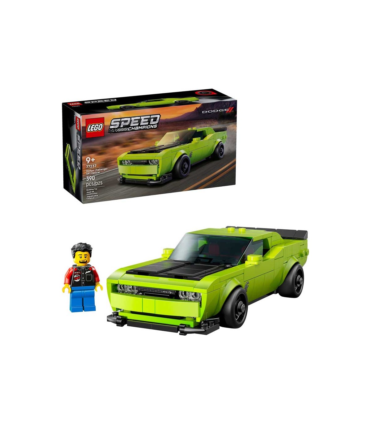 Set de construcción Lego Speed Champions, Dodge Challenger SRT Hellcat. Contiene 390 piezas, incluye 1 Minifigura.