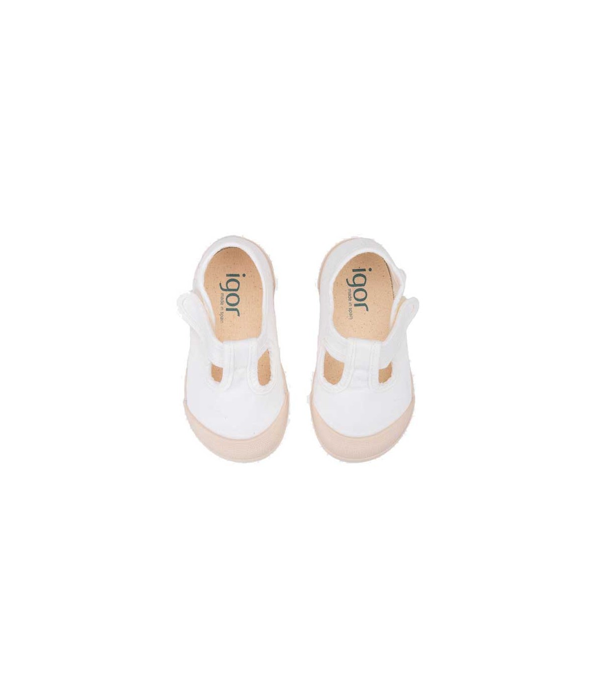 Lona pepito Igor con velcro, en color blanco, Barefoot, flexible, con cero drop, cierre con velcro, muy blandita. plantilla extraíble. Lavar en agua fría.