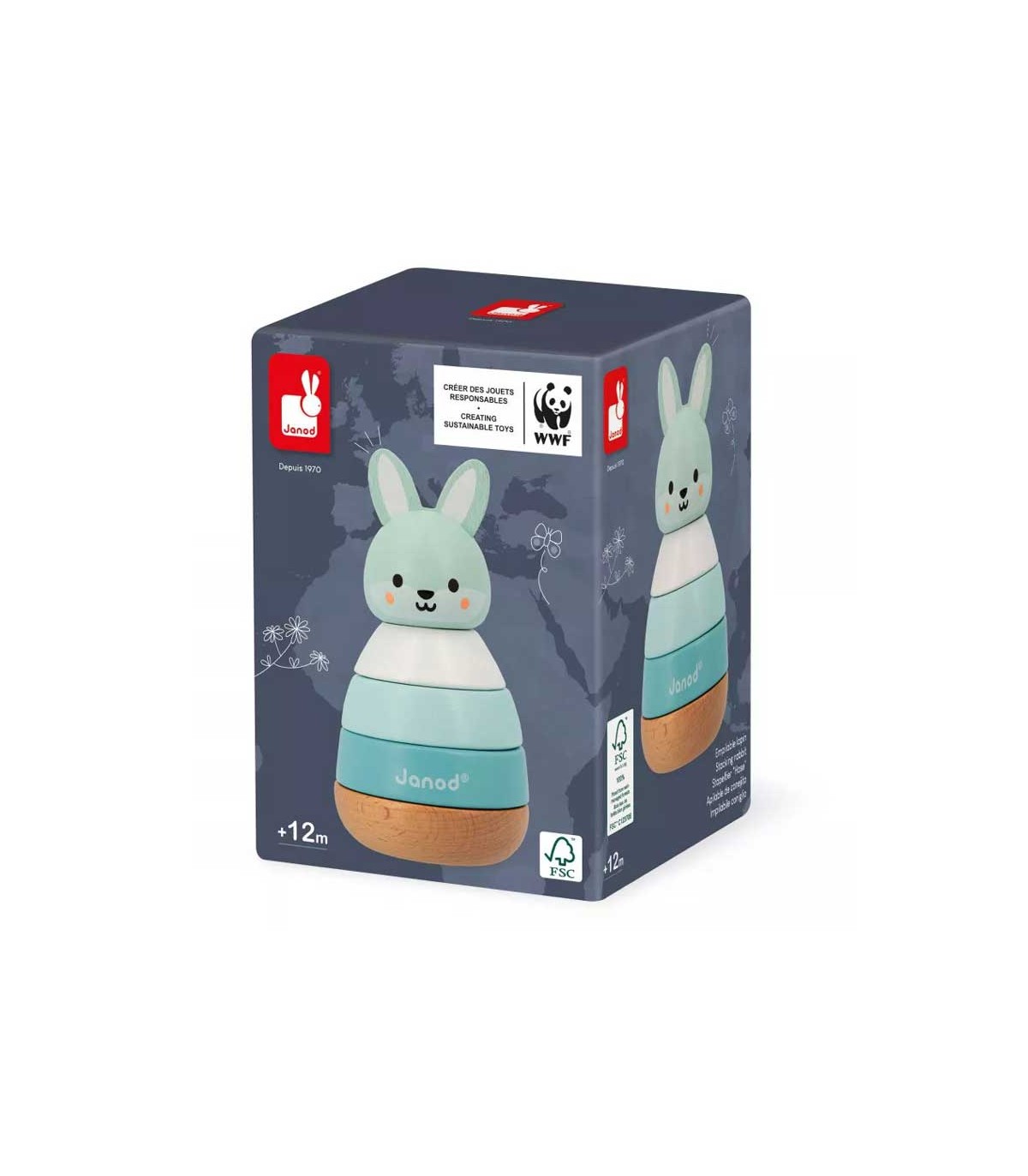 Apilable conejo con 4 piezas de madera para encajar. Fabricado con materiales sostenibles.