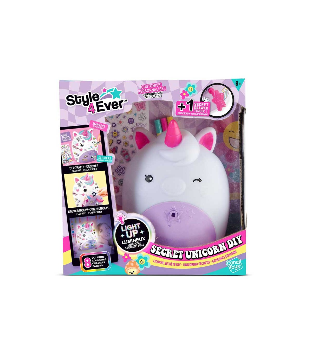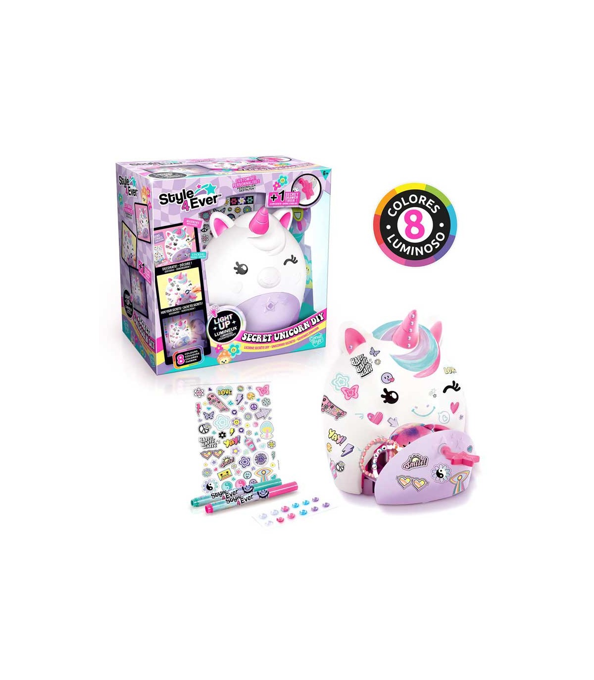 Decora tu lámpara unicornio secreto con los accesorios incluidos. Luz LED tenue con 8 colores diferentes. Requiere baterías no incluidas.