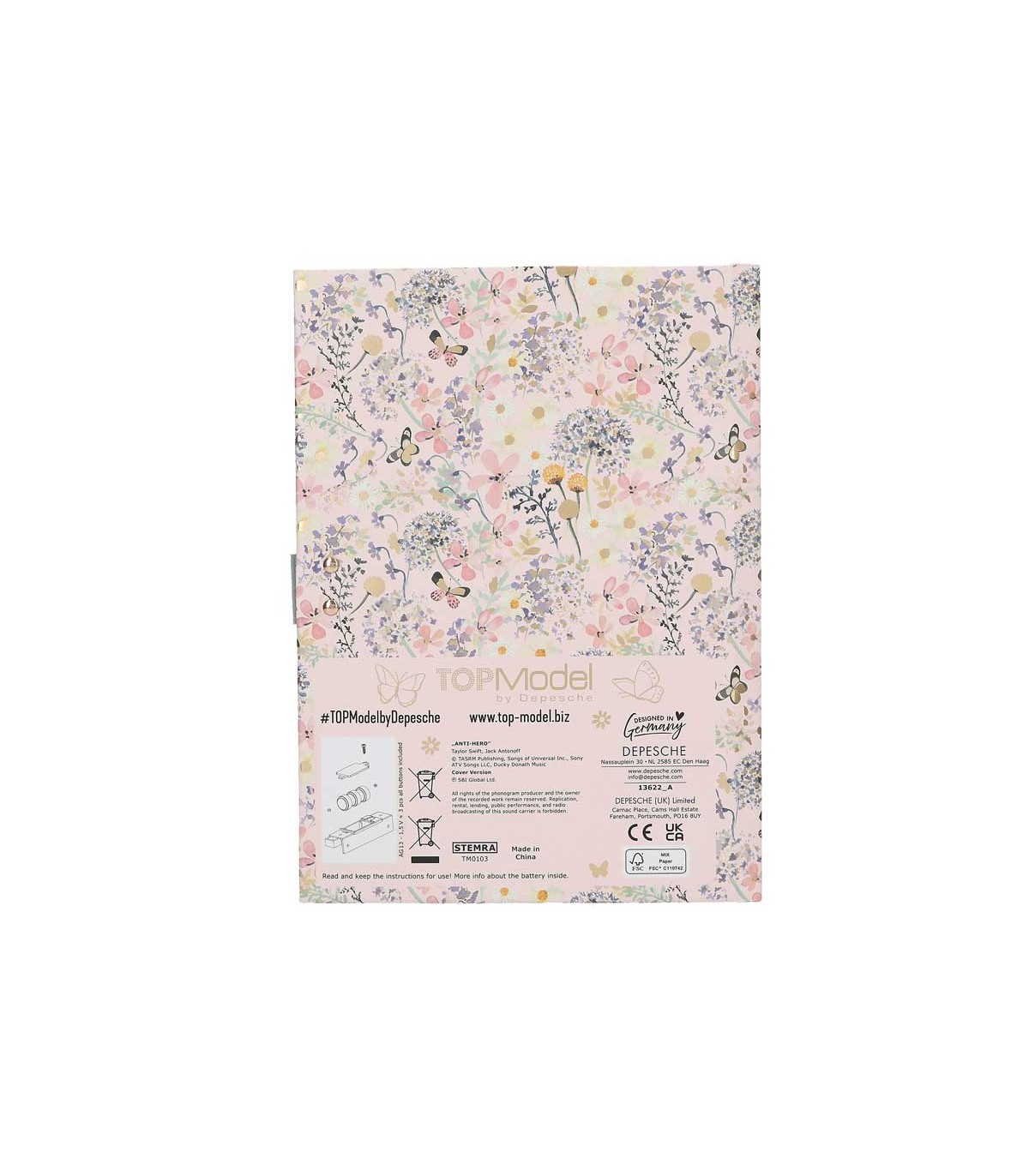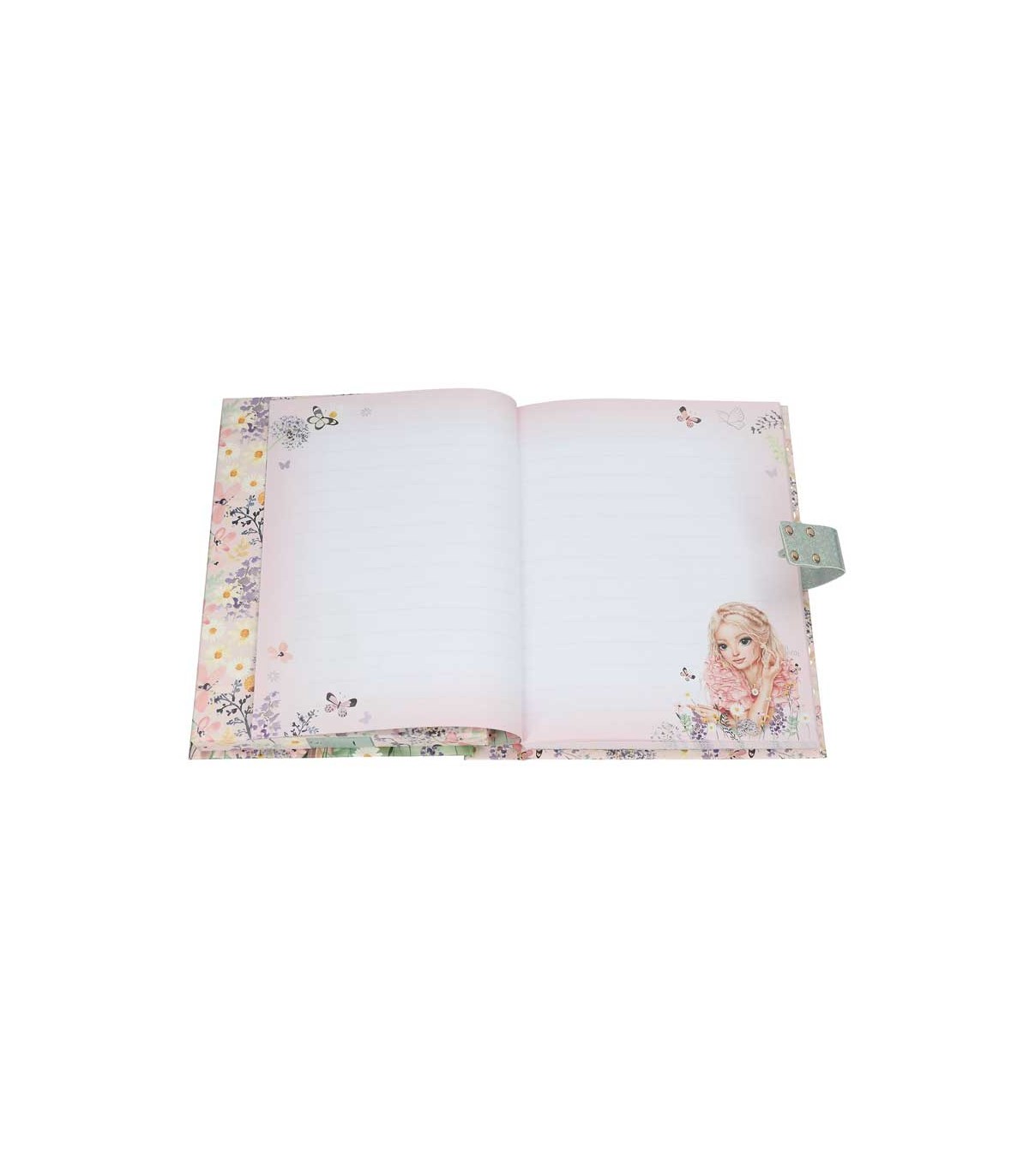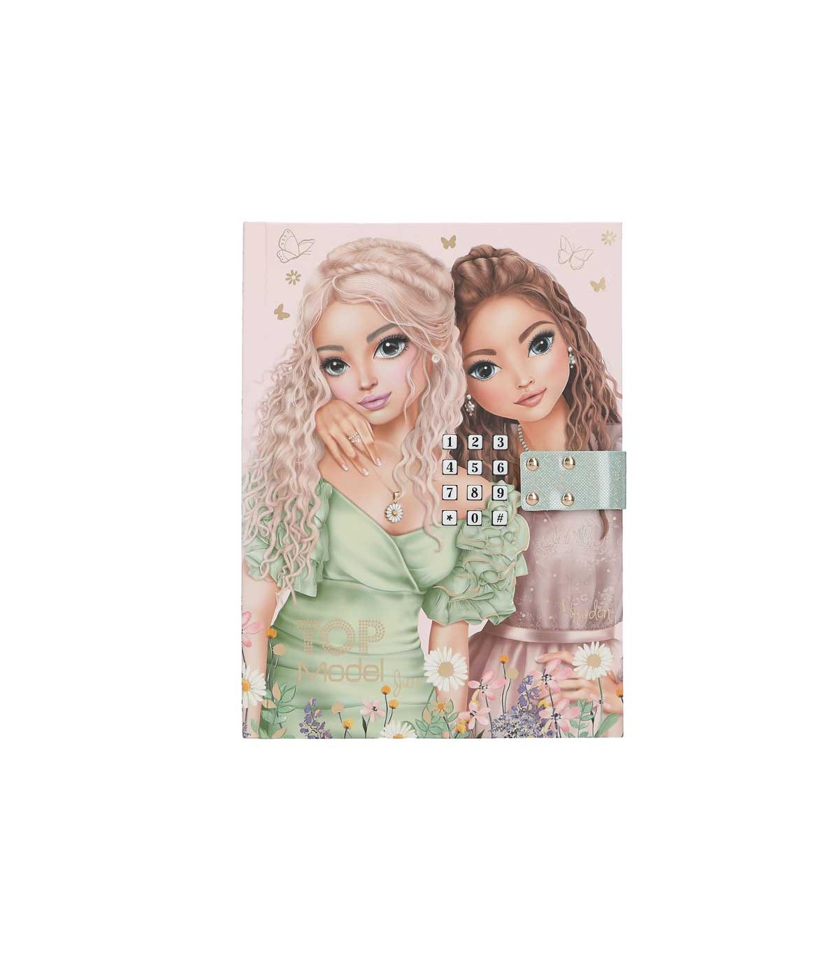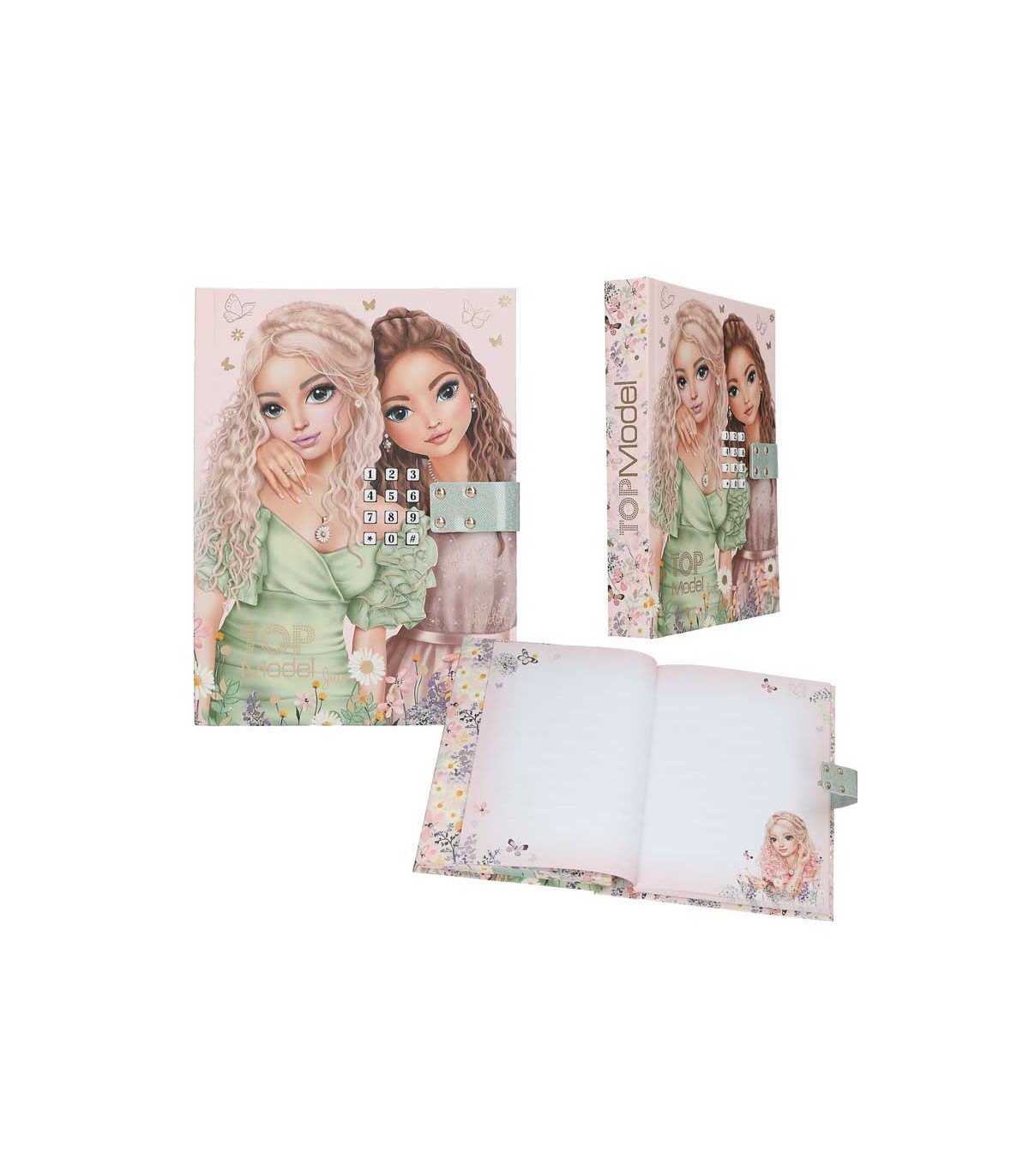 Diario con código secreto para anotar tus pensamientos y secretos. El candado solo se puede desbloquear introduciendo el código de 4 cifras que puedes personalizar y modificar cuando quieras. Cuando se abre suena la canción Anti-Hero de Taylor Swift durante 20 segundos aprox. La portada está decorada con dos modelos sobre fondo de flores y mariposas. En el interior cuenta con 80 páginas con pauta de line fina y ilustraciones en color.