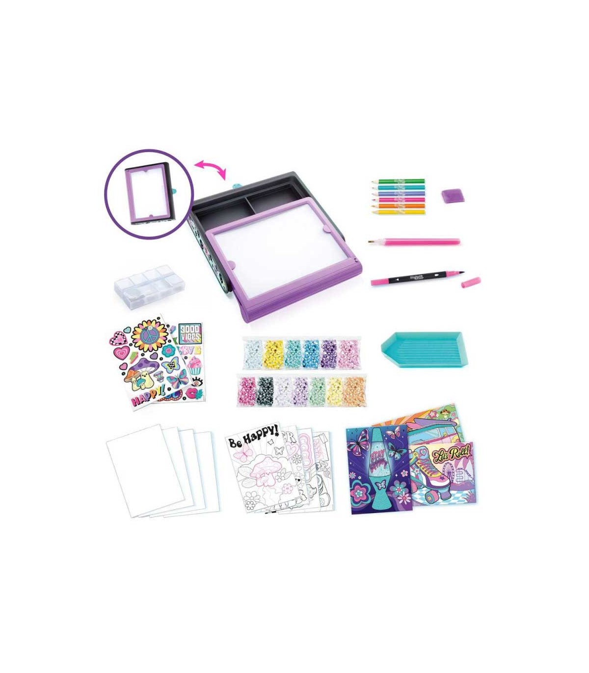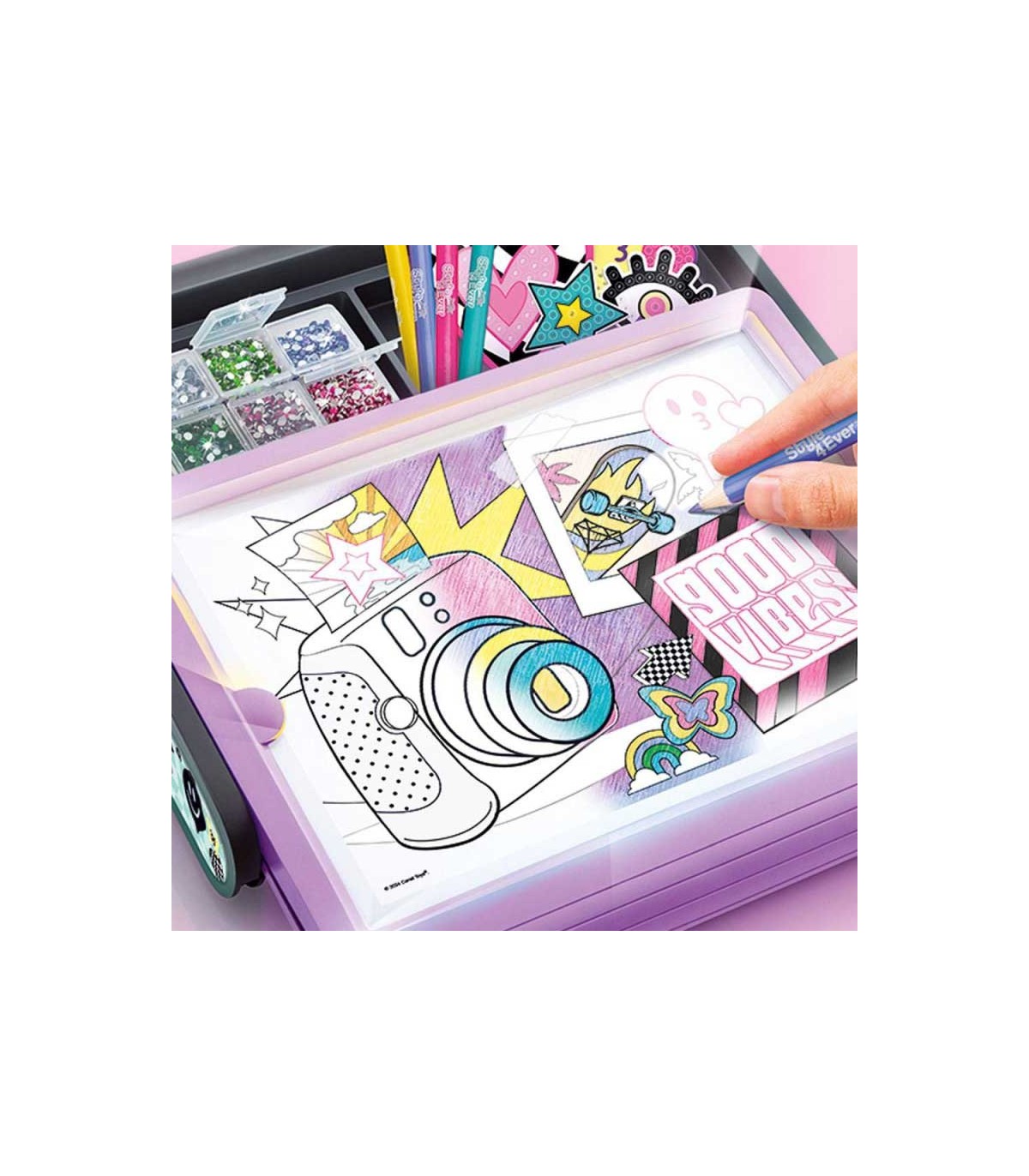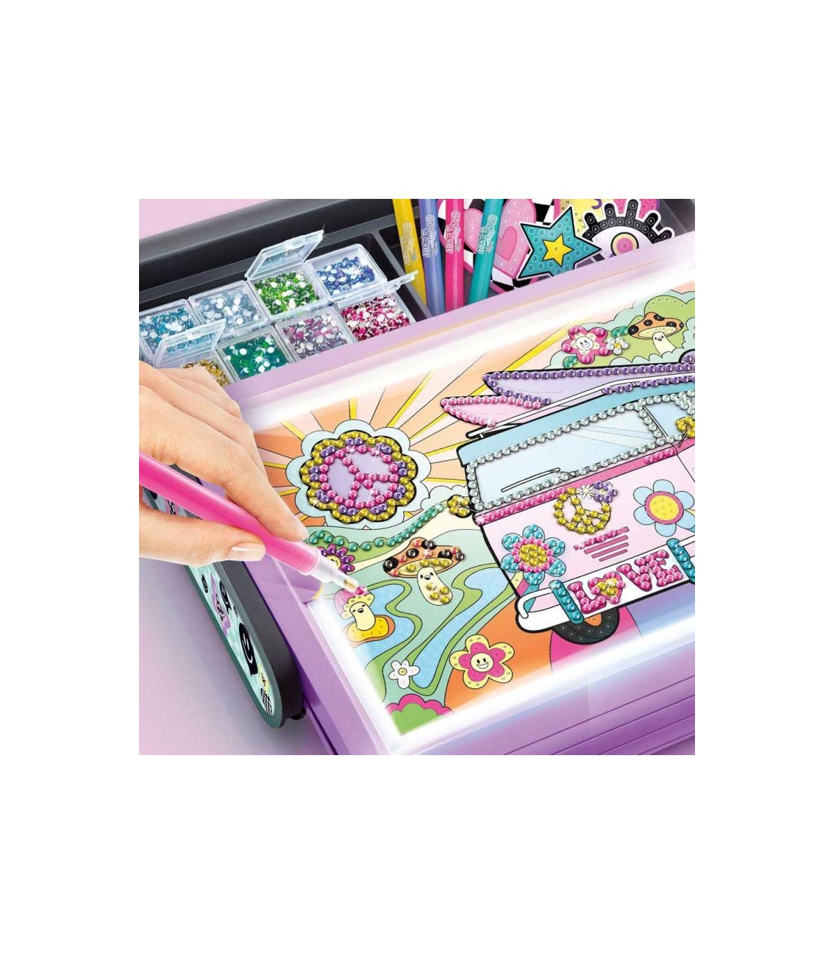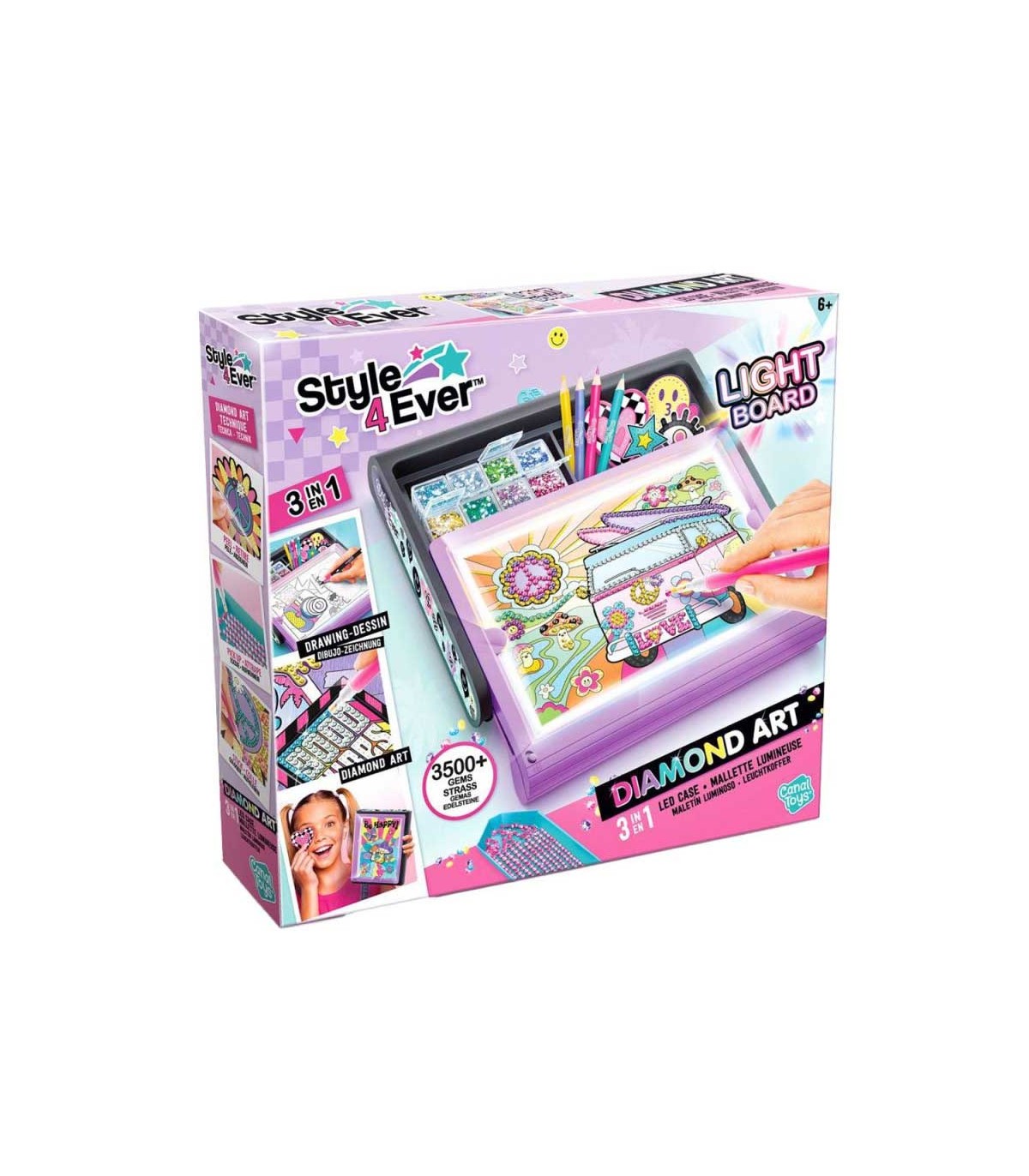 Maletín luminoso 3 en 1, ideal para dibujar o realizar creaciones con diamantes. Con la pizarra luminosa puedes crear tus pegatinas personalizadas con diamantes, o realizar poster dibujados o con diamantes. Guarda todos los accesorios en su interior para transportarlo a todas partes.