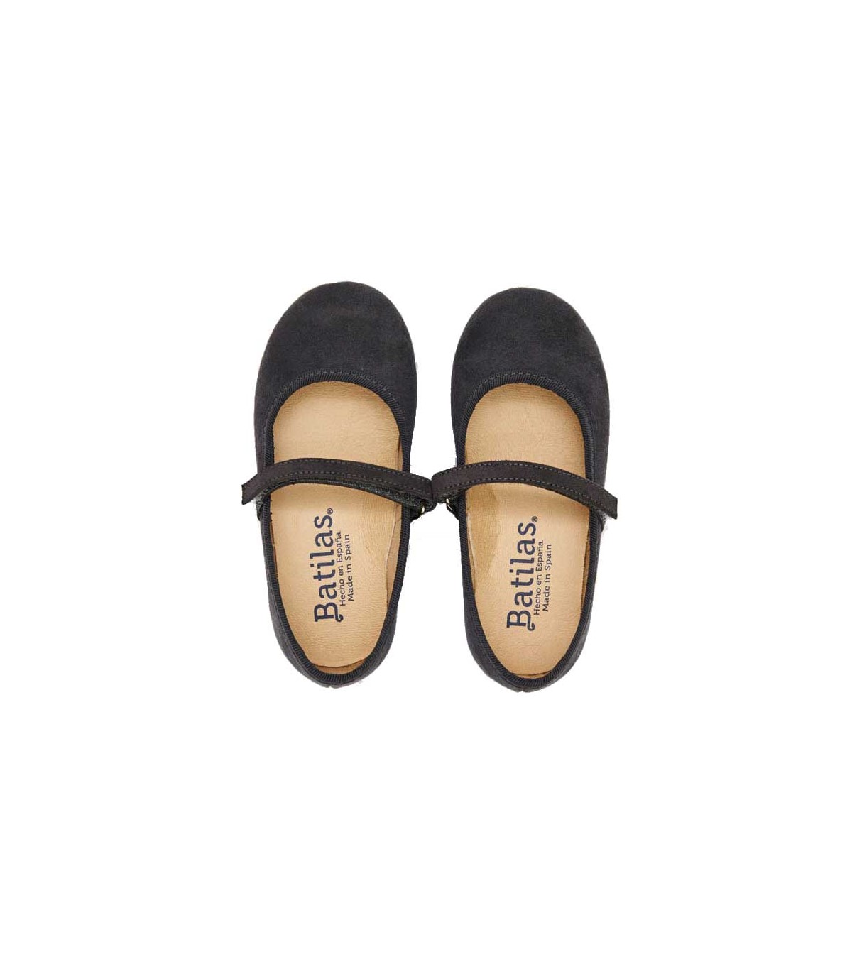 Merceditas Batilas en color gris en poliéster con tira adherente, cómodas y flexibles.