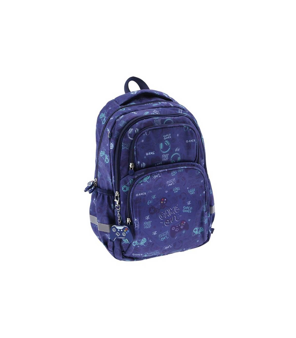 Mochila escolar infantil Gamers Collection con 3 bolsillos frontales con cremallera y bolsillo interior para tablet. Bolsillos laterales para botella y asas ajustables acolchadas. Tamaño: 40x 30x12 cm.