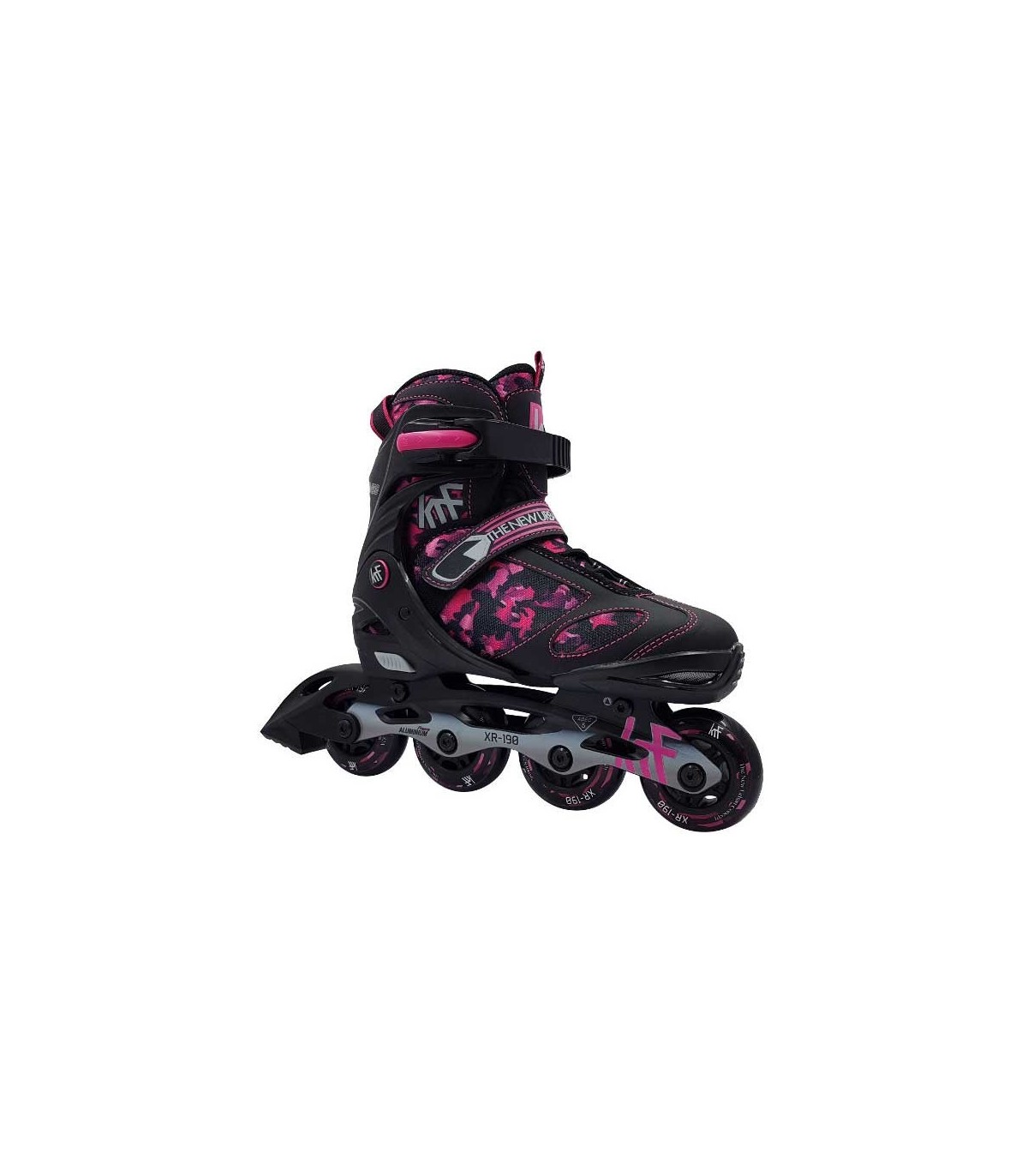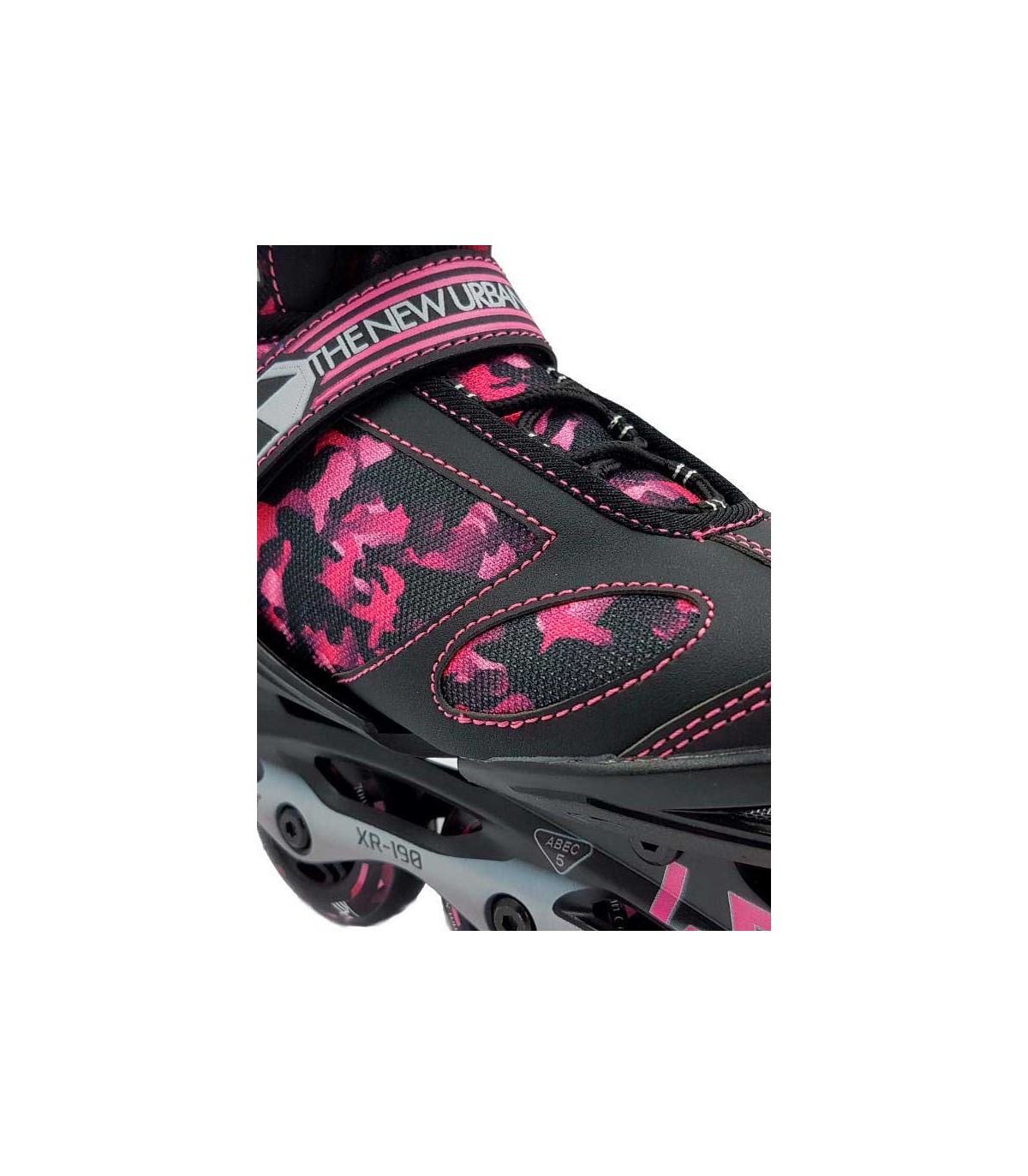 Patín en línea ajustable XR-190 en color camuflaje rosa.