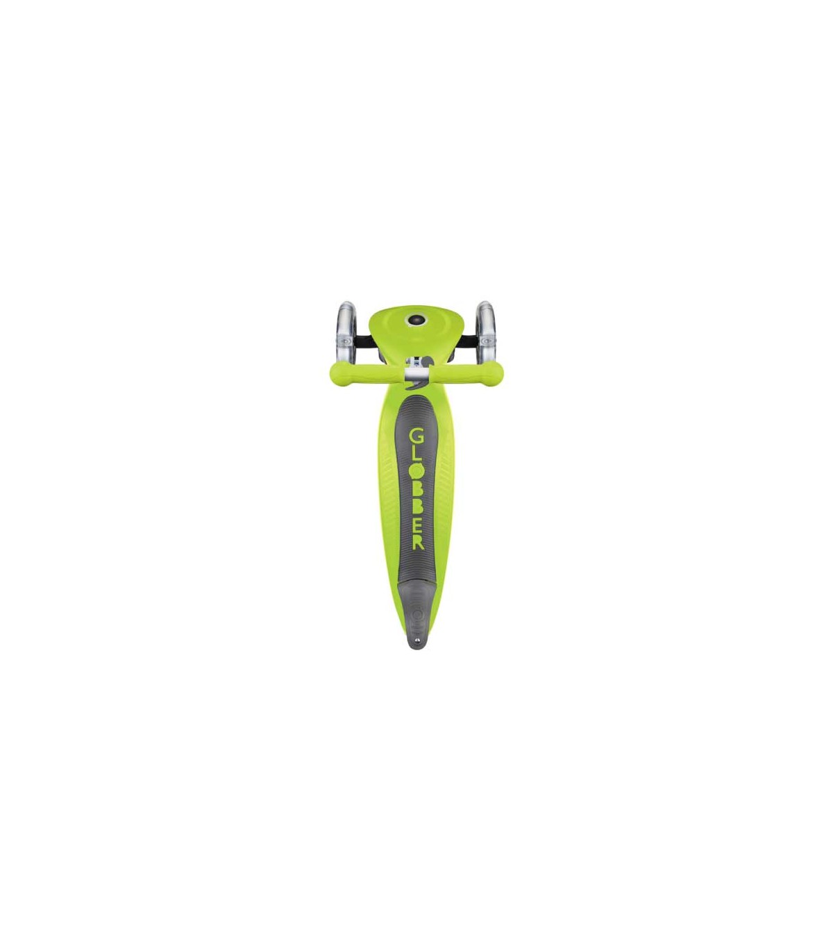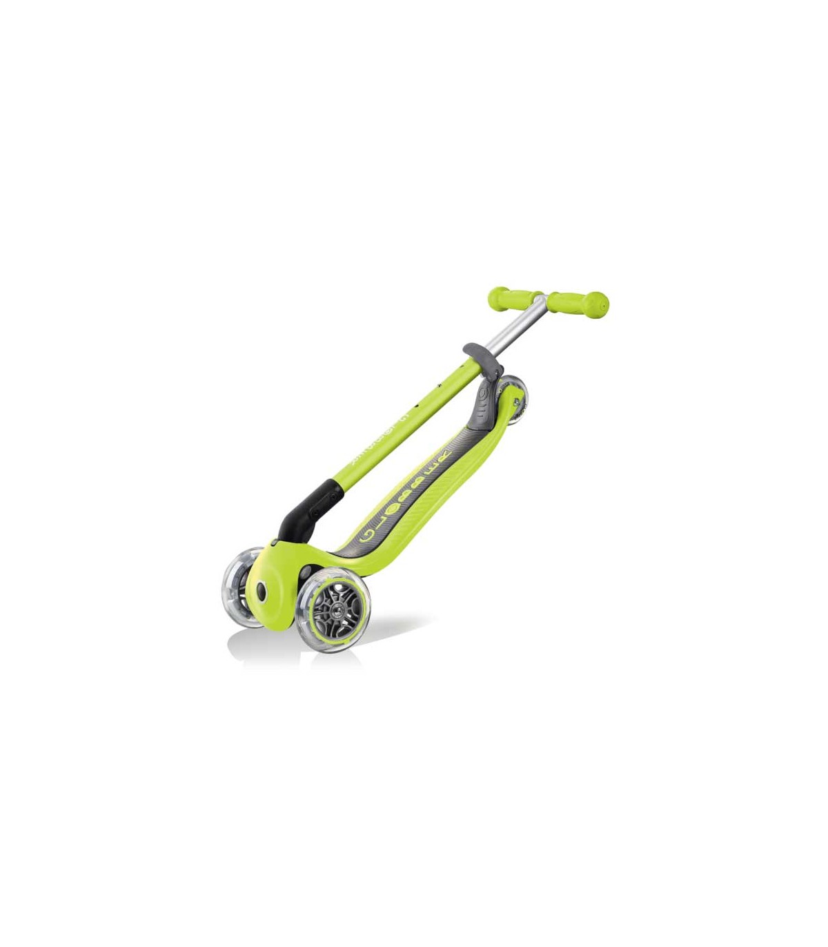Patinete Globber Primo plegable color verde lima. Recomendado a partir de 3 años, potencia el equilibrio del niño.