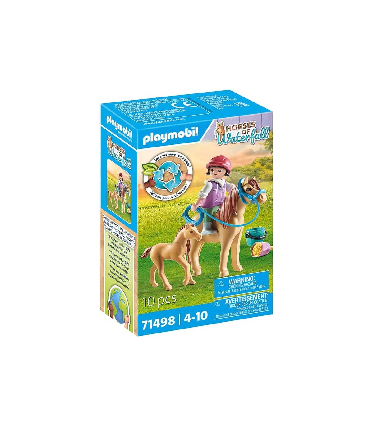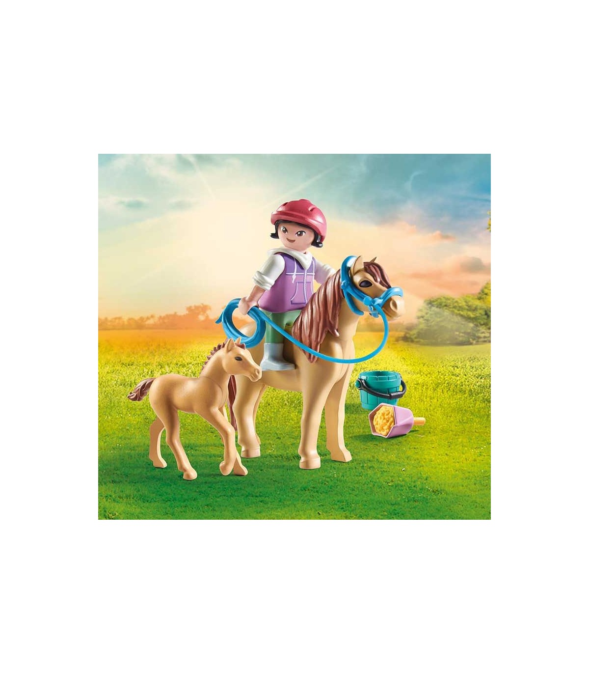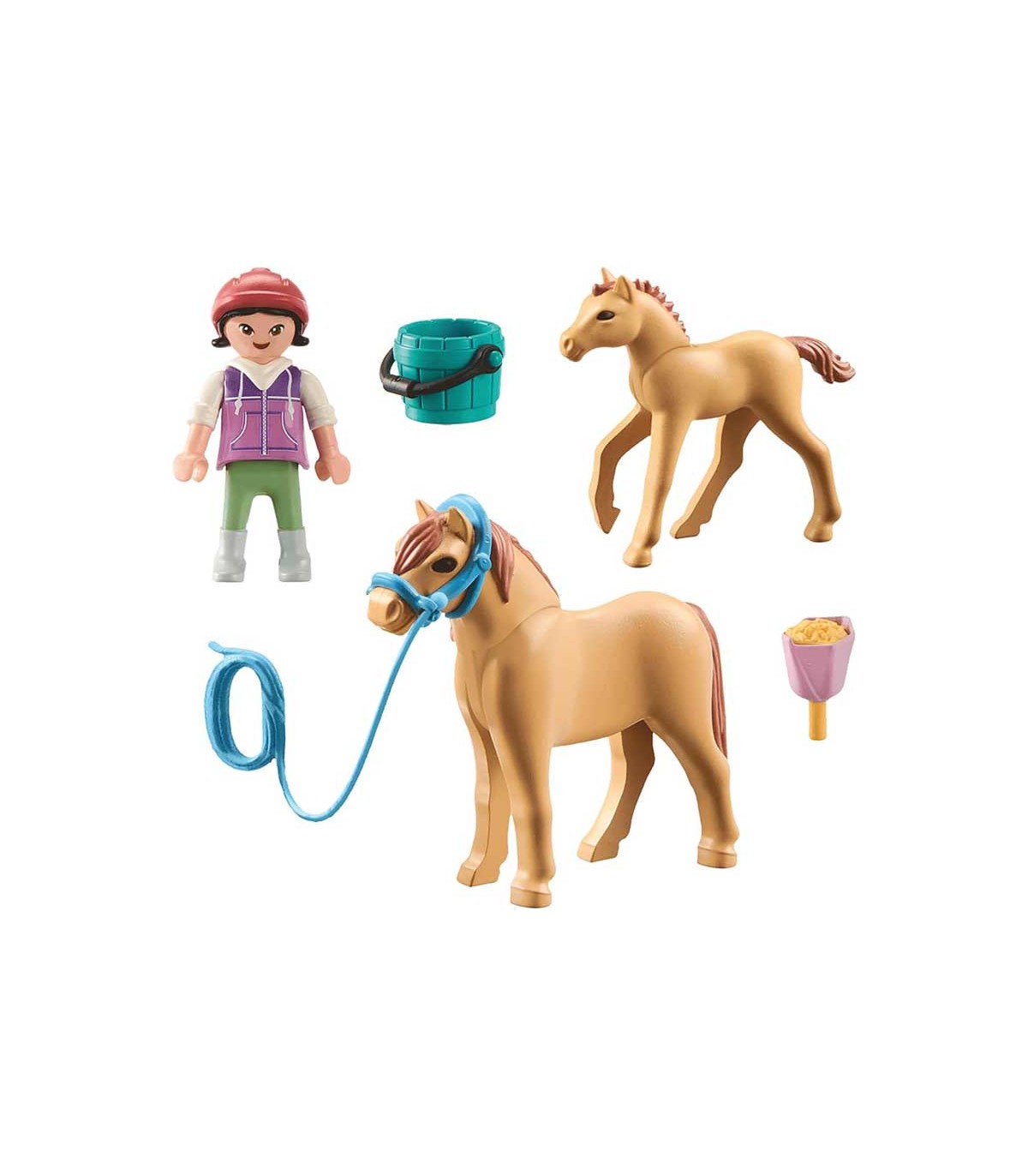 Set Playmobil Horses of Waterfall, niña con poni y potro. Contiene 10 piezas, incluye una figura y dos ponis.