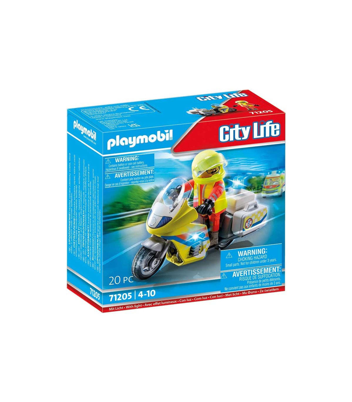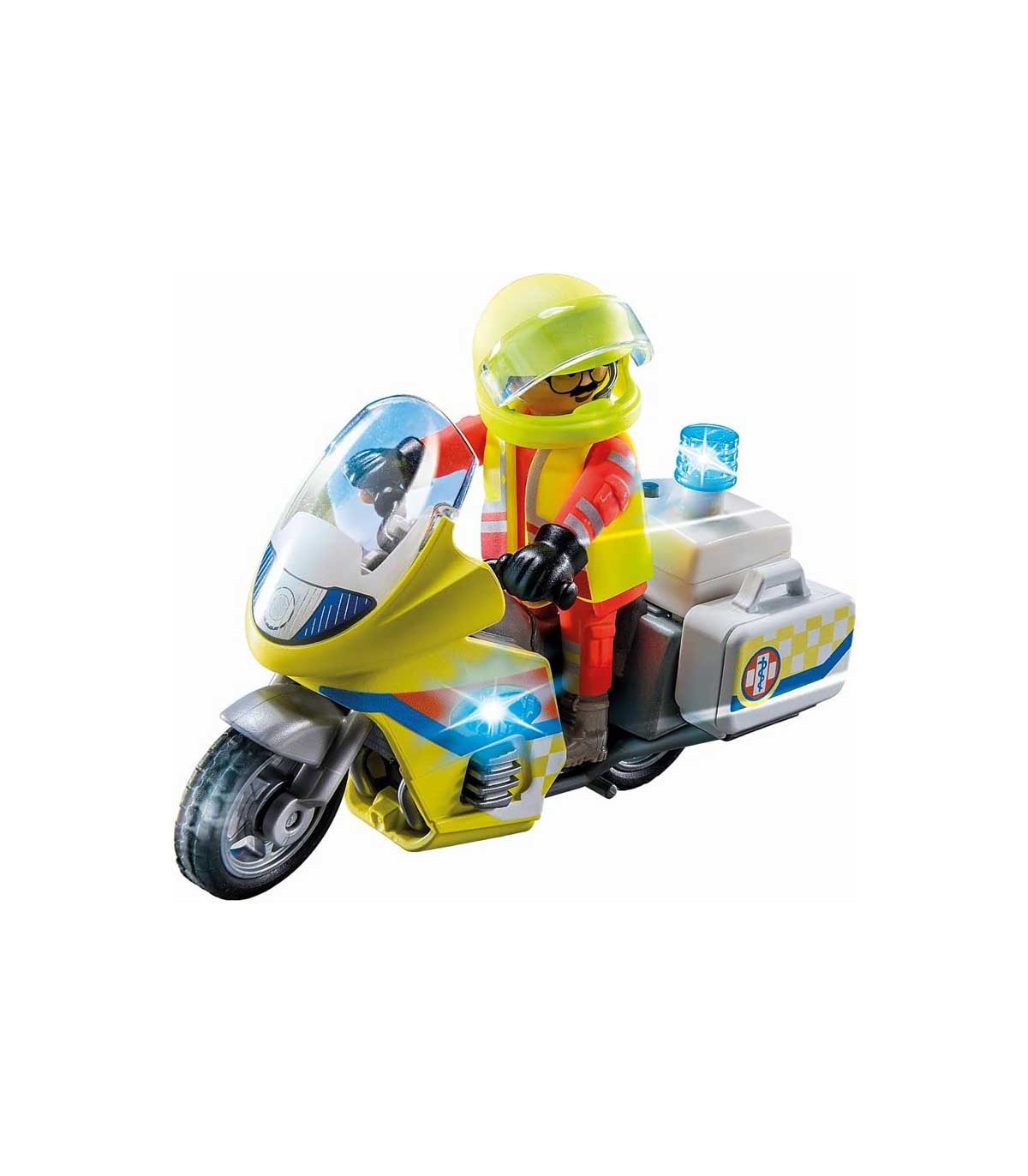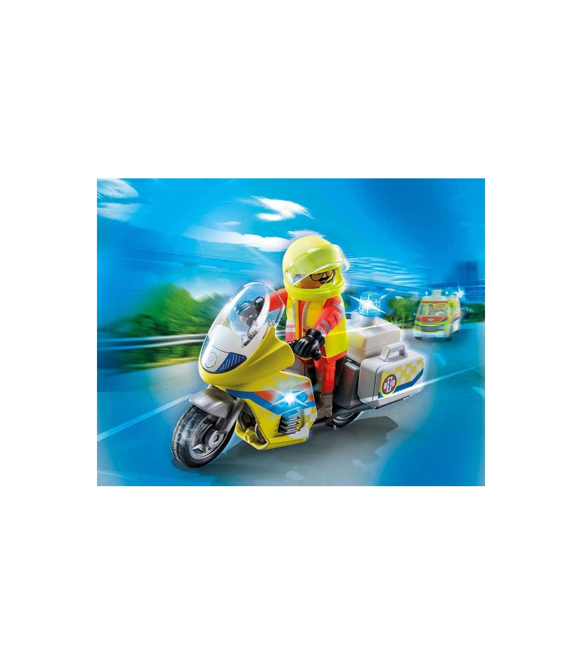 Set de Playmobil, moto de emergencias con luz intermitente. Contiene 20 piezas. Baterías incluidas.