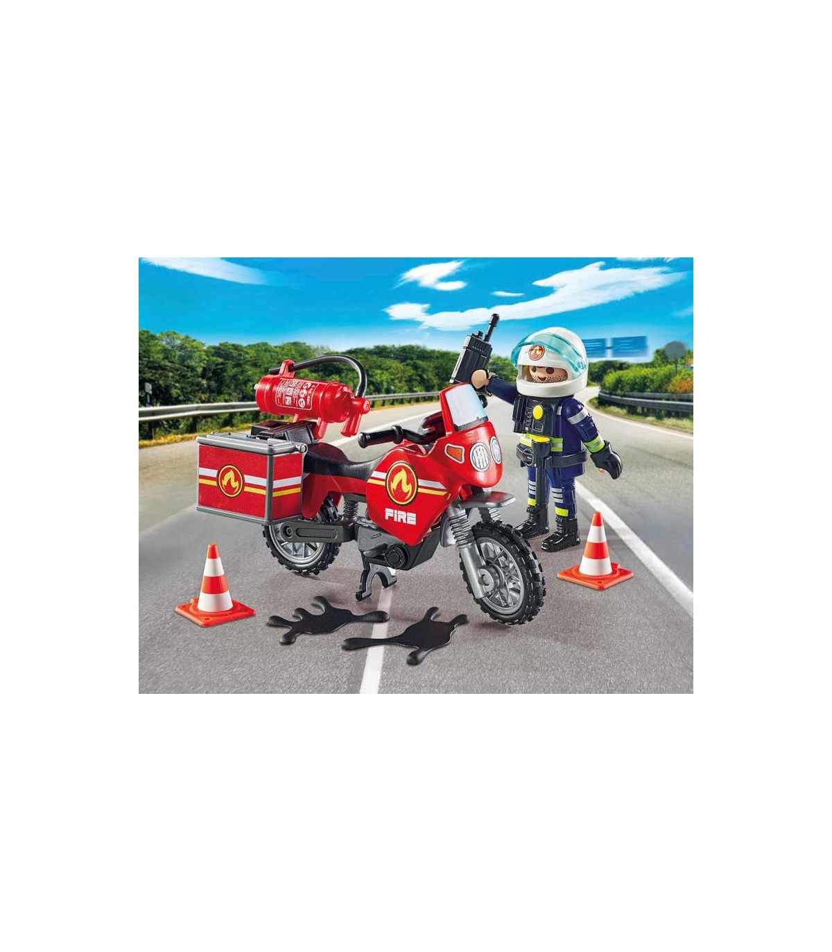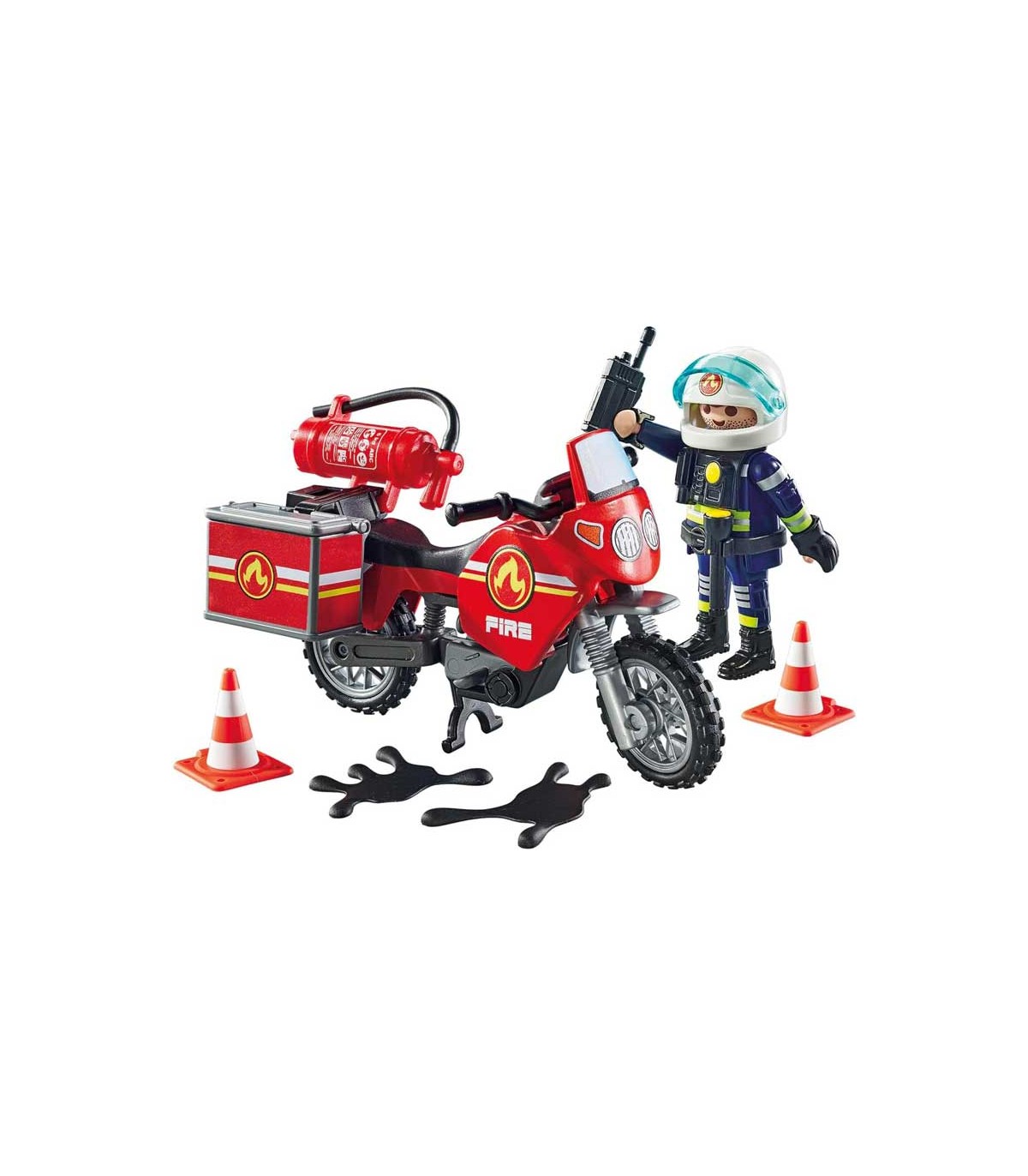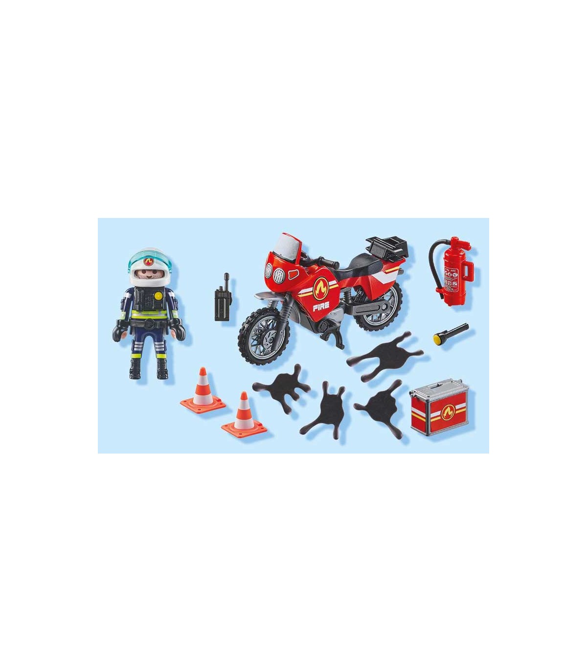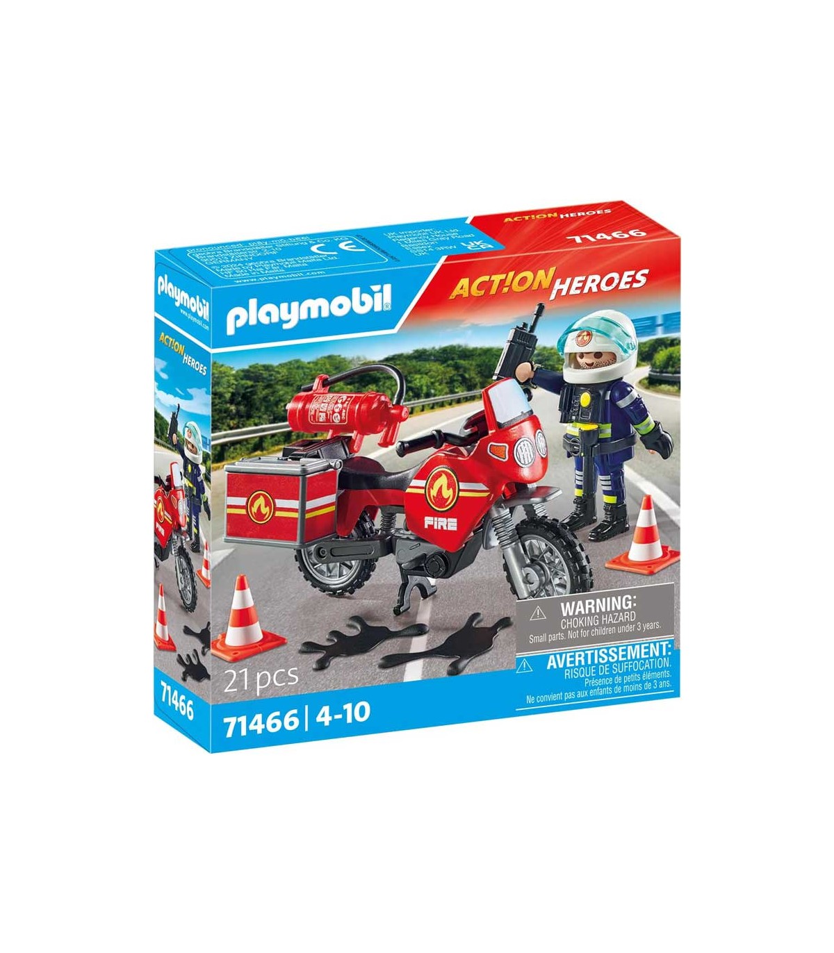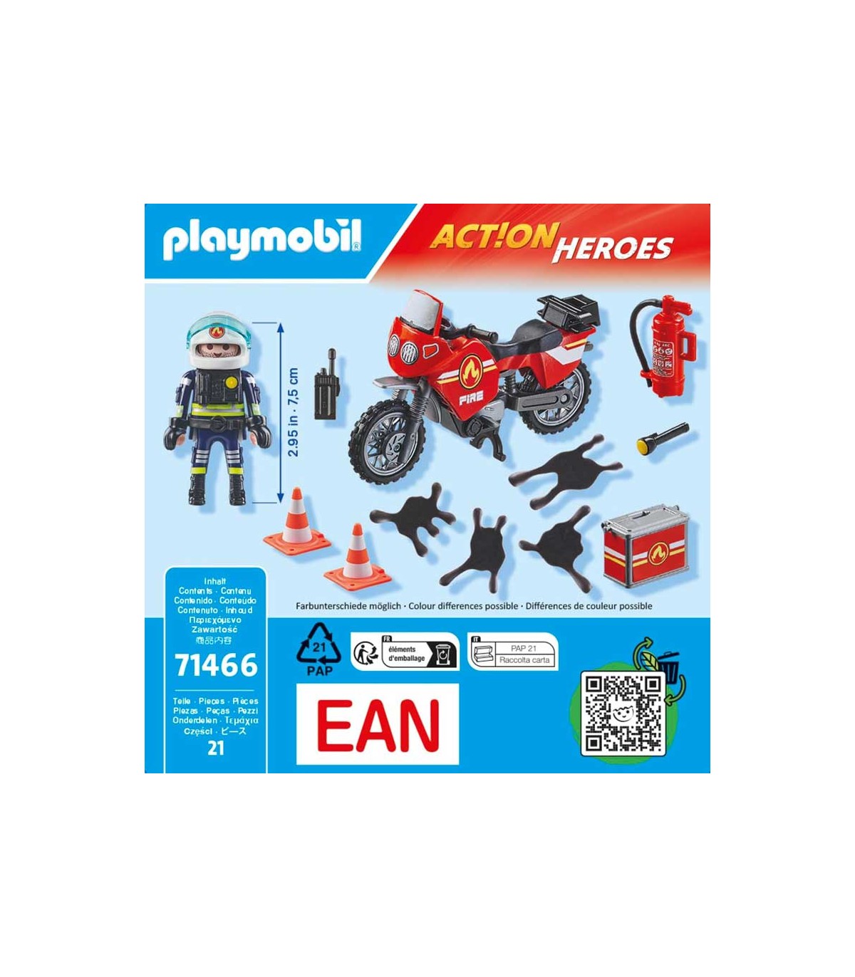 Set Playmobil Action Heroes, moto de bomberos. Incluye una figura, moto de bomberos y accesorios.