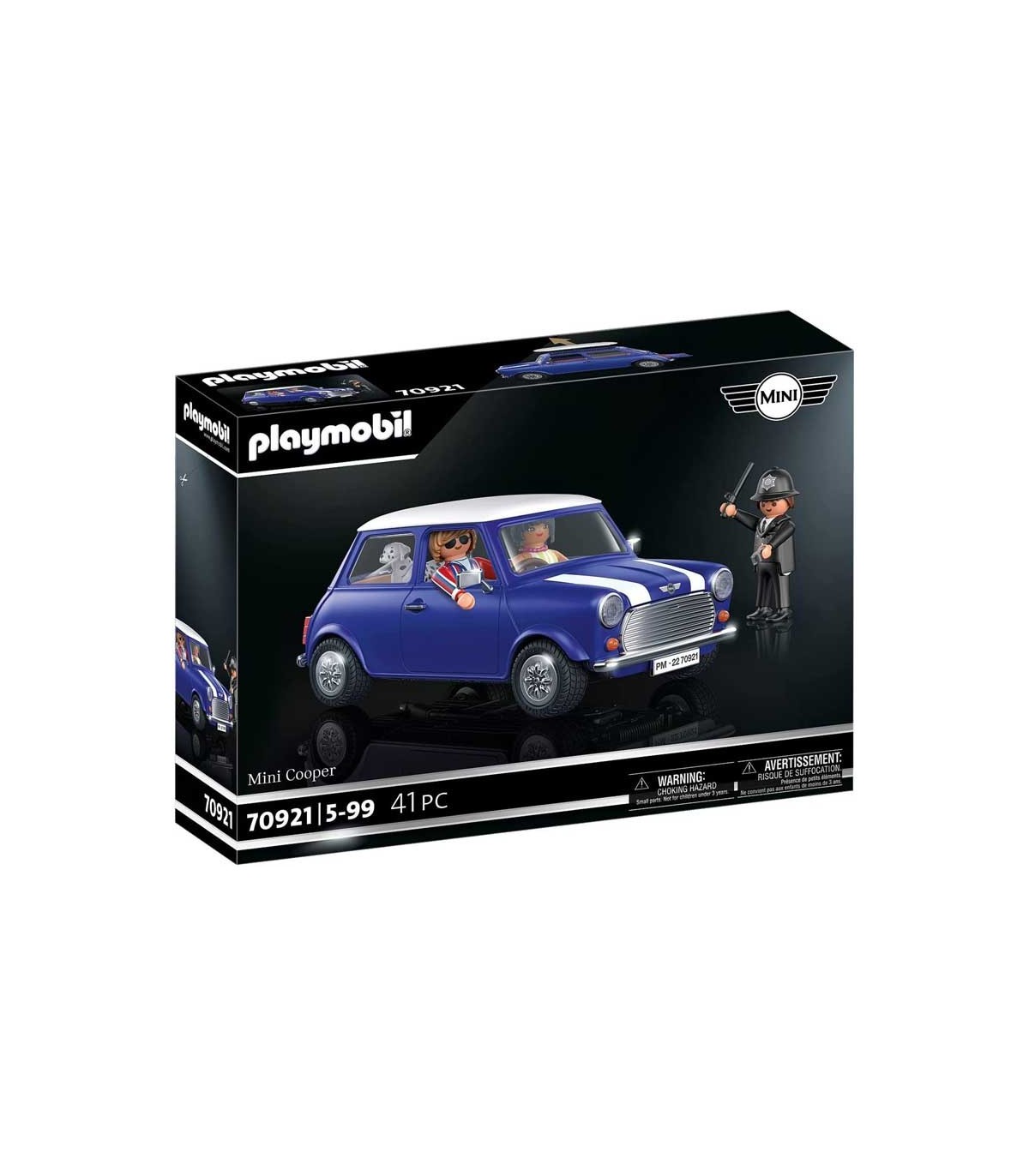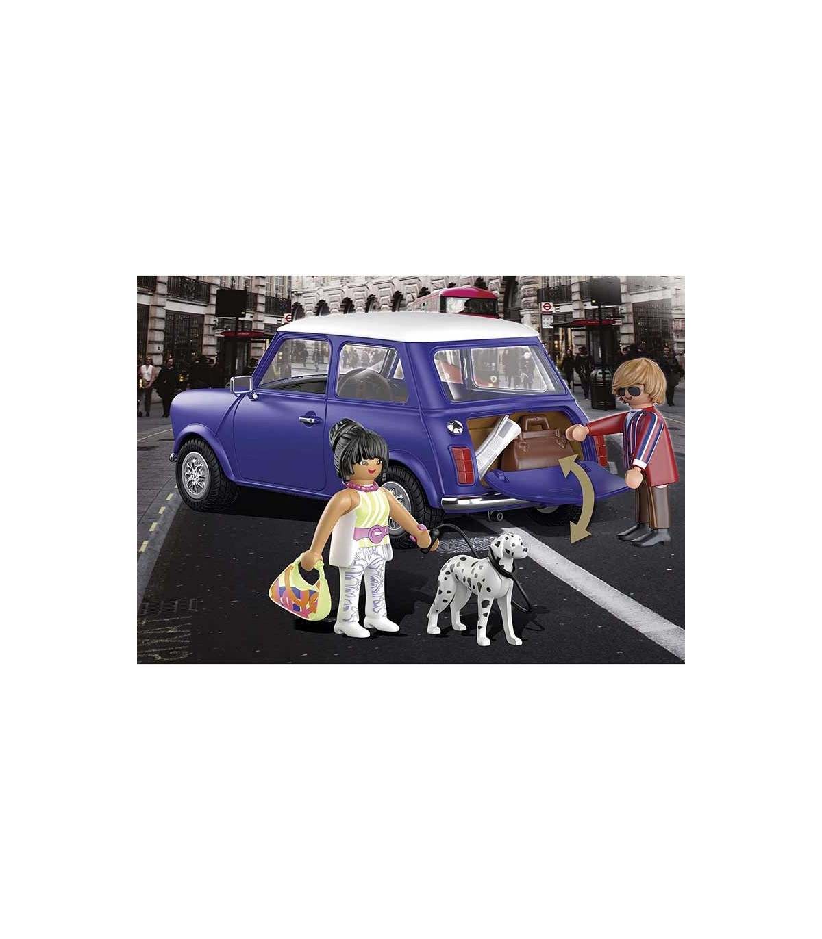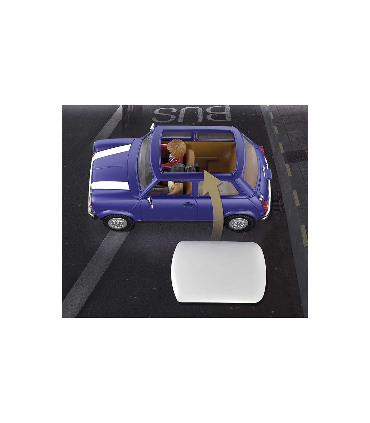 Réplica del clásico Mini Cooper con tres figuras Playmobil.