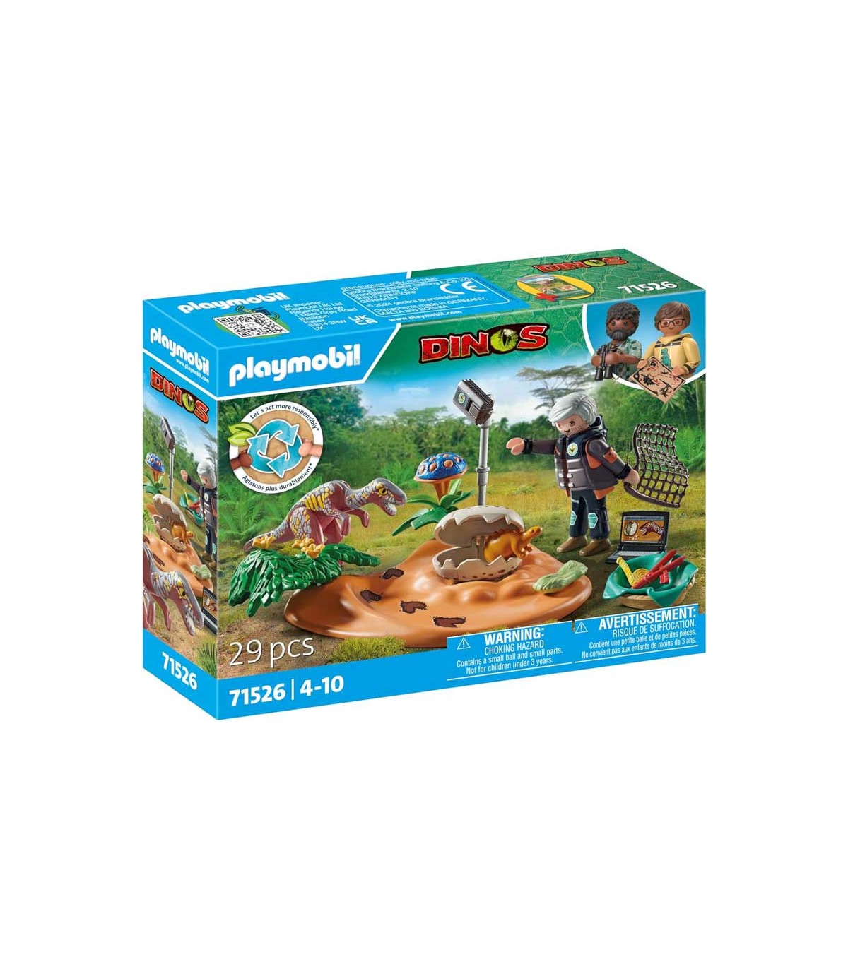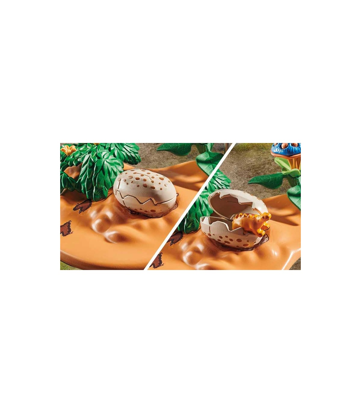 Set Playmobil Dinos, nido de estegosaurio con ladrón de huevos. Contiene 29 piezas, incluye 1 figura y dos dinos.